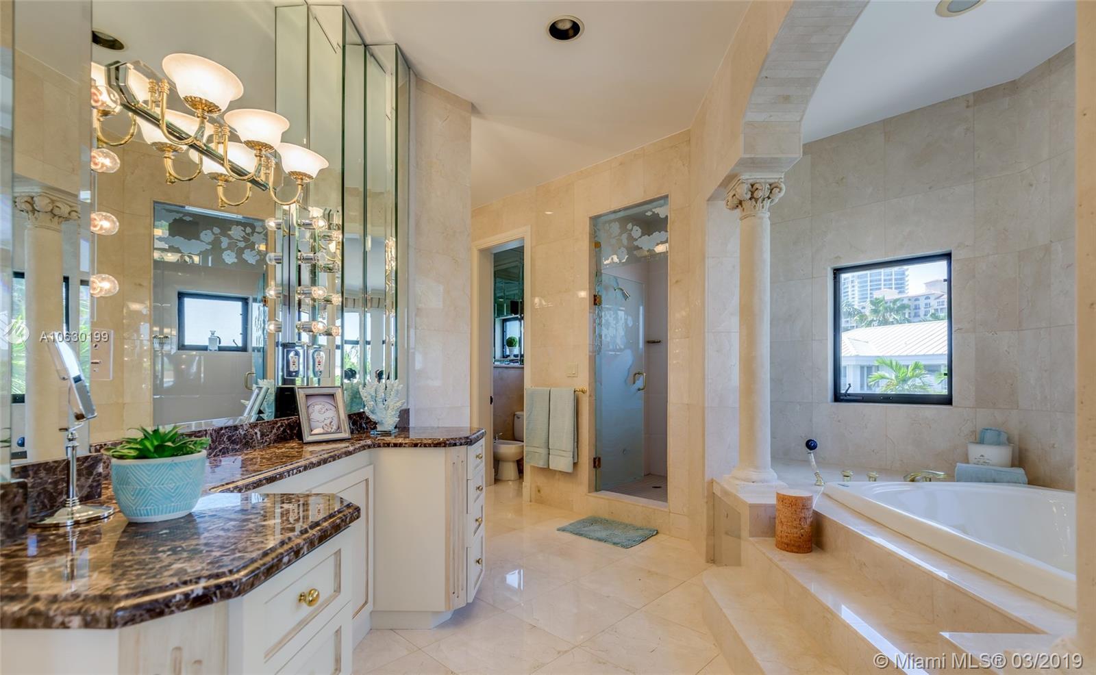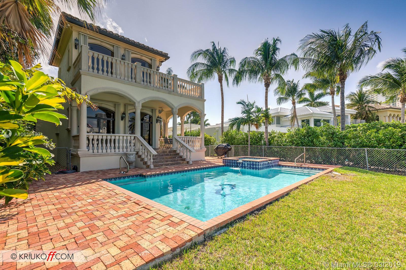 Smartest priced home in Golden Beach. Stunning Waterfront 2 story Mediterranean Home. Move-in ready 4/4.5, elevator, Heated Pool, Jacuzzi. Interior 3,777 Sq. Ft / 10,500 Sq. Ft. lot, 2 car garage, driveway parking for 10. Custom Designed by original owner in 2002, the home boasts an elegance and panache, perfect for the most stylish buyer. Winding mahogany staircase, hand painted ceiling art with retractable chandelier and Formal dining room with ample direct sunlight. Features: open kitchen, gas stove, island, breakfast nook ,counter top. Florida/TV room waterview. A spacious veranda is the perfect backdrop for morning coffee and croissants and evening meals, and reading a good book .50’ Ft. Dockage. Upstairs Master Bdrm:electric shutters,wrap around waterfront balcony. Easy to show.