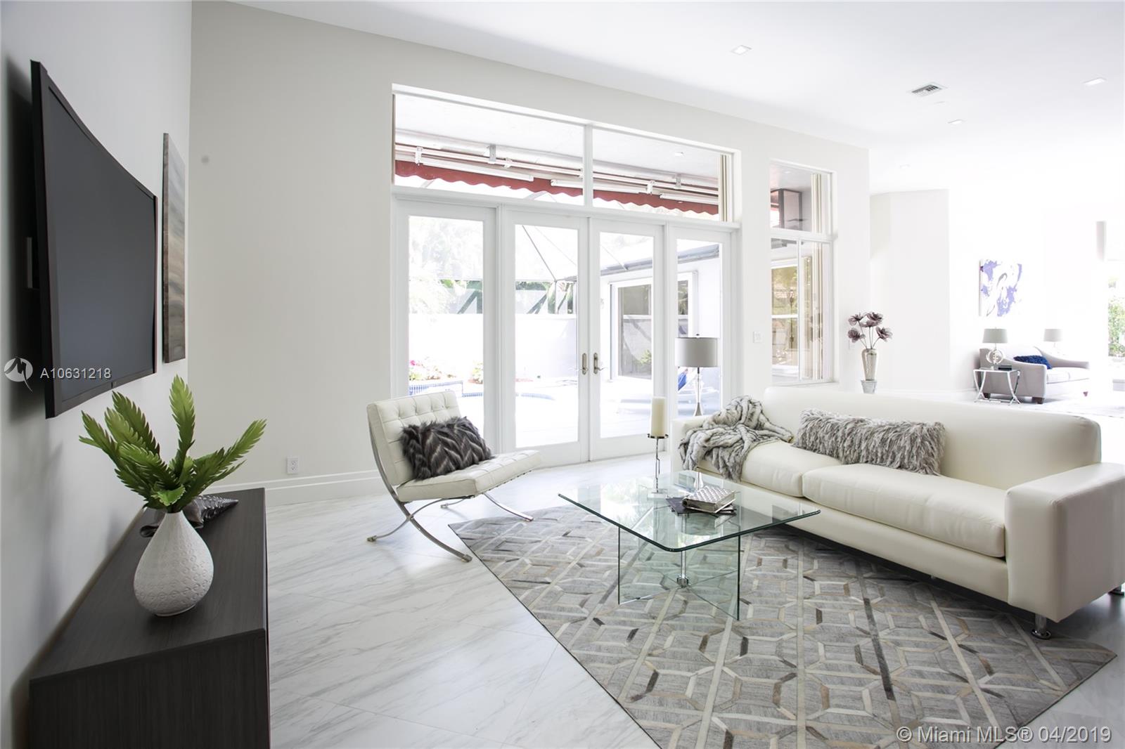 This stunning newly completely renovated contemporary courtyard home epitomizes today's look in quality and design. Open concept with lots of flex space for you to tailor to your needs. European style kitchen features top of the line cabinetry, appliances include coffee maker, wine cooler and island which overlooks the very spacious great room. Stunning marble flooring downstairs & wood upstairs. Contemporary staircase with Venetian plaster wall and glass and metal railing. Master bedroom has sitting area and spa-like bathroom. Additional upgrades include new wood and glass doors, all led lighting throughout, all closets are built-in and 3 new air conditioners Separate entrance guest house with 1 bed/1 bath has also been updated. Screened freeform pool and patio offers complete privacy.