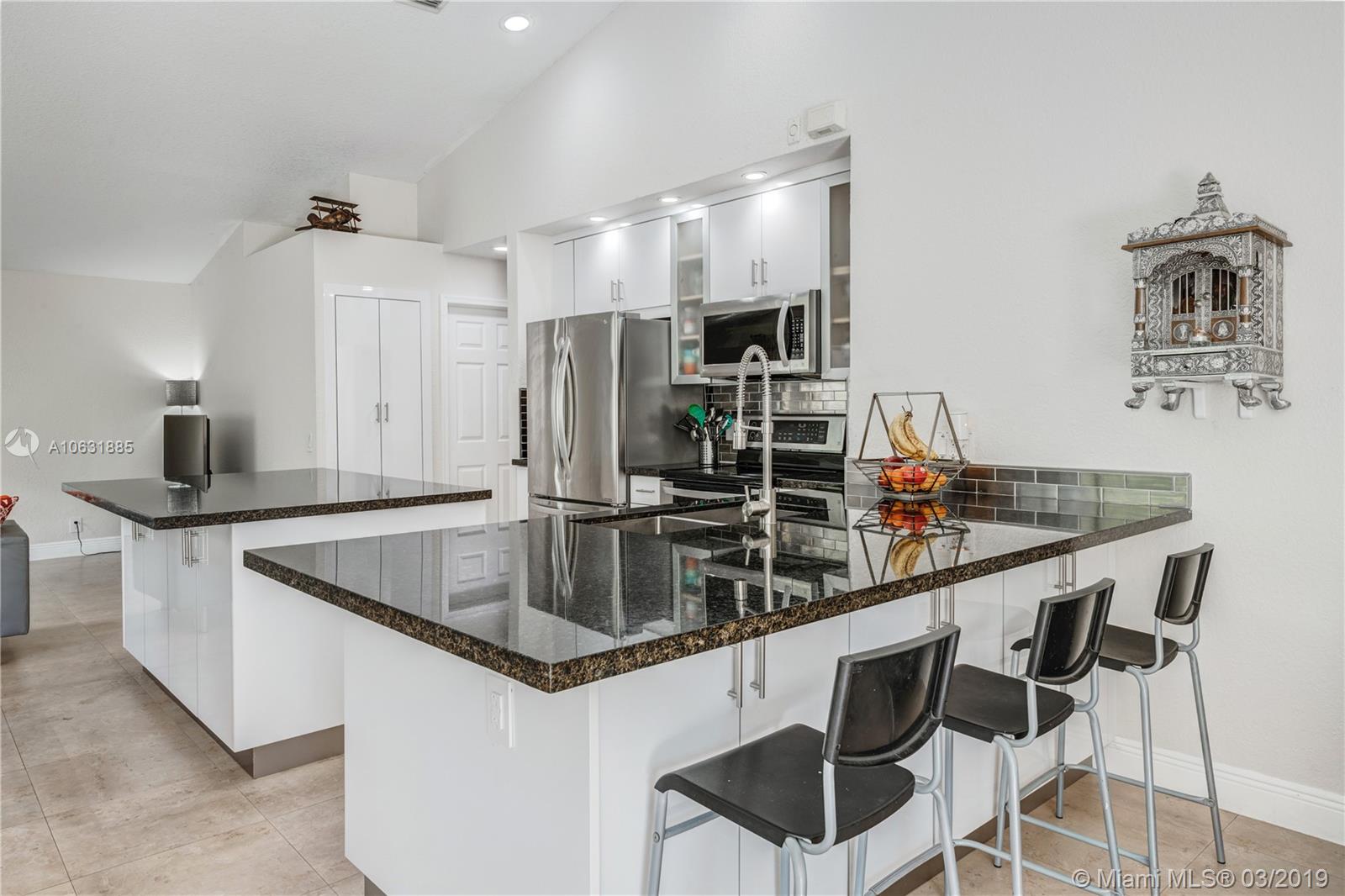Complete renovation! This contemporary, open concept home features stunning modern Kitchen with stainless appliances, granite counters, and custom glass tile backsplash. Freshly painted inside and out. Living, Dining, and Family Rooms circle the Kitchen creating a floorplan perfect for entertaining. New tile floors throughout create seamless, stunning interior. Bedrooms feature wood looking modern tile for easy maintenance. Both Bathrooms are newly upgraded with all the modern conveniences. Master Bath has glass enclosed shower. Cozy yard with patio is easy maintenance. Hurricane shutters for entire home. Gated Weston community, with five star resort style amenities offers hotel like pools, water slide, miniature golf, restaurant, fitness room, events, sports fields and so much more!