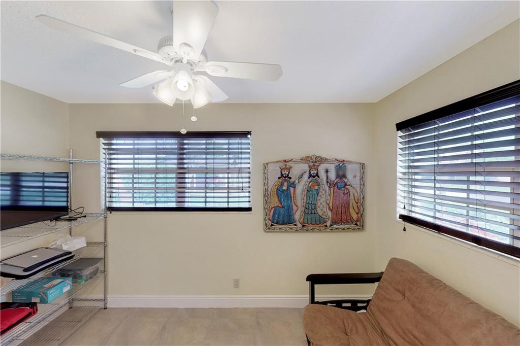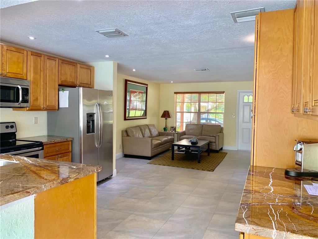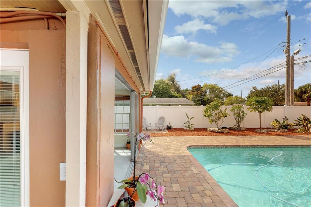 Totally renovated 3/2 located seconds from interstate and Turnpike. Yet the east of 95 location makes the beach a short drive or bike ride away. The home boasts a new roof in 2016 and new vinyl privacy fence in 2018. Both bathrooms and kitchen are updated, and there is a wall of pantries with pull out drawers. AC is also recent, as well as the porcelain floors and recessed lighting. The backyard is a tropical paradise with newly tiled pool and paver deck. The pool cabana is currently used as a home office.