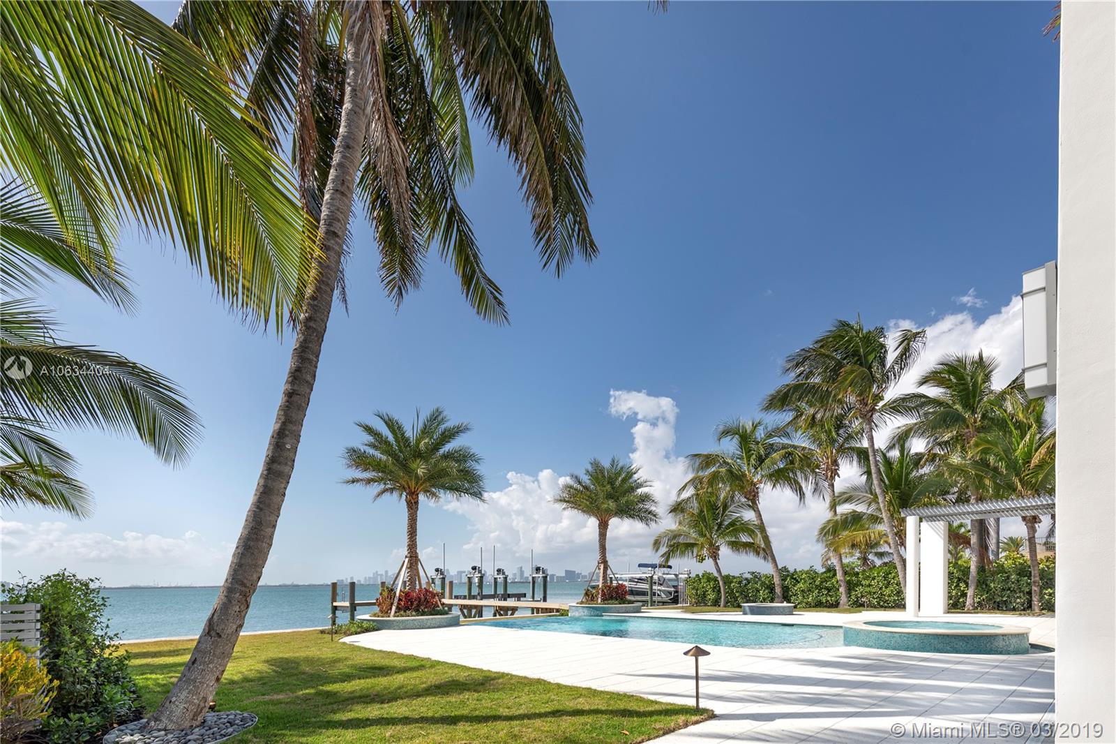 MODERN MASTERPIECE ON OPEN BAY OVERLOOKING MIAMI'S SKYLINE! THIS STUNNING 5 BED/5.5 BATH + MOVIE THEATER + MAID'S QUARTERS IS SITUATED ON A 15k SQ.FT. LOT FEATURING ENDLESS WATER & CITY VIEWS. SOME OF THE FEATURES INCLUDE HURRICANE IMPACT WINDOWS AND DOORS, CRESTRON SMART HOME SYSTEM, WATER FILTRATION SYSTEM, CENTRAL VACUUM, BOAT DOCK WITH 40K-LB (high speed) BOAT LIFT, SOLAR POWERED, FULL HOUSE GENERATOR, 8K-LB CAR LIFT & 3 CAR GARAGE+ CAR LIFT. THE OUTDOOR OASIS FEATURES A SALT WATER HEATED INFINITY EDGE POOL WITH SPA, SUMMER KITCHEN, FIRE PIT AND SUNSETS THAT WILL LEAVE YOU BREATHLESS. THE VERY QUAINT SMALL CITY OF NORTH BAY VILLAGE IS JUST MINUTES FROM BAL HARBOR , CANYAN RANCH AND SOUTHBEACH. THIS AREA IS UP AND COMING OFFERING GREAT INVESTMENT OPPORTUNITY. ENTERTAINING OFFERS.
