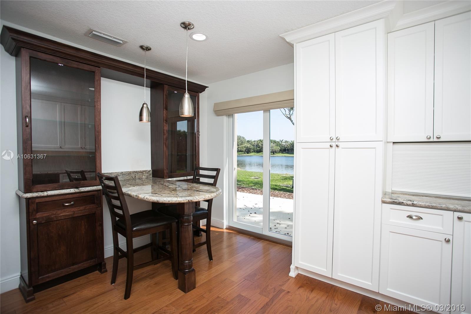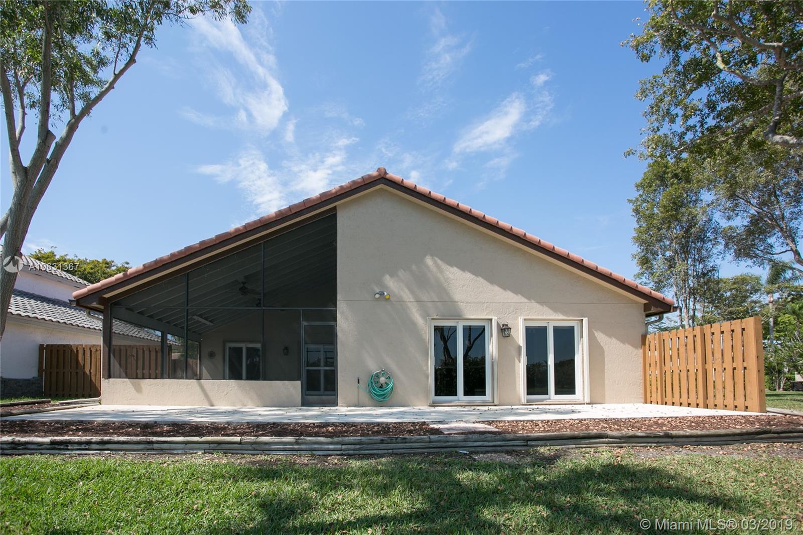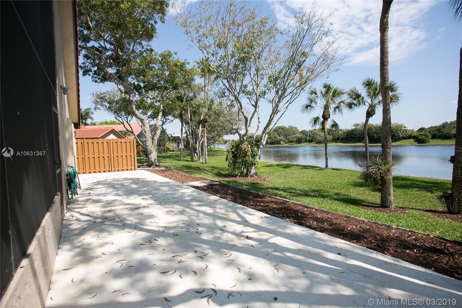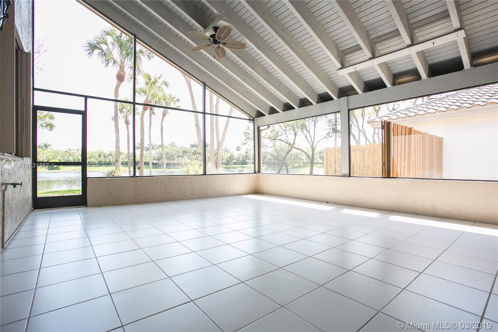 Move in Ready! Completely updated 3/2 one story set on a private lakefront lot with WIDE WATER VIEWS and no neighbors behind. Spacious 400 sq ft covered and tiled patio is perfect for entertaining or just relaxing. Tastefully remodeled eat-in kitchen boasts white Shaker style cabinets, unique granite, subway tile backsplash, undermount lights, and stainless steel appliances. Bathrooms have also been redone with wood cabinets, neutral tile and trendy fixtures. High quality wood flooring throughout. The ceilings are textured and completed with LED lights. All doors and windows are hurricane IMPACT glass, no stress during hurricane season! Association fee includes lawn maintenance and sprinklers as well as community pool which is just steps away!