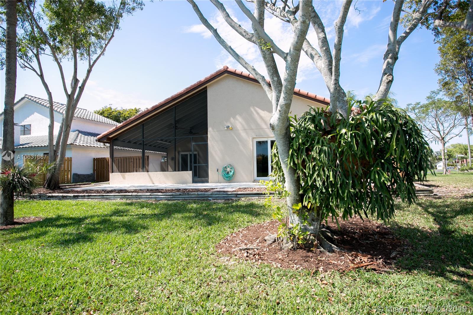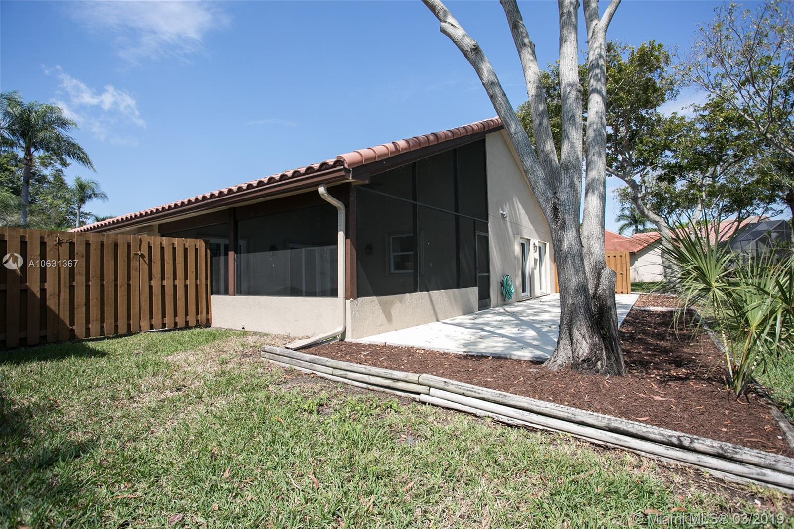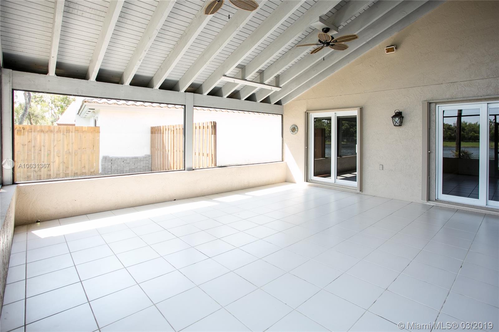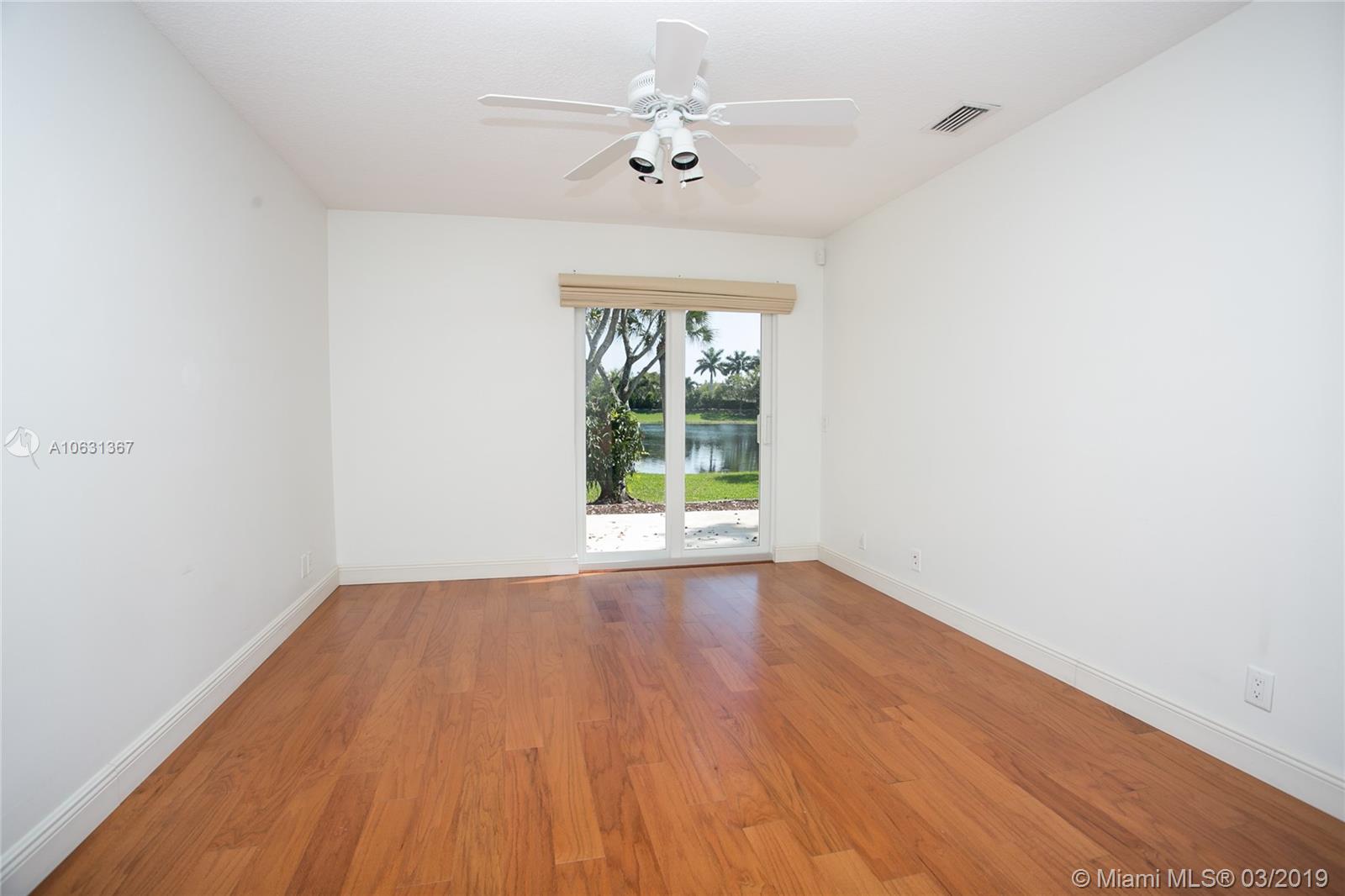 Move in Ready! Completely updated 3/2 one story set on a private lakefront lot with WIDE WATER VIEWS and no neighbors behind. Spacious 400 sq ft covered and tiled patio is perfect for entertaining or just relaxing. Tastefully remodeled eat-in kitchen boasts white Shaker style cabinets, unique granite, subway tile backsplash, undermount lights, and stainless steel appliances. Bathrooms have also been redone with wood cabinets, neutral tile and trendy fixtures. High quality wood flooring throughout. The ceilings are textured and completed with LED lights. All doors and windows are hurricane IMPACT glass, no stress during hurricane season! Association fee includes lawn maintenance and sprinklers as well as community pool which is just steps away!
