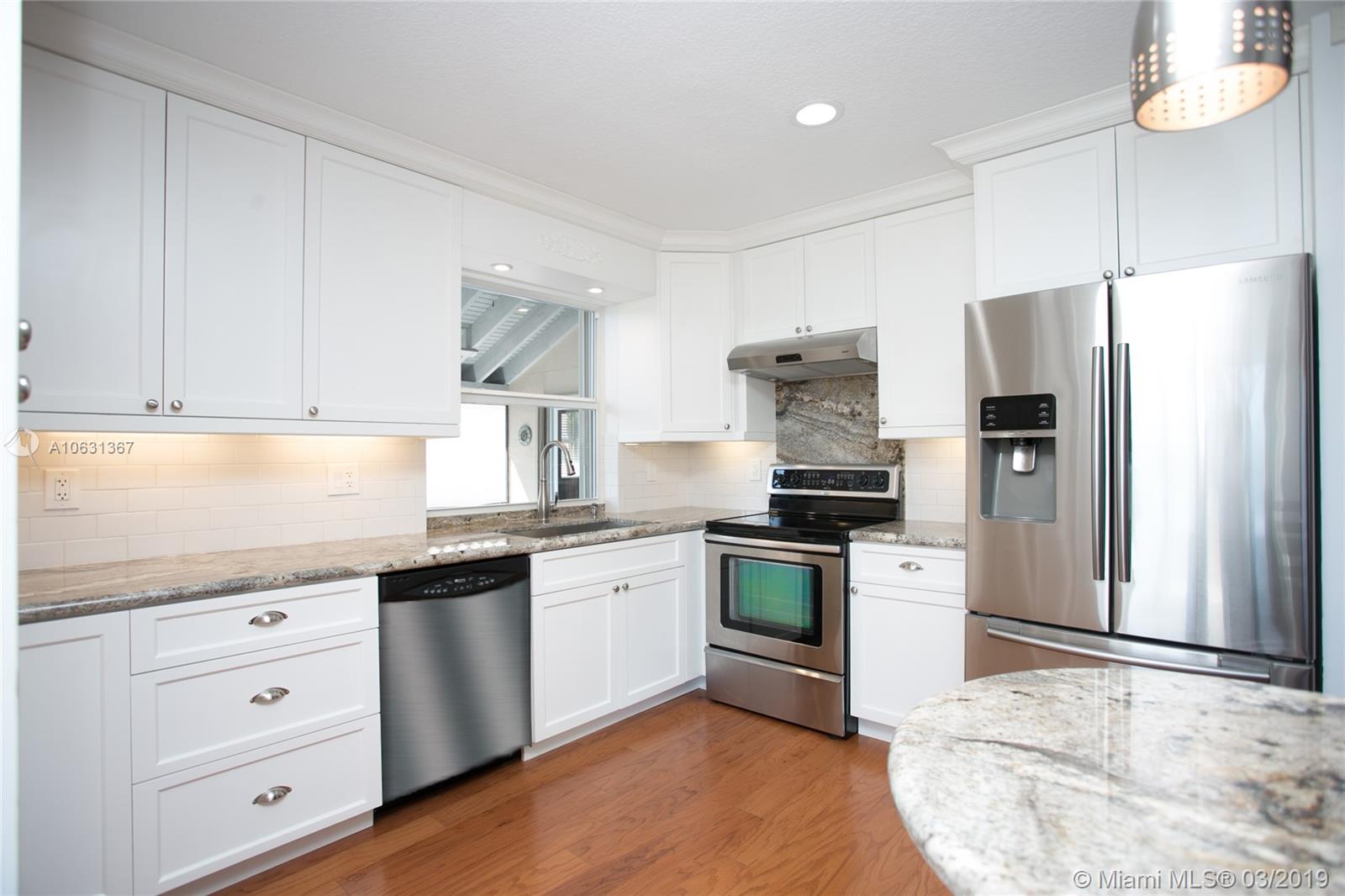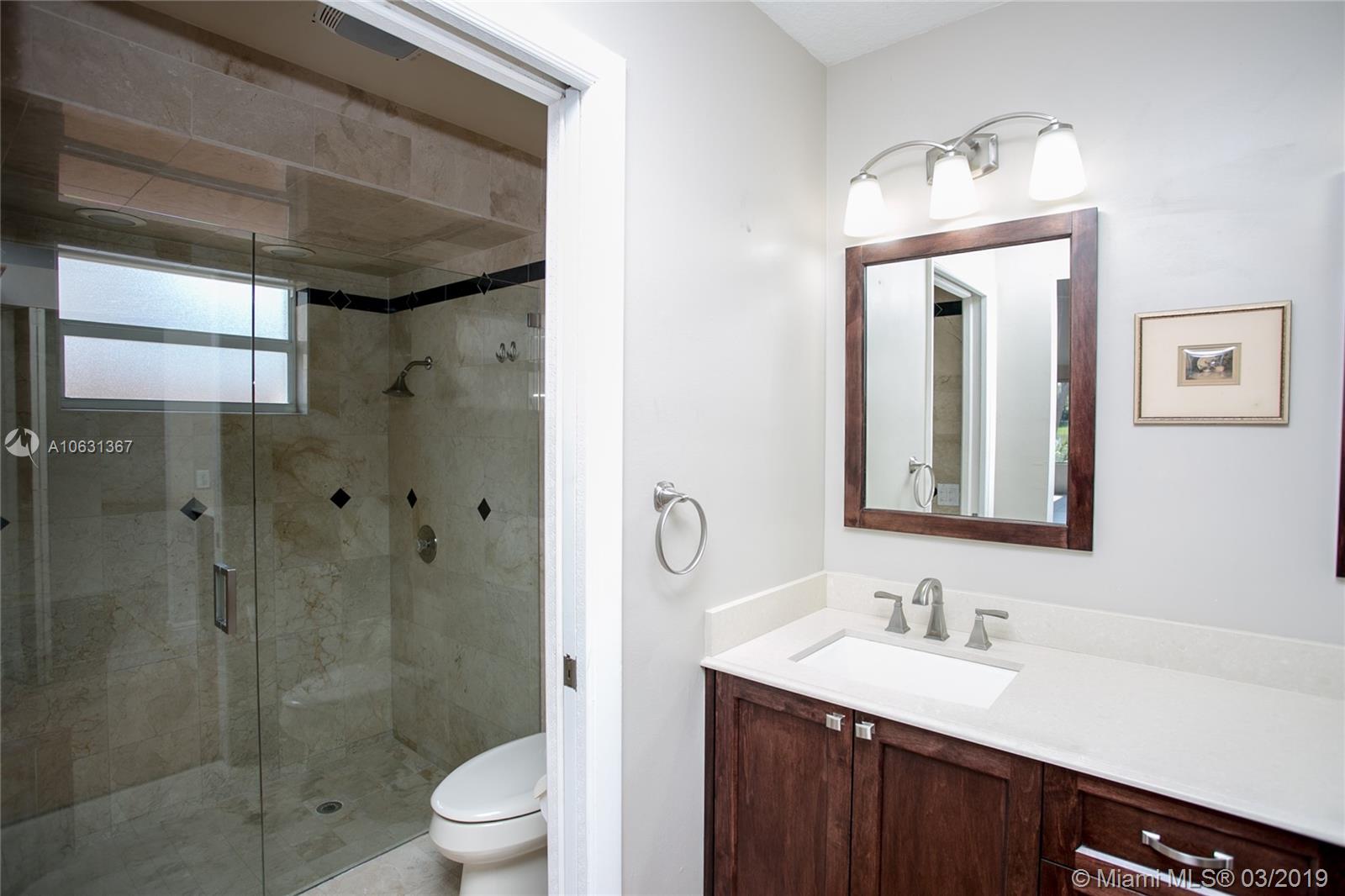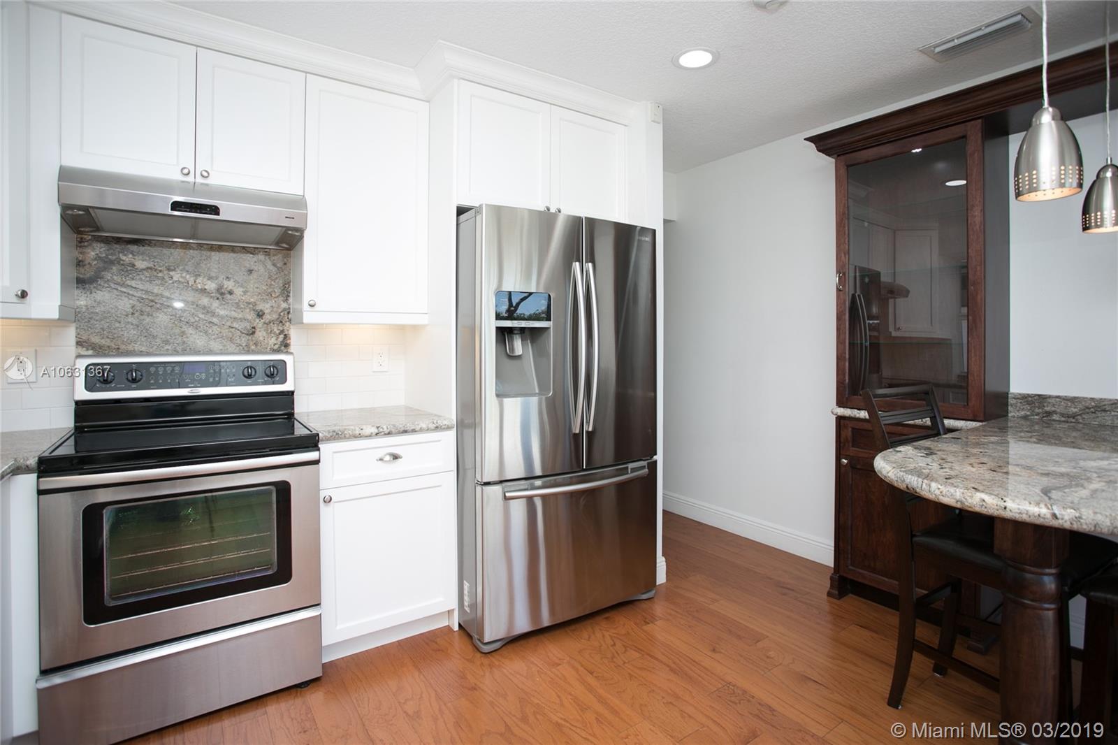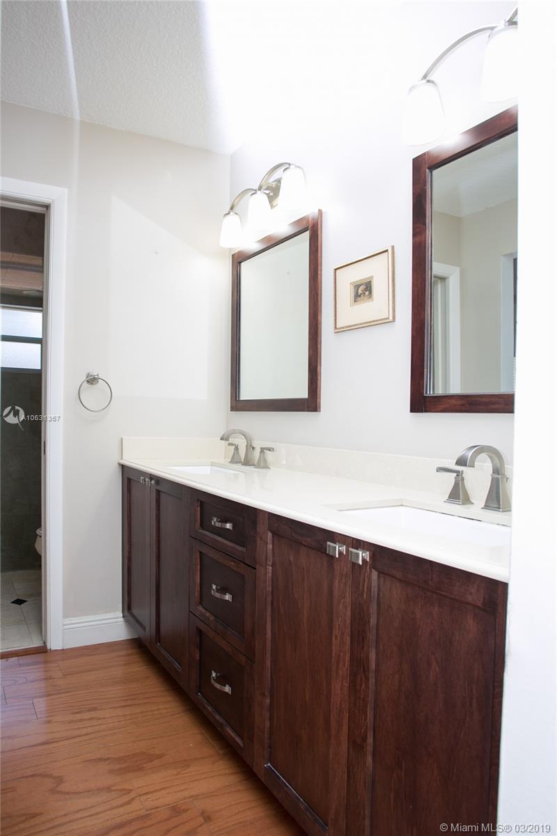 Move in Ready! Completely updated 3/2 one story set on a private lakefront lot with WIDE WATER VIEWS and no neighbors behind. Spacious 400 sq ft covered and tiled patio is perfect for entertaining or just relaxing. Tastefully remodeled eat-in kitchen boasts white Shaker style cabinets, unique granite, subway tile backsplash, undermount lights, and stainless steel appliances. Bathrooms have also been redone with wood cabinets, neutral tile and trendy fixtures. High quality wood flooring throughout. The ceilings are textured and completed with LED lights. All doors and windows are hurricane IMPACT glass, no stress during hurricane season! Association fee includes lawn maintenance and sprinklers as well as community pool which is just steps away!