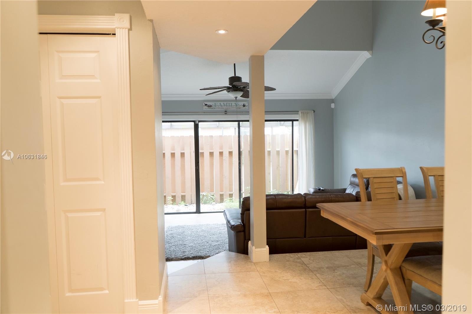 Gorgeous and quiet 2 Bed/2 Bath/+Loft Townhome nestled in the heart of Davie! Newer roof and A/C system. This COMPLETELY renovated Townhome has an updated kitchen with stainless steel appliances, granite countertops, 20 ft. vaulted ceilings in the living/dining room area with a skylight window that transmits natural light, porcelain tile throughout, laminate floors in bedrooms, and a large Master bedroom with a walk-in California closet. Both bathrooms have been beautifully renovated. Townhome is located right across from community pool, tennis courts, and has plenty of guest parking. Great schools located nearby and minutes away from Whole Foods, Trader Joes, Publix, Tower shops, and more! Don’t miss out on this opportunity!!