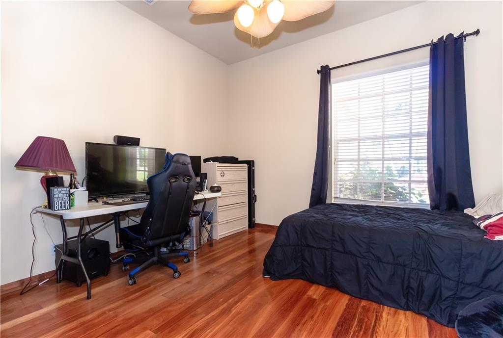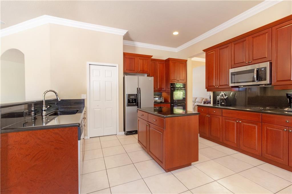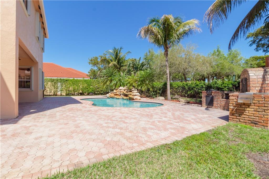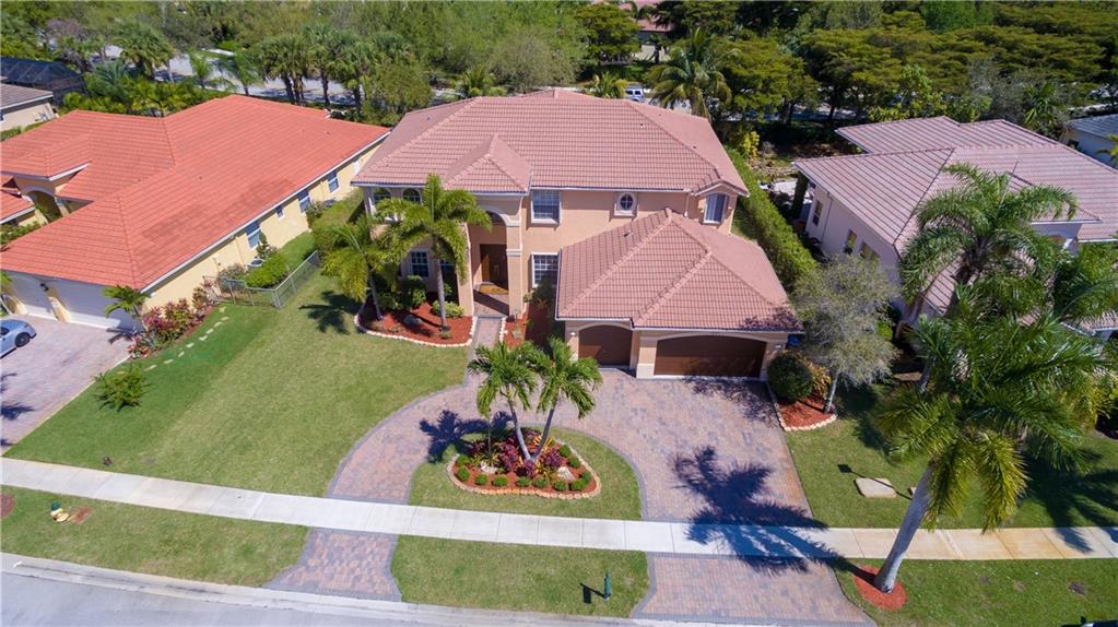 Gorgeous home with an enormous amount of space. 7 large bedrooms with 3 bedrooms on the first floor! Oversized master has a large sitting area and two walk in closets and a luxury spa bath. Upper level has gorgeous real wood floors. Kitchen is upgraded with real wood cabinetry, granite counter tops and newer appliances. The backyard is perfect for entertaining with its large custom pool with a waterfall giving you the resort style feel. Cook your own gourmet pizzas in the custom brick oven by the pool. Multi channel Klipsch surround sound in ceiling speakers through out the house and patio. Home is protected by accordion shutters and a home security system. Home was just painted both inside and out!