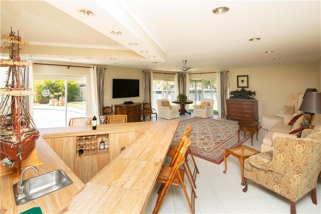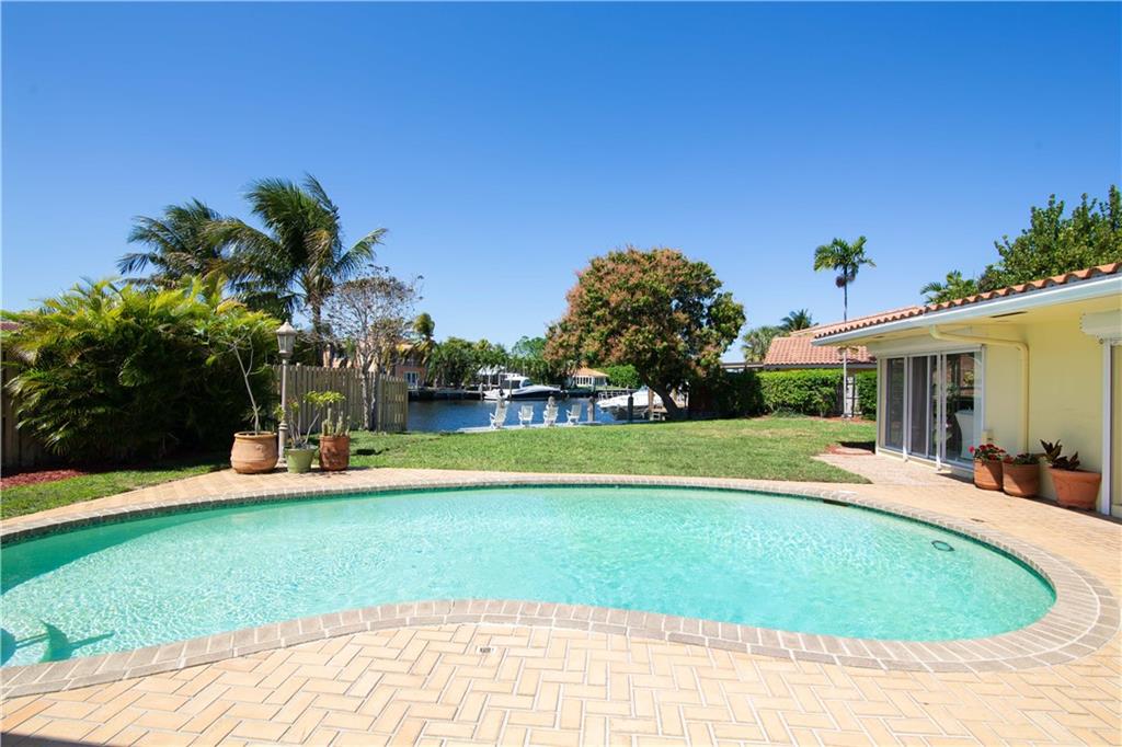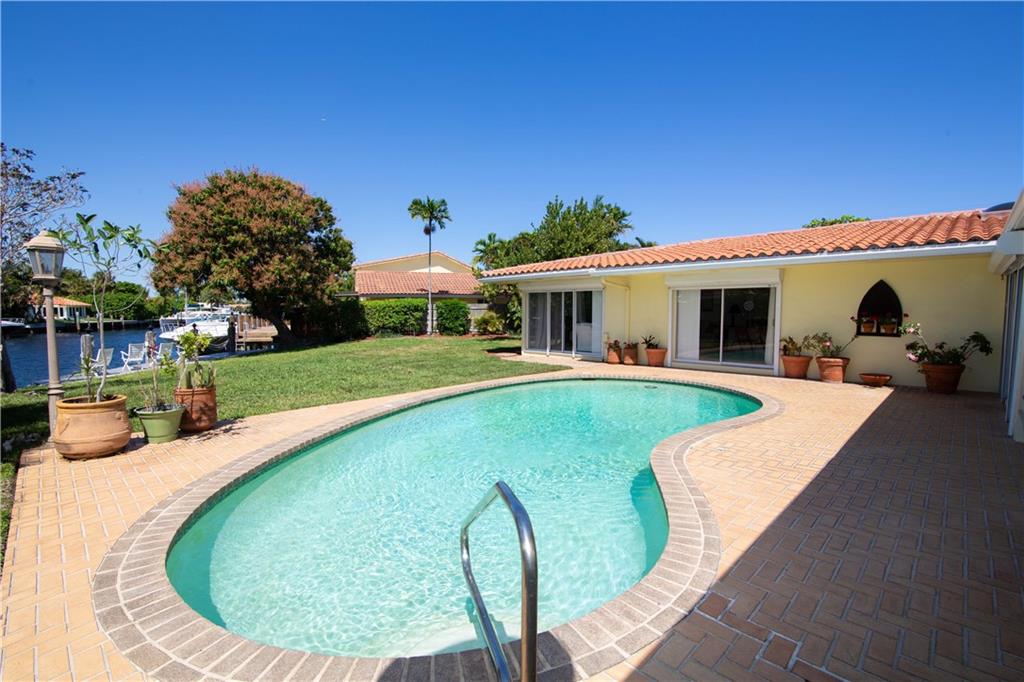 Enjoy pool and waterfront views from most every room in this classic Landings residence. Situated on over a third of an acre this spacious home features four bedrooms each with a private bathroom, a magnificent family room with a wet bar, a huge master bedroom with a sitting area, custom cabinetry, new dock, hurricane shutters and more. This ocean access home has no fixed bridges and is located just two minutes from the intracoastal. This house is ready for your decorator touches and could easily accommodate an in-law suite.