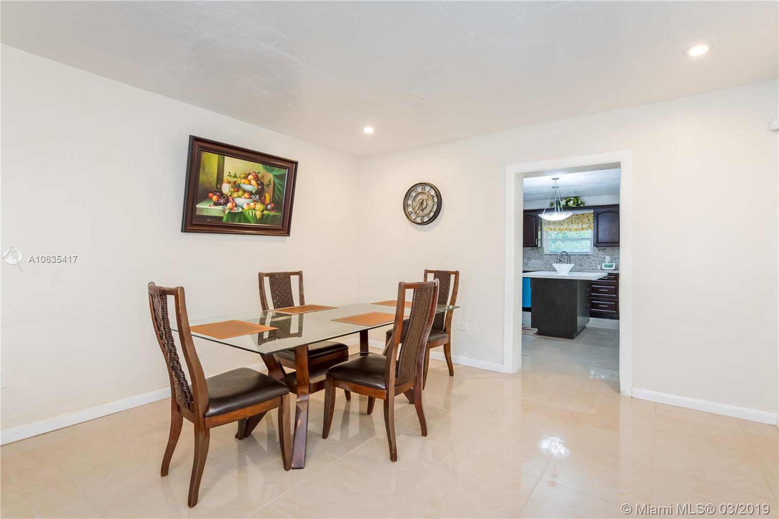 Renovated 4 bedrooms and 3 baths home. Fenced yard with fruit trees. Property feature new kitchen with granite counter top, island and stainless steel appliances. Floor is porcelain and 2 baths are renovated with a jacuzzi tub in the master bath. A/c system is also new and laundry has ample storage. Spacious outdoor patio to enjoy the evenings and family barbecue. Close to Aventura and great shopping in North Miami. Bring your qualified buyers, easy to show and quick response to all offers.