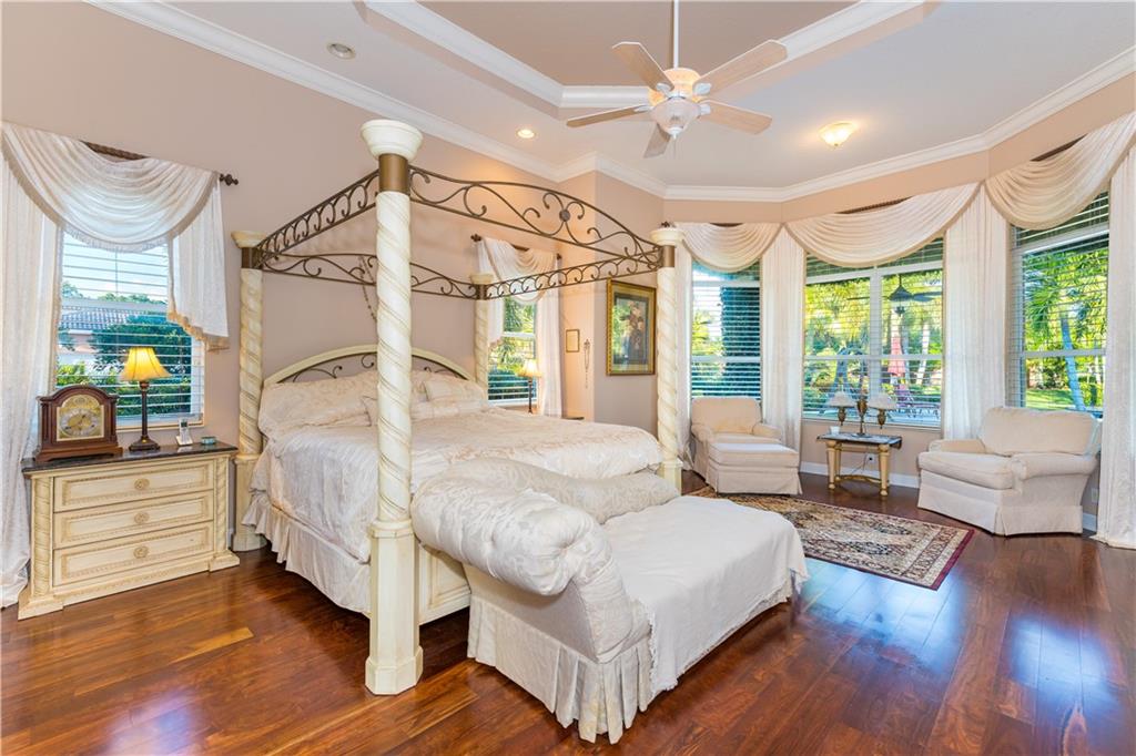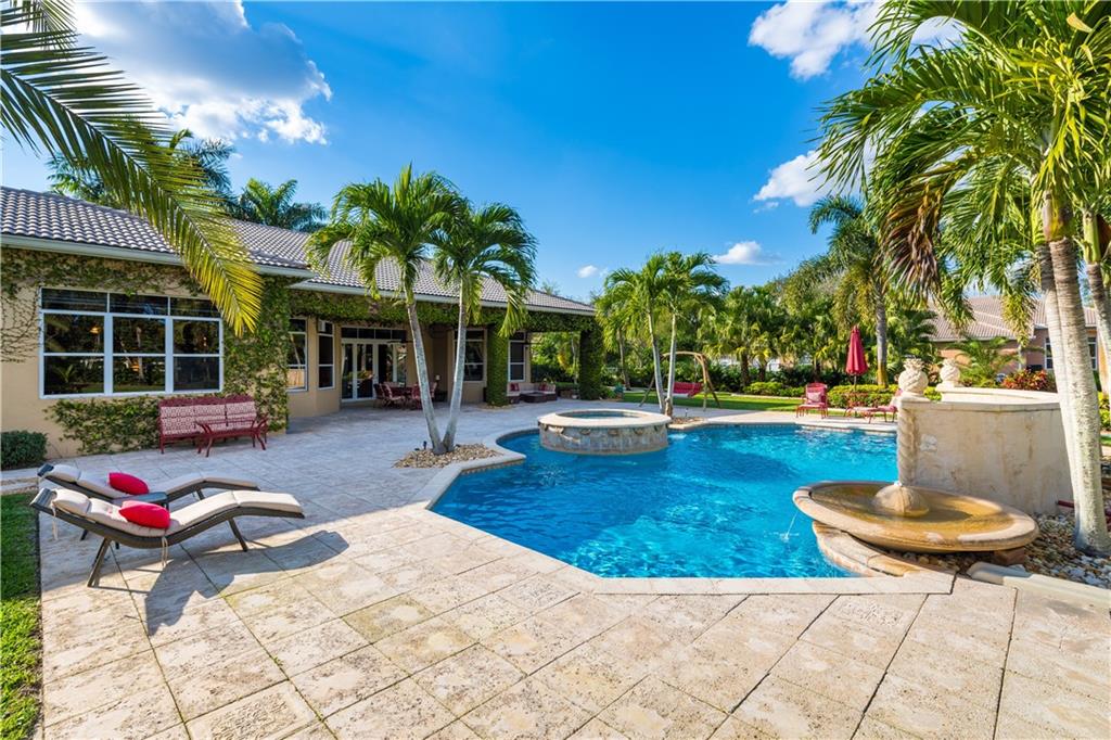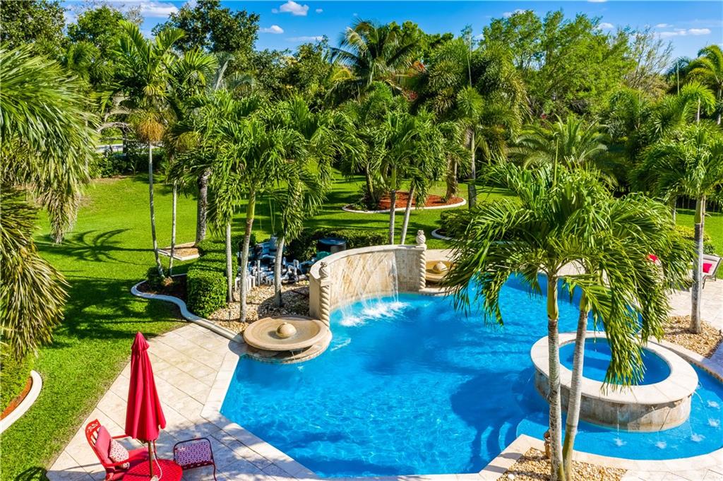 Luxurious 4 bd/4 full ba, custom Cherry wood office. Marble flrs inlayed onyx. Tigerwood floor, Limestone bath in custom Mstr, upgrades/custom thruout this luxury home. Kitchen features dbl oven, granite countertops/backsplash, filtered water w/hot/cold side faucet, walk-in & butler’s pantry. Sprawling space perfect for billiard rm, surround speakers in ceiling. Open floorplan flows indoor/out past spacious deck, 40x26 saltwater pool w/16’ waterfall/bowls, 4 pumps, self-cleaning system. Jacuzzi/seating inside pool. Model street surrounded by lush landscaping, on cul de sac w/oak trees, sidewalks inside/out of community great for bike rides & walks, quiet gated neighborhood, by Sawgrass Mills Mall, BB&T Ctr, AMEX HQ, shopping, hwys, restaurants, top rated schools both public/private.