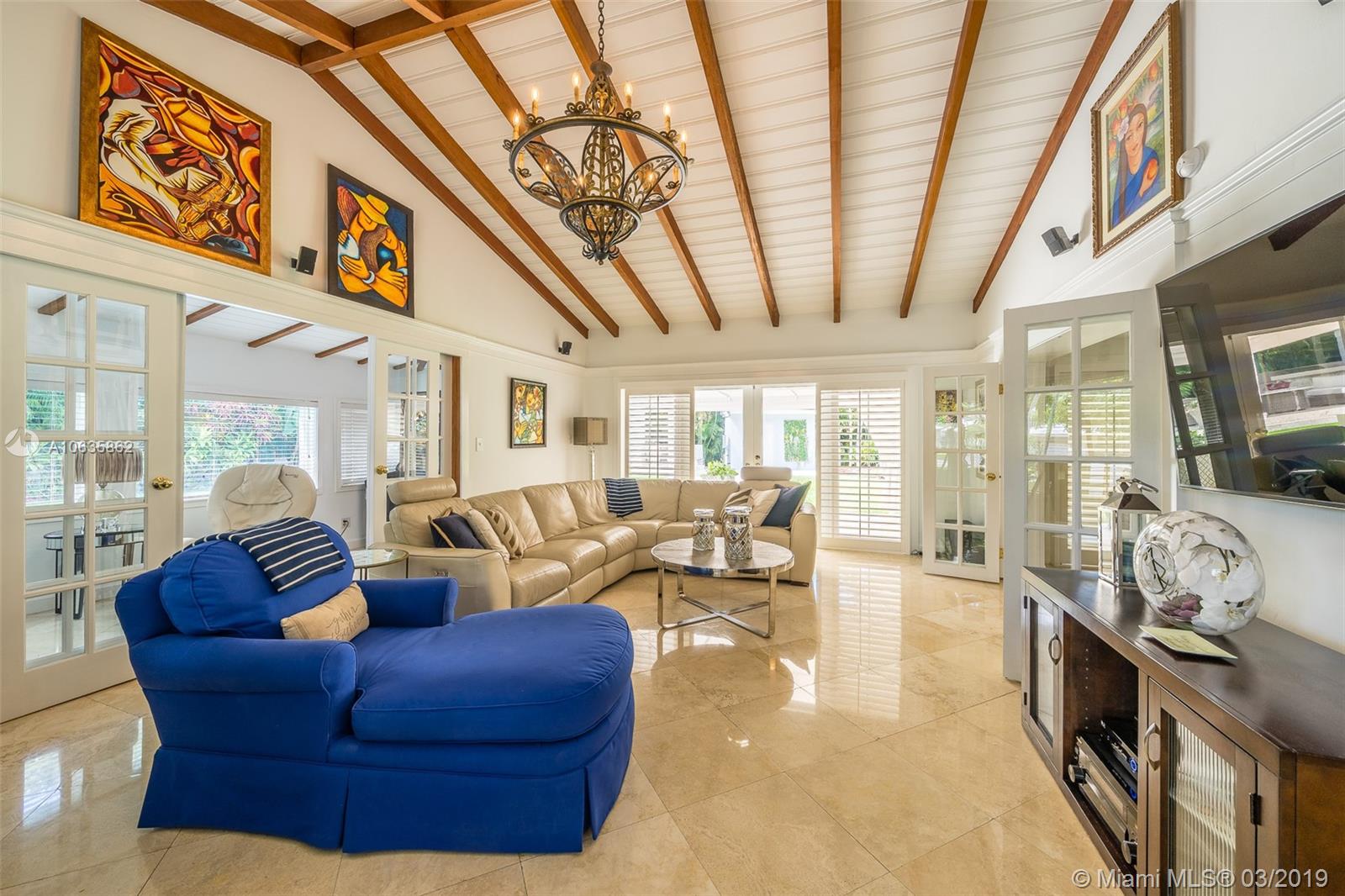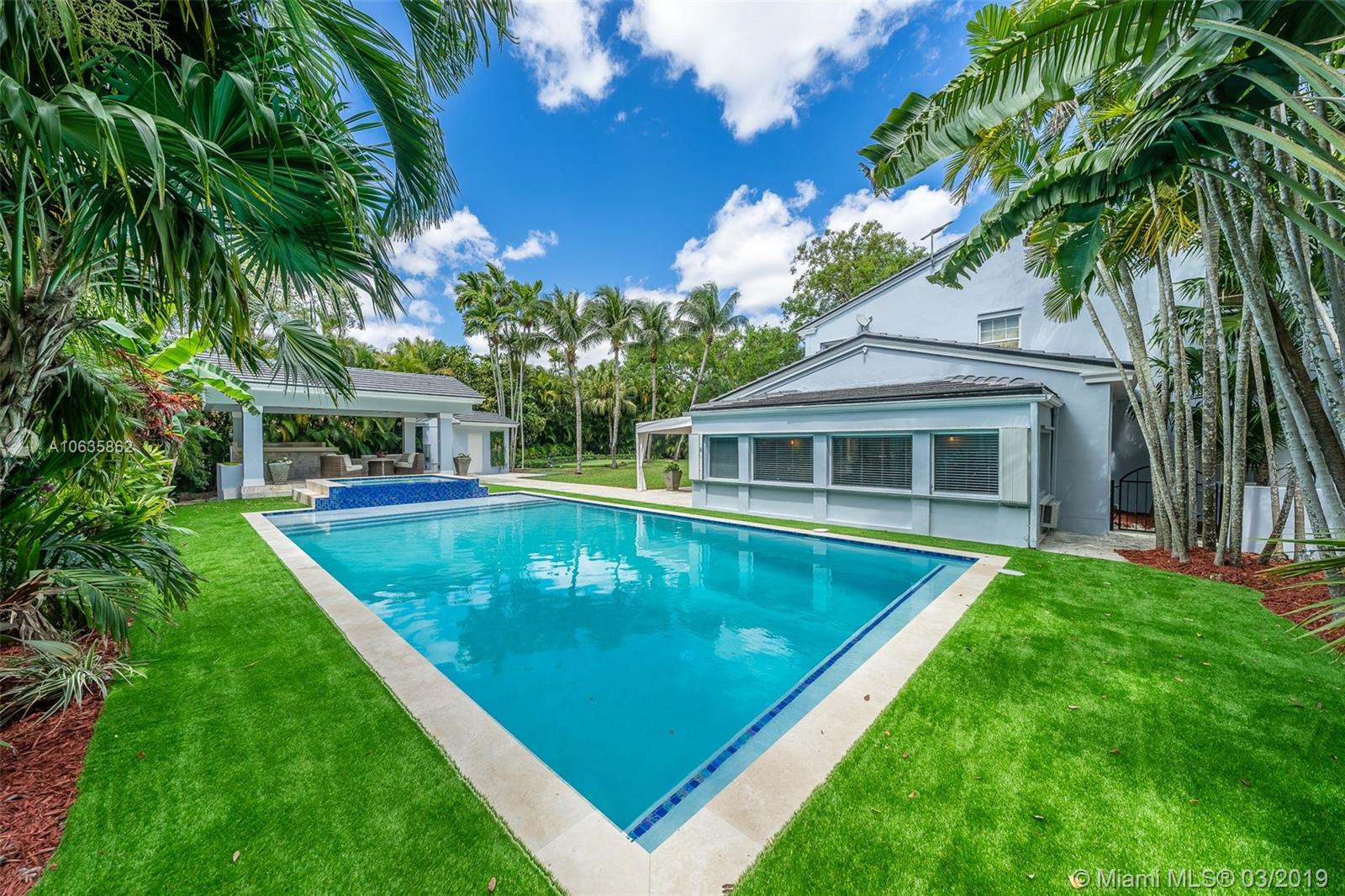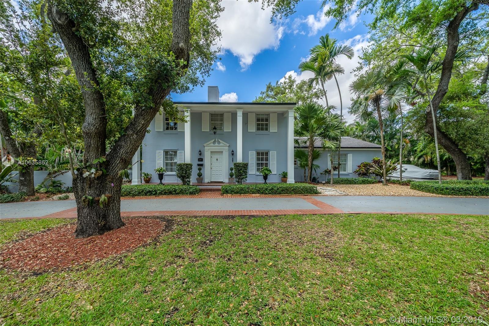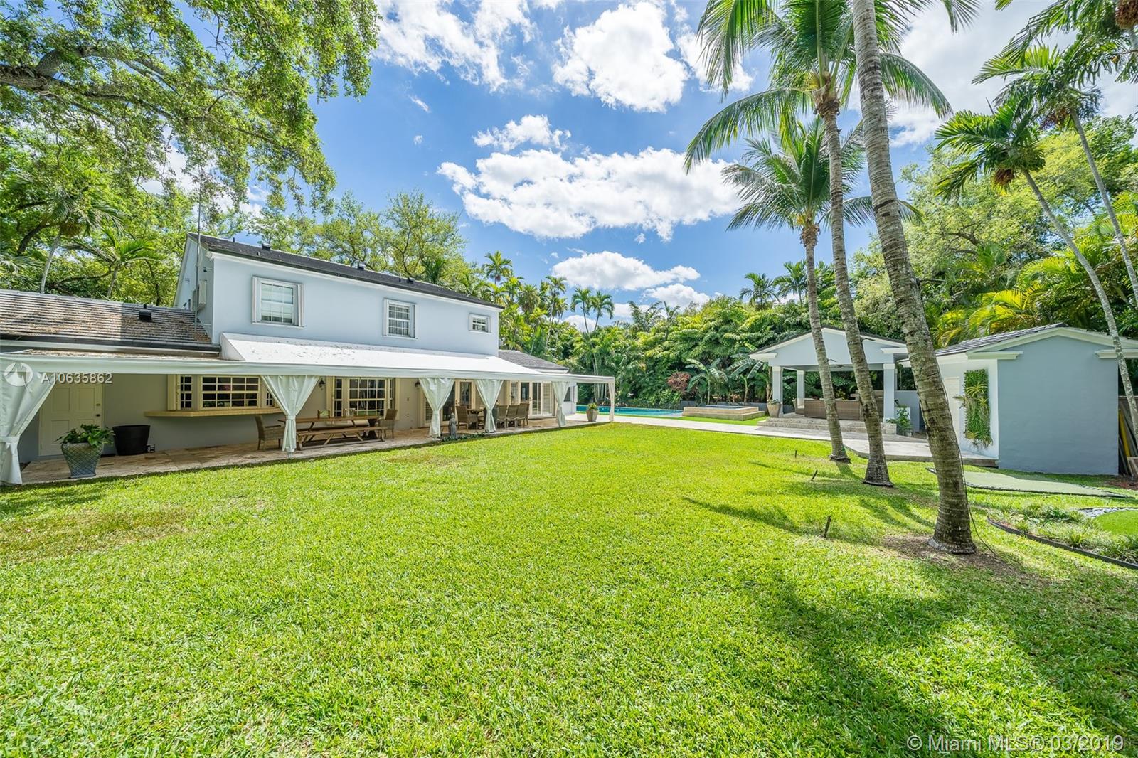 Beautiful corner Colonial Home on oak filled 21,000 sq ft lot! This stunner features a newly remodeled oversized pool and jacuzzi next to a great gazebo, custom putting green with summer kitchen and outdoor cabana bath. The yard space on this house is absolutely off the charts! Marble and wood floors throughout this well designed home. A natural chimney is the center piece of this house with generous living spaces, a kitchen featuring granite and stainless steel appliances, a new roof, an FPL installed generator, and an all around positive vibe! Do not miss out on viewing this Coral Gables gem!!