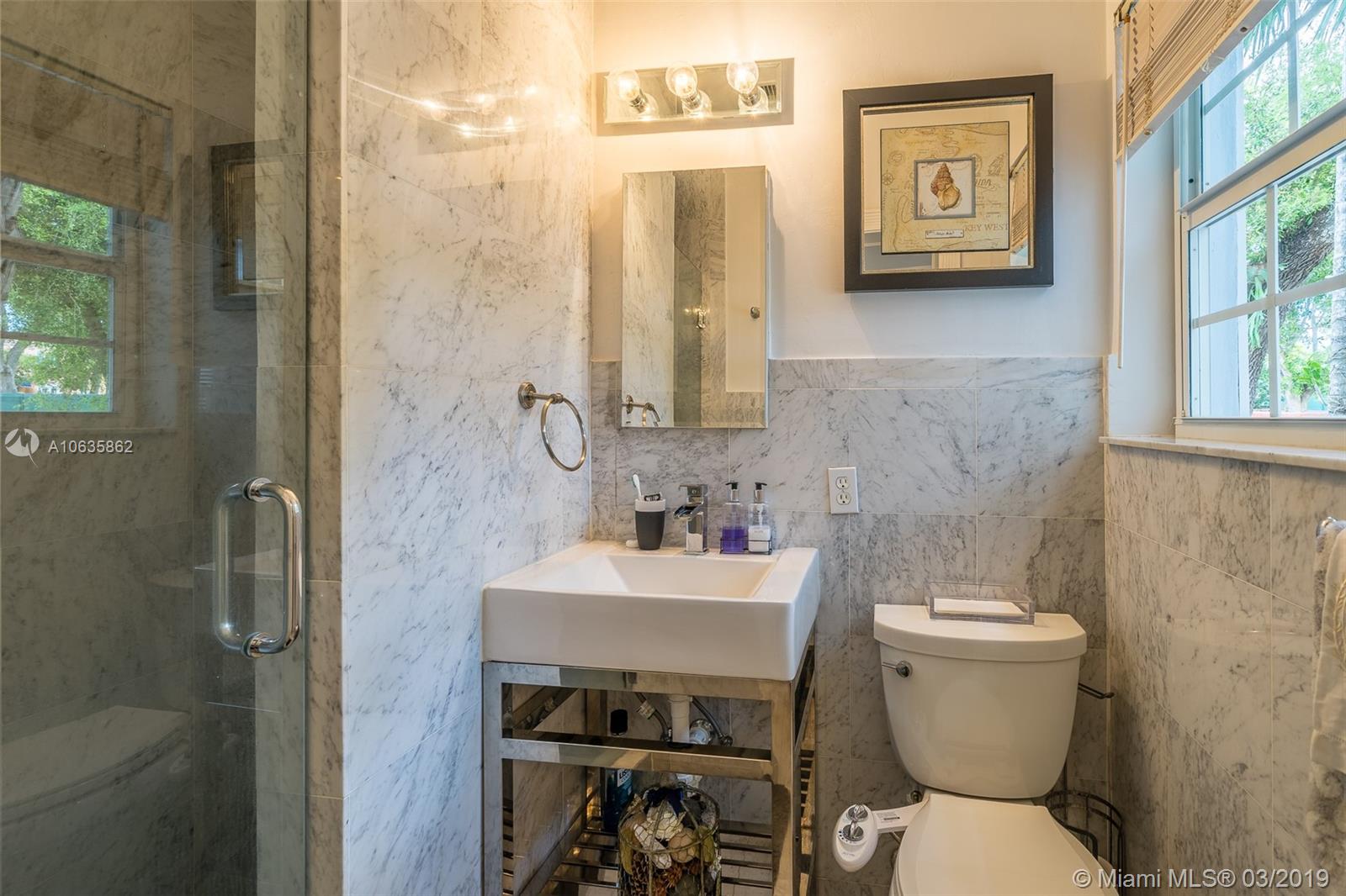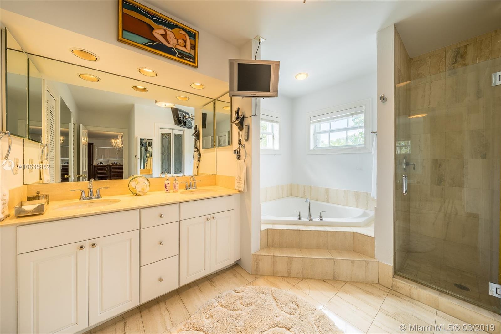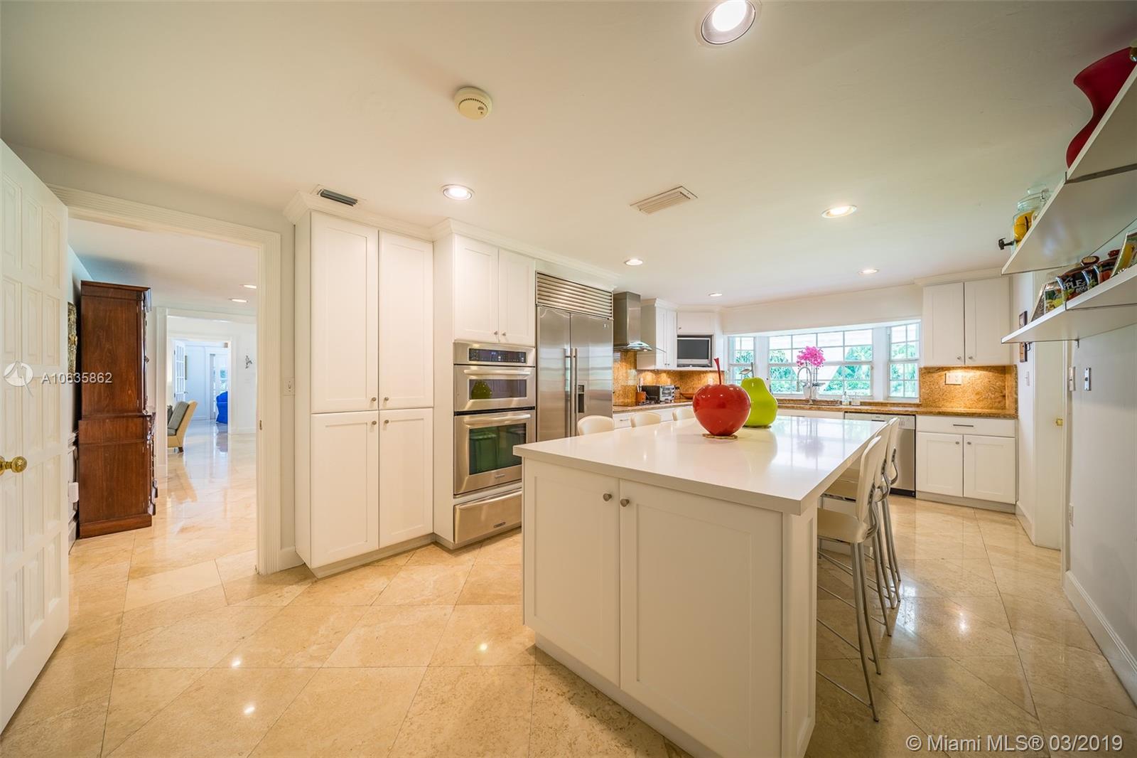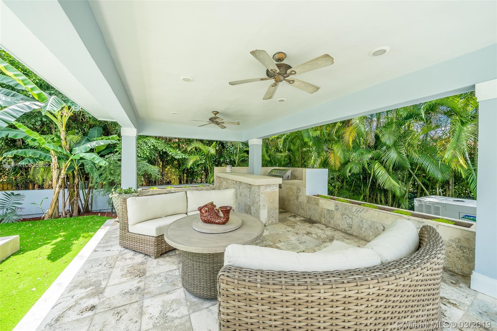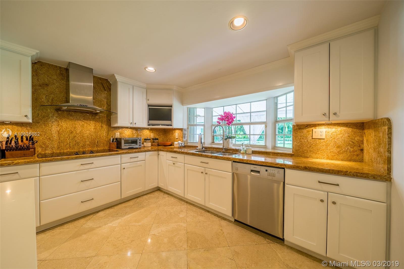 Beautiful corner Colonial Home on oak filled 21,000 sq ft lot! This stunner features a newly remodeled oversized pool and jacuzzi next to a great gazebo, custom putting green with summer kitchen and outdoor cabana bath. The yard space on this house is absolutely off the charts! Marble and wood floors throughout this well designed home. A natural chimney is the center piece of this house with generous living spaces, a kitchen featuring granite and stainless steel appliances, a new roof, an FPL installed generator, and an all around positive vibe! Do not miss out on viewing this Coral Gables gem!!