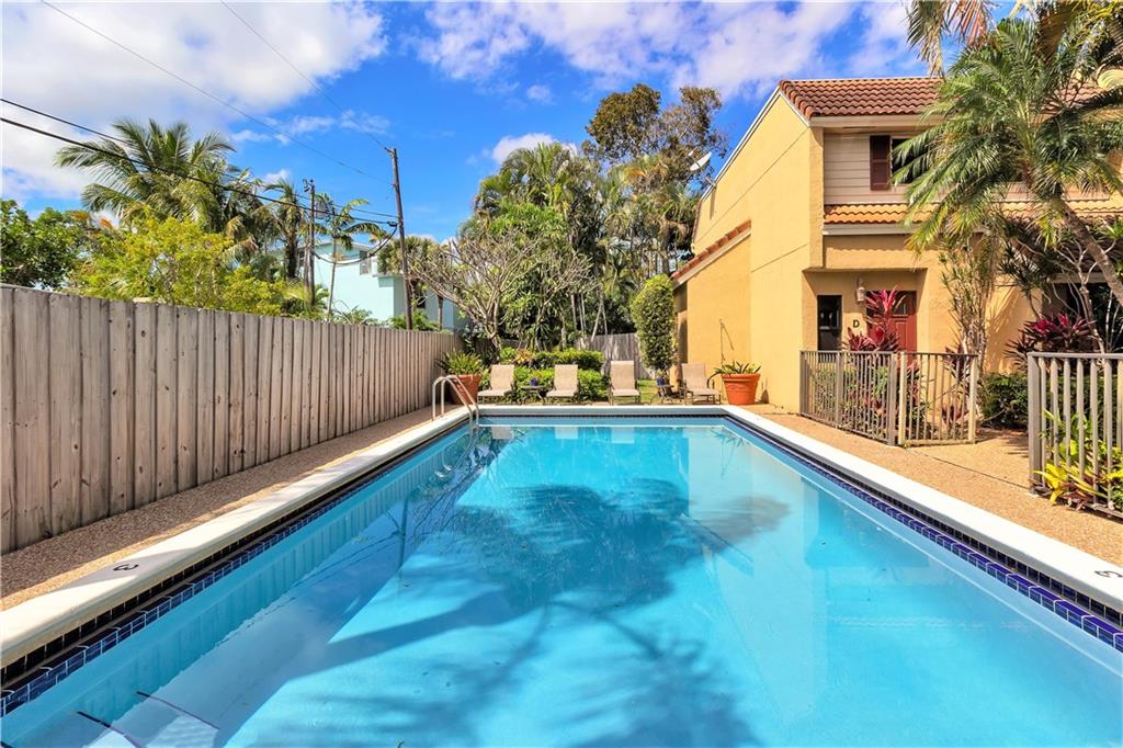 Amazing location! Southport Townhomes is a small gated community of 8 townhouse condos located East of Federal + close to SE 17th St. When you walk in the front door of this beautiful 2 story townhome you are immediately drawn to the light + bright living room w/ views of a tropical private fenced backyard oasis. Downstairs features an open floor plan w/ a large dining + living room area. Kitchen is good size w/ plenty of storage. Renovated 1/2 bath on the first floor as well as washer + dryer. New impact windows + doors. 2nd floor features 2 master en-suite bedrooms w/ lots of closet space. 2 side by side assigned parking spots. Centrally located to beaches, airport, highways, shopping + restaurants. An amazing opportunity to own in the middle of it all! One year home warranty included!!