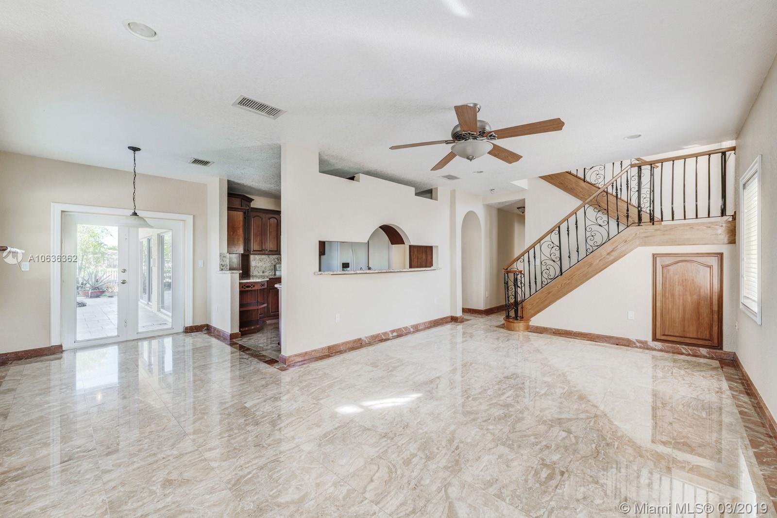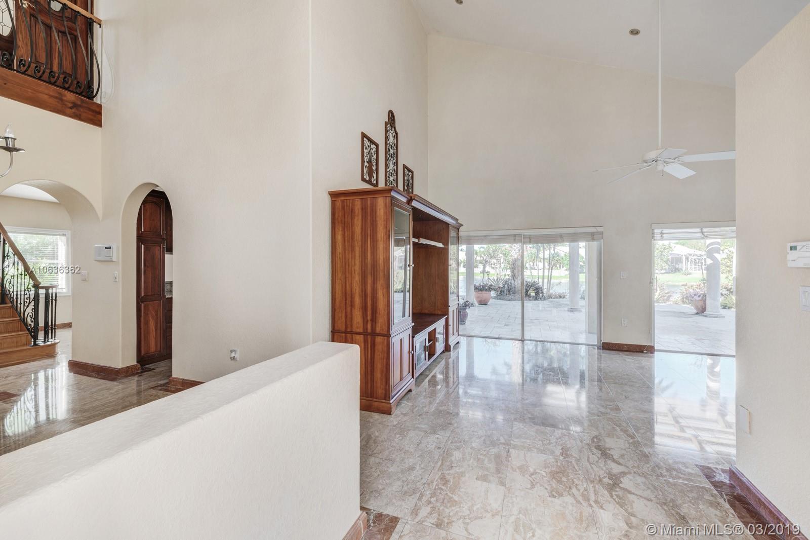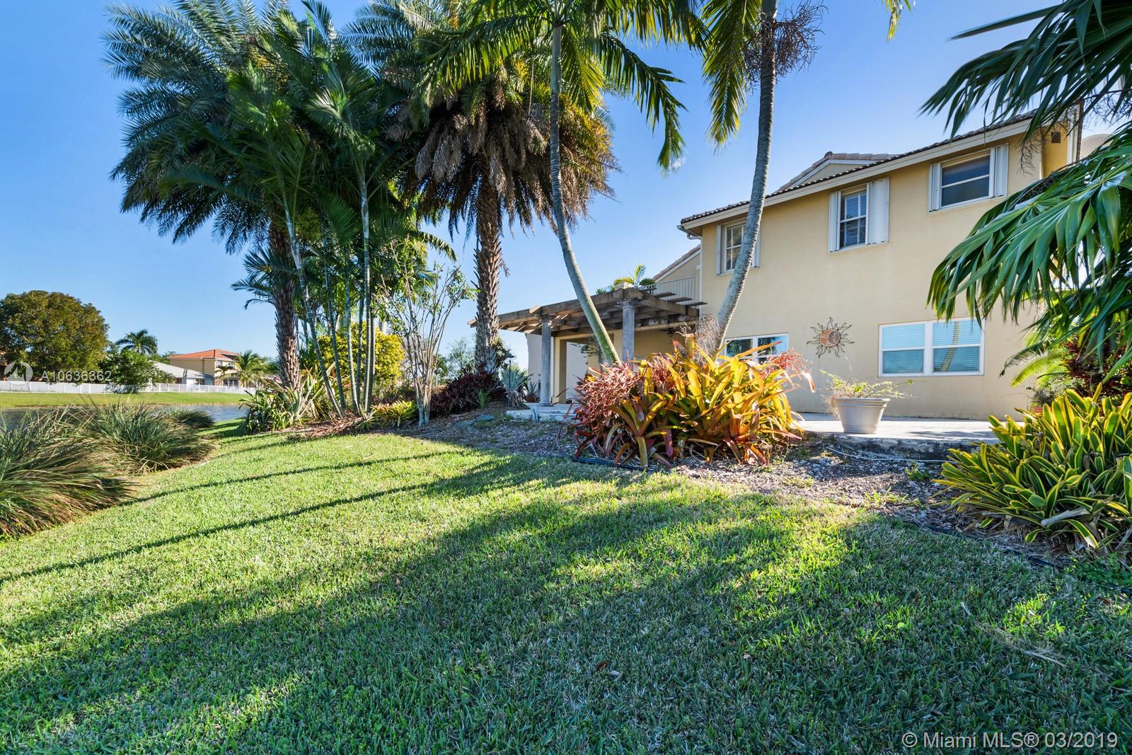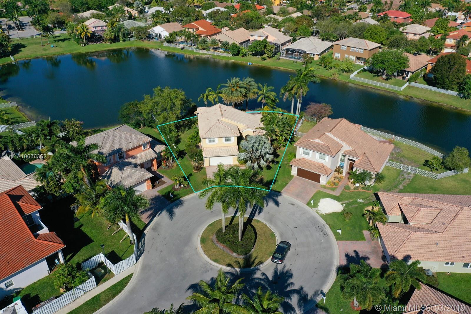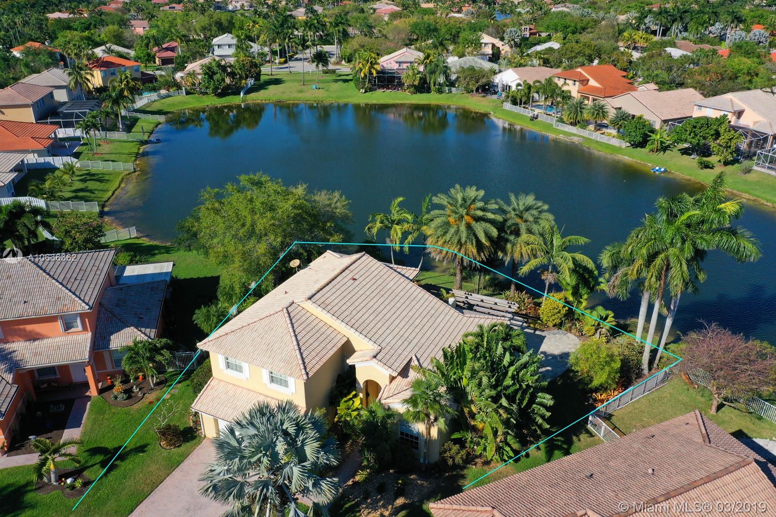 BRING ALL YOUR OFFERS VERY MOTIVATED SELLERS! 4 bedroom 3 full bathroom lake front home on a private cul-de-sac! Beautiful panoramic lake views from almost every room! Sprawling entertaining space flowing w/ marble flooring throughout the downstairs and high volume ceilings. 1 full bdrm in-law suite downstairs w/ full bathroom! Beautiful kitchen w/ wood cabinets, granite countertops that passes straight into that family room. Great for gathering! Hardwood flooring upstairs. Spacious master bedroom with a walk-in closet and balcony overlooking the lake. Enjoy the sunrise and sunset in your very own tropical oasis backyard Oversized lot with 141 feet of lake frontage. 2 car garage! 24/7 guard gate. PRIME LOCATION! PRICED VERY AGGRESSIVE!!
