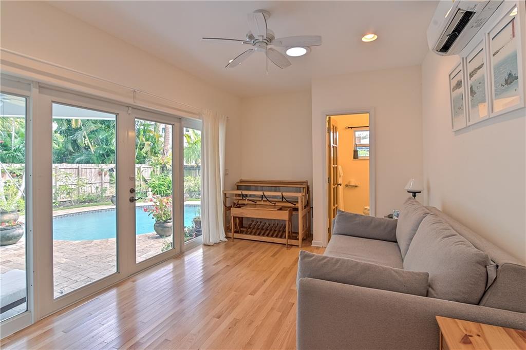 Rio Vista charmer. 3 bed 2.5 bath with a converted garage. Impact windows, new roof, open floor plan, fireplace and wood floors. Situated on a beautiful tree-lined street. Pool has southern exposure, with a fenced in yard. Easy to show!