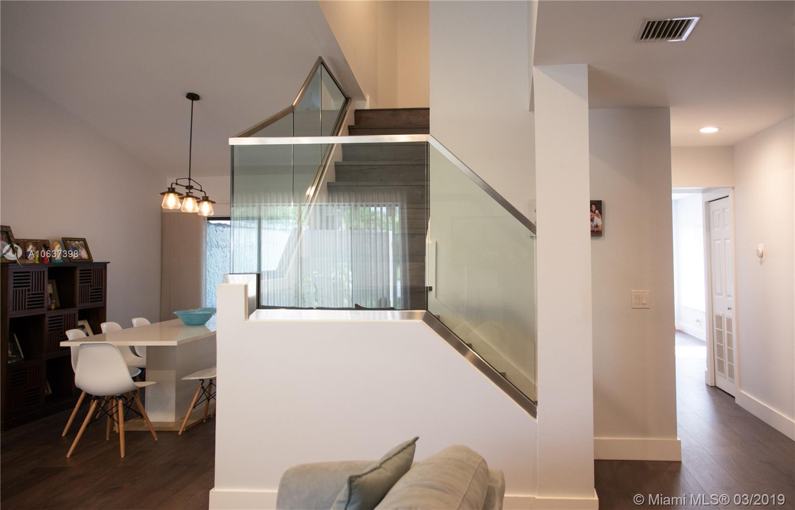 Beautifully remodeled and modernly updated townhome in Weston. 4 Bedrooms, 2.5 bathrooms, and 2 car garage. This home has a remodeled kitchen with quartz counters and stainless steal appliances. Glass rails on the staircase give it a modern feel. Wood floors throughout, two screened in patios, one opens to the kitchen and master bedroom and the other opens to the dining area. Accordion shutters thru out. This property allows membership to the Weston Country Club, which has an annual fee of $295. It offers 2 pools, bowling, gym, yoga classes, roller skating rink, yoga classes, basketball, and billiards.