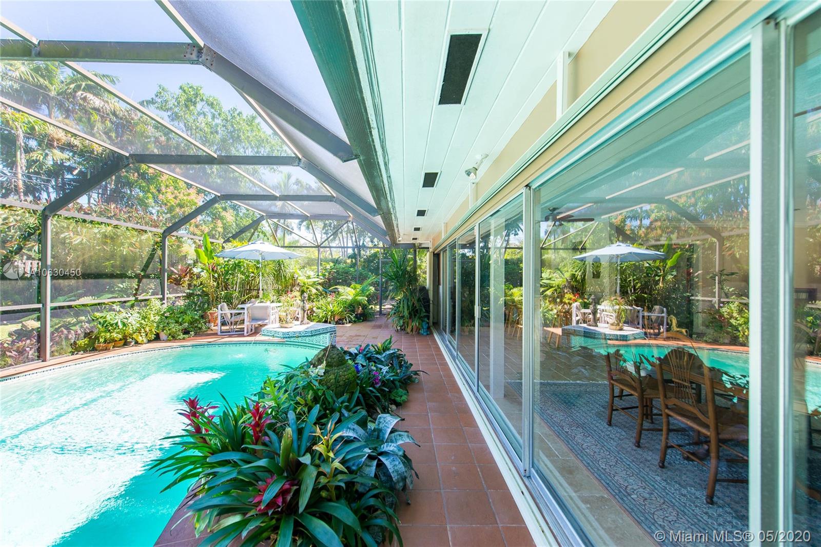 Live in wonderful Pinecrest in a lovingly cared for home. Enjoy the large open living room spaces which open to the beautiful pool via 6 sliding doors. This is a "home" which has a peaceful feeling and is in move in ready condition. The kitchen is open to the living areas and updated. Two of the 3 baths open to the pool patio. The very clean and well kept wood and Terrazo floors are beautiful. The home is situated on a large lot, 15,000 sq ft. New central air cond. year 2020. Roof is only 3 years old, 2 car garage & hurricane shutters protection. Interactive 3D video available