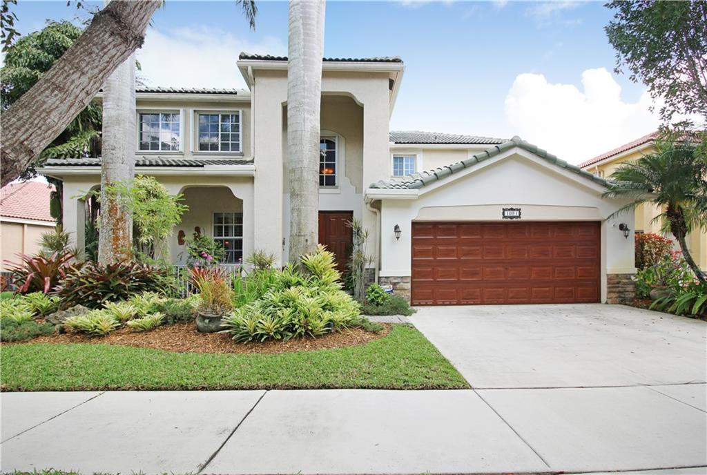 PRICE REDUCE TO SELL! Immaculate Gladiola model pool and waterfront home located in the desirable gated resort style community of Savanna. 1st floor recently painted and recessed lighting installed in living room. Home features 5 bedrooms, 4 full baths with 2 car garage, separate living room, dining room and family room. 1 bedroom and 1 full bath are located on the first floor and 4 Bedrooms located upstairs. Large kitchen has wood cabinets, GE Profile SS appliances, Corian counter-tops and breakfast nook. Step outside thru the french doors to view the sparkling pool and enjoy the peaceful lake views while relaxing and entertaining on your covered lanai with retractable awning. Home is tiled on the 1st floor and real wood floors located on stairs and 2nd floor. Laundry room on 1st floor.