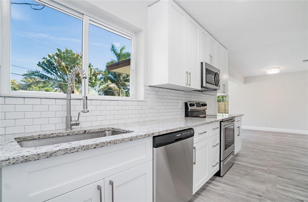 Beautifully Renovated home in the Lyons Park subdivision of East Pompano Beach near beaches, Intracoastal Waterway, boating and so much more!!! Hurricane Impact Windows!!! Open floor plan with new durable, waterproof, vinyl textured wood-plank flooring throughout home. All new solid wood kitchen cabinetry with granite counter tops, stainless steel under-mount sink, garbage disposal, stainless steel appliances and lighting. Newly renovated bathrooms with beautiful vanities, stone counter tops, tile floors, tile shower & bath areas, stone shower floor, fixtures and lighting. Spacious master quarters and bedrooms. Large laundry room conveniently near kitchen. New trim, doors and paint inside and out. New wood fence around perimeter with new gates. Move-In Ready!!!