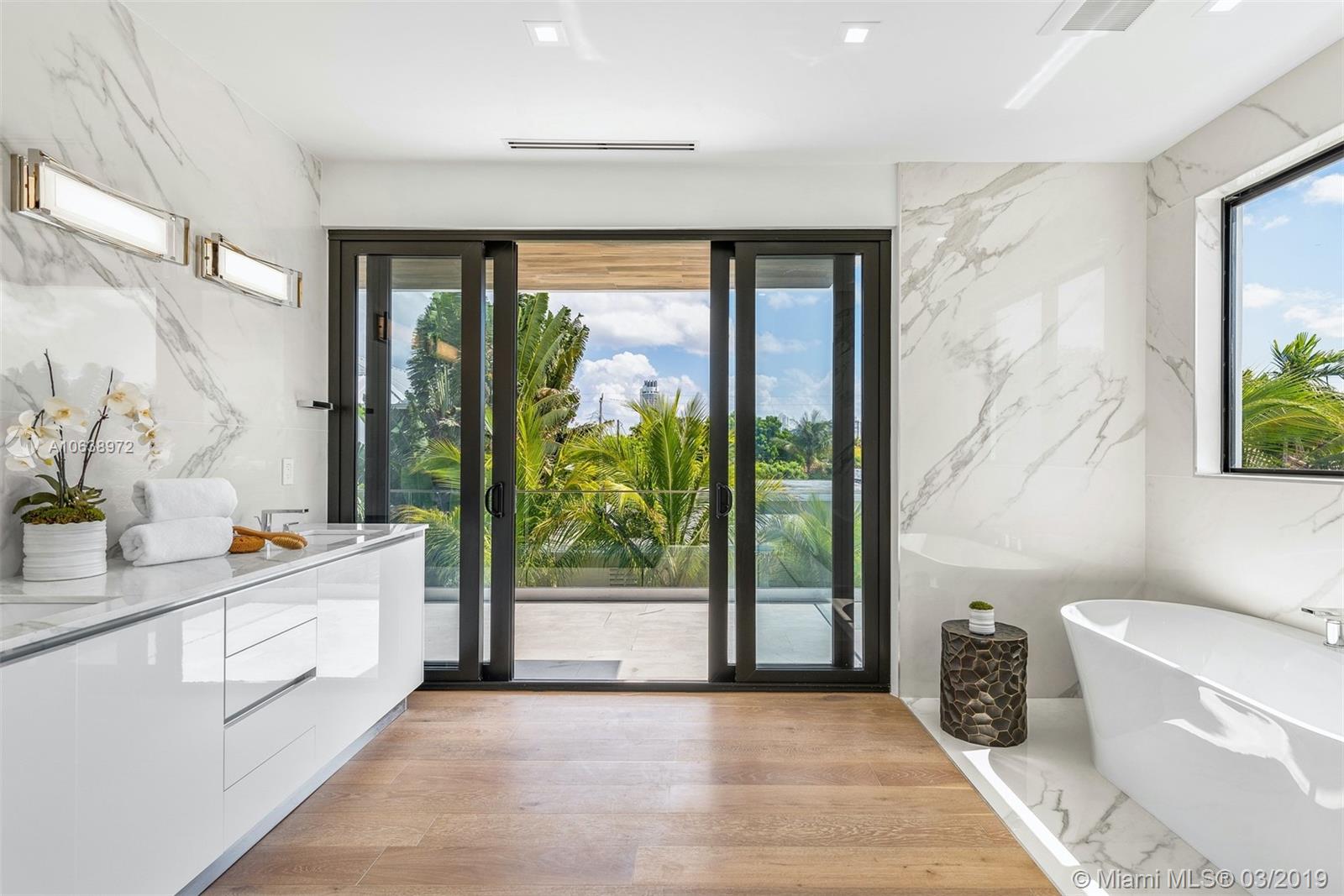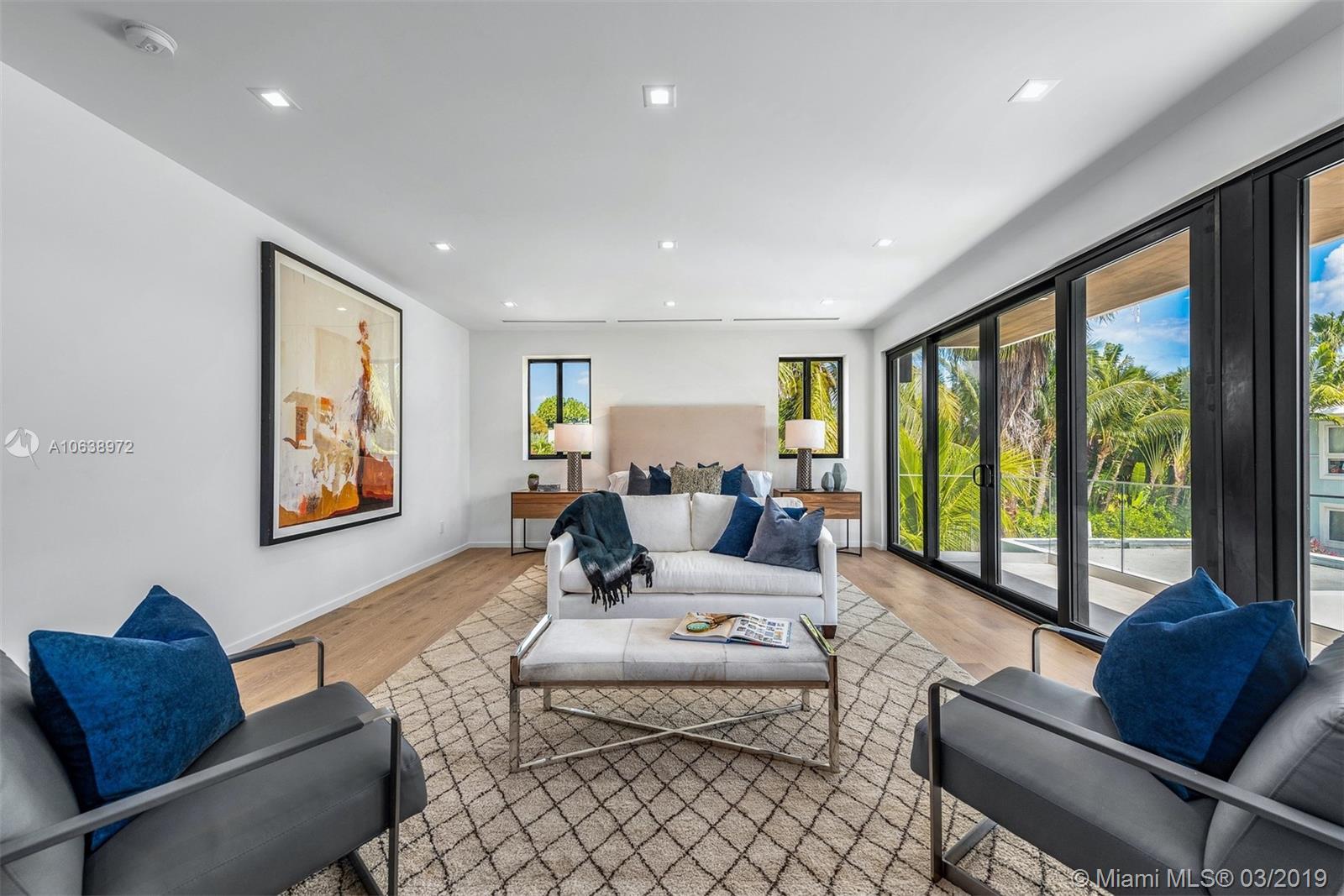 Be the first to live in this brand-new construction contemporary smart home, completed in 2019! Soaring ceilings & views of the sparkling pool greet you as you enter this 5BR/5 +2 BA modern masterpiece. This home boasts wide plank oak floors & an abundance of natural light throughout, creating a bright & tropical ambiance w/ oversized sliding hurricane impact doors which frame the open kitchen and living area. Chef’s kitchen features top of the line Sub Zero appliances & custom cabinetry. Relax in your master suite w/ custom walk-in closet & luxurious marble spa-like bathroom. The lushly landscaped backyard is an entertainer’s paradise w/ separate cabana area & cabana bathroom, large covered patio & pool. Live in your own private oasis, conveniently located in the heart of Miami Beach.