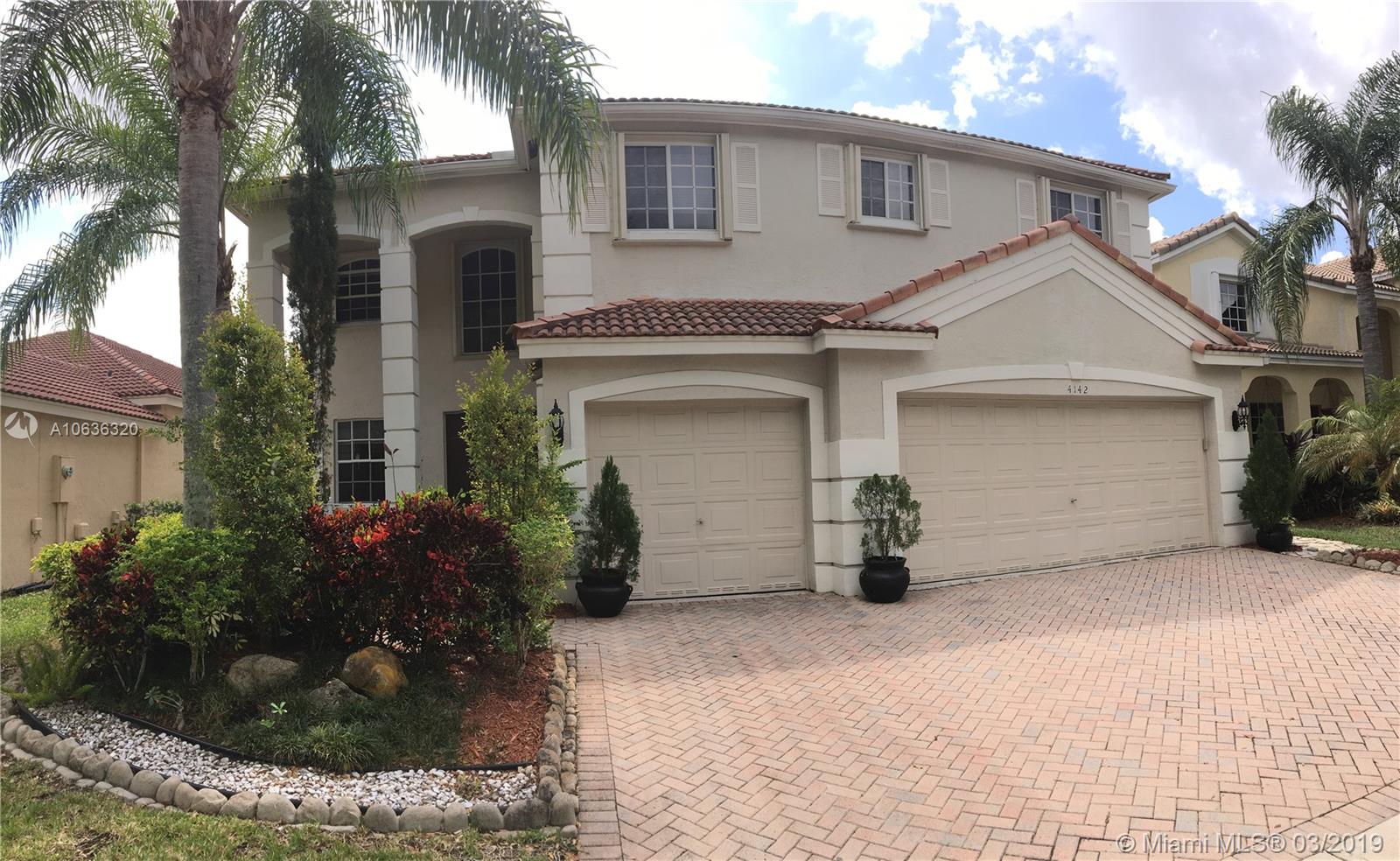 Beautiful 2 story single family home, in the gated community of The Ridges in the exclusive city of Weston. Features 6 bed 4 full bath, 3 car garage, fully equipped & remodeled kitchen with granite counter tops, island & SS appliances. Laundry room. One bedroom and full bath on the ground floor, this is a plus! Tile floors on first floor & laminated wood floors on stairs & second floor. Carpet in bedrooms. Large master bedroom with sitting room & walking closets. Great backyard with large covered stone balustrade patio & automatic retractable awning. Accordion shutter on second floor & panels on the 1st floor. Club House with pool, playground & more. A+ rated schools! Easy access to major highways, airports & shopping areas. A must see! This is a short sale and multiple offer situation.