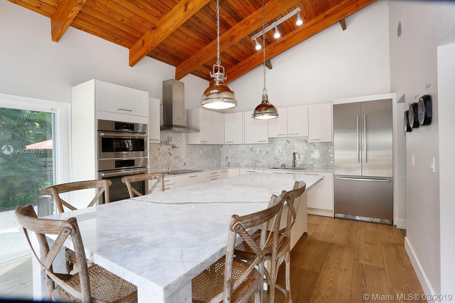 Lovely, magazine quality home in prime S.Grove neighborhood. Walk or bike to the village center’s galleries, boutiques, cafes and bayfront parks & marinas. Totally rebuilt & expanded in 2009 and a major renovation completed in 2017. Impact glass throughout. Light-filled, open living spaces with dramatic, vaulted wood-beamed ceilings & wood flooring. Stunning new custom kitchen features European cabinetry, stone countertops, Bosch appliances and expansive island w/ seating. Downstairs guest room and 2nd level: 3 BR’s + open loft area. Master suite features large walk-in closet and new spa-like bath w/ frameless glass shower. Enjoy year-round outdoor entertaining in the private garden w/ built-in grill & tranquil pool. Minutes to South Miami’s and Coral Gables world-class shopping & dining.