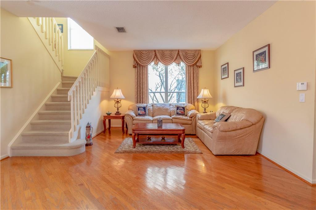 Impeccable former model home! Beautiful real hardwood floors on the lower level. Large kitchen with tons of cabinets, snack bar and breakfast area. All four bedrooms are on the upper level. Master features his and her upgraded California closets. Large master bath with two vanities, separate shower and large tub. Peaceful backyard on the lake, with a deck that is perfect for entertaining.