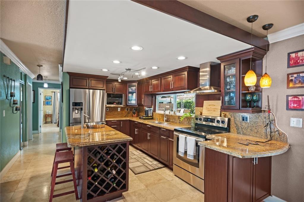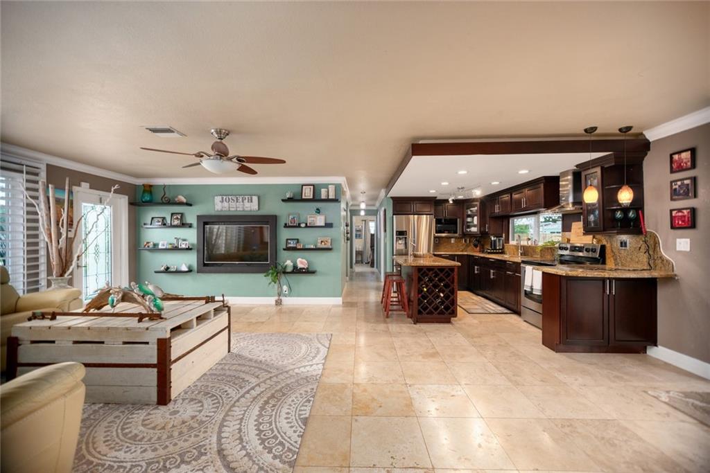 Come see this well-maintained home east of Federal Hwy. in desirable Pompano Beach! Three bedrooms, three baths plus a den for added bonus. Home is tastefully updated. Kitchen has granite countertops, recent appliances and open floor plan to living room. Finished laundry room under a/c. Enjoy entertaining in your large fenced in backyard including a screened patio and shed for extra storage. Impact windows; upgraded exterior/interior electrical panel; hardwired for security and smoke detection. Plenty of parking for your cars and boat! Close to boat ramps, beaches, golf course, shopping and restaurants.