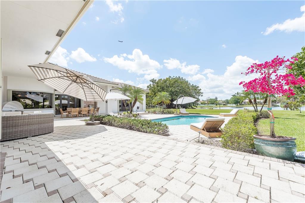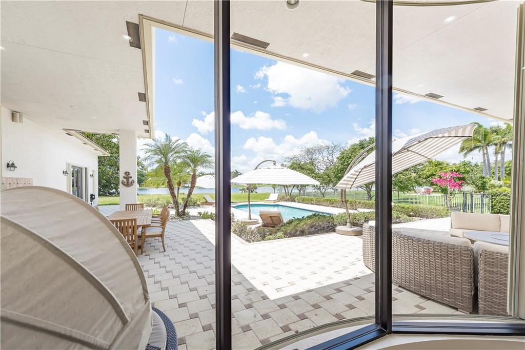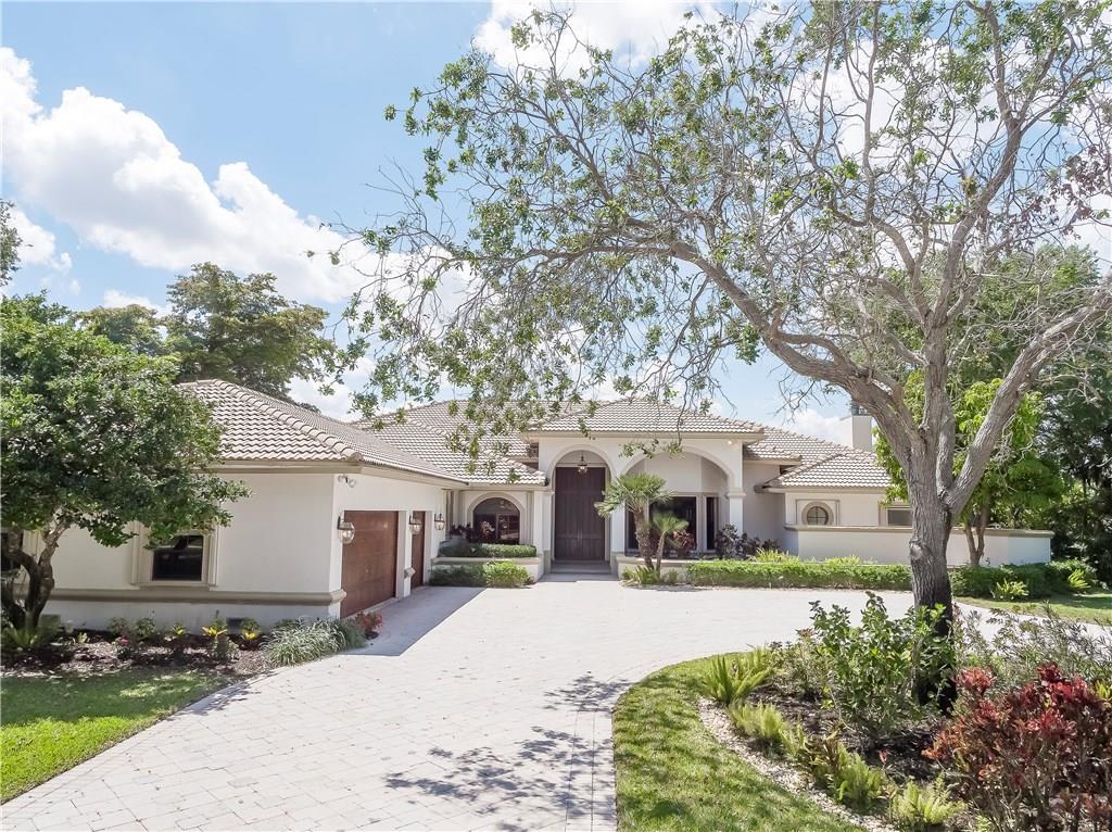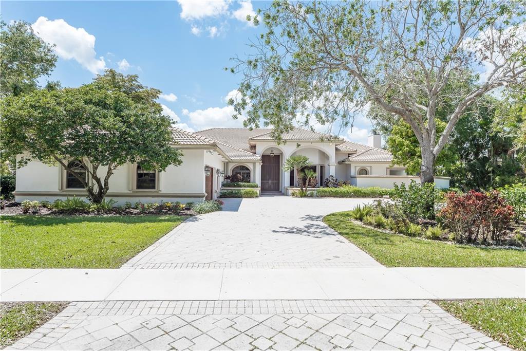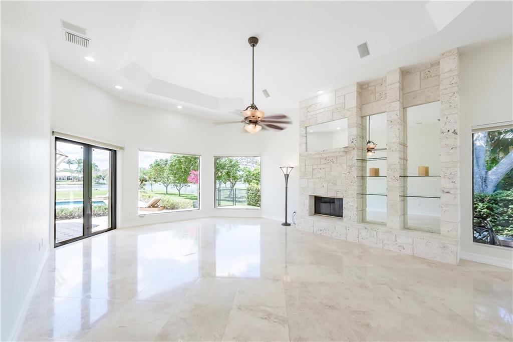 Estate living at its finest! One story waterfront residence in a private gated community! Enjoy seamless glass windows creating sun filled rooms to capture beautiful large pool & water views. Great for entertaining featuring a NEW gourmet chef's kitchen--Carrera Quartz, SubZero and Decor appliances, formal living room/dining room, large master suite with fireplace, grand media room IDEAL FOR PROFESSIONAL HOME THEATER, family room with fireplace, custom office with natural hard wood floors, safe room, temperature controlled three car garage, expansive covered lanai.