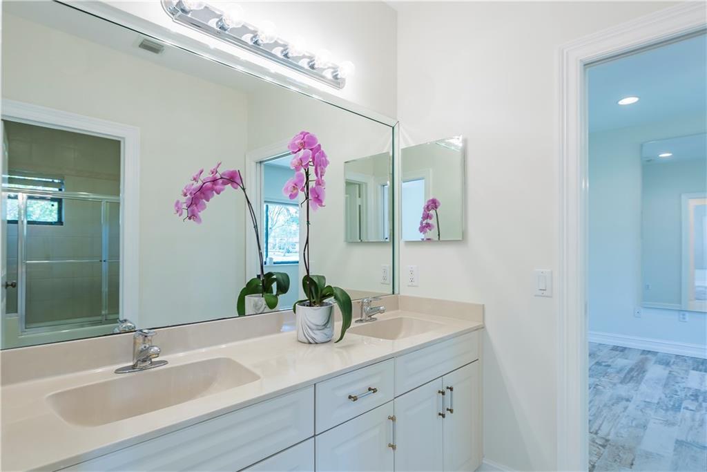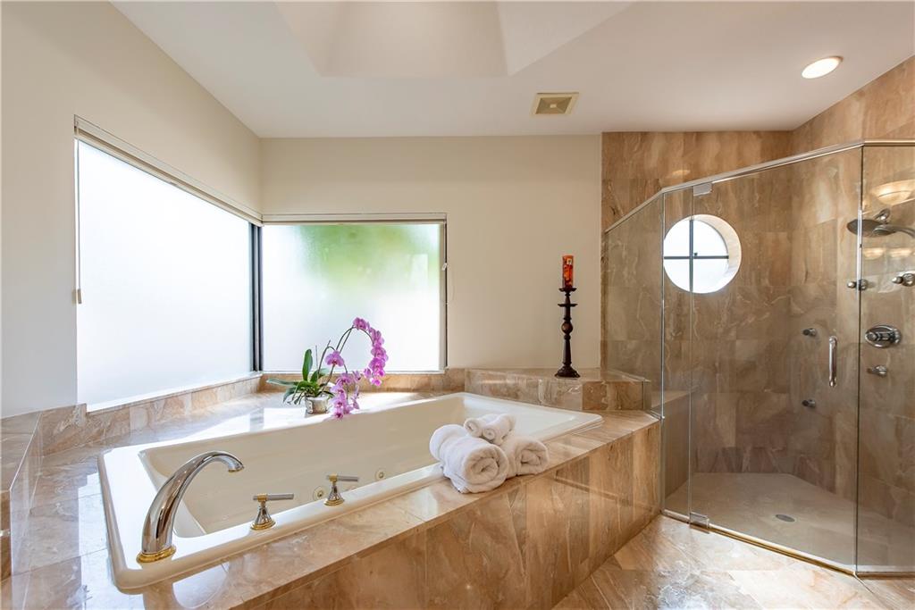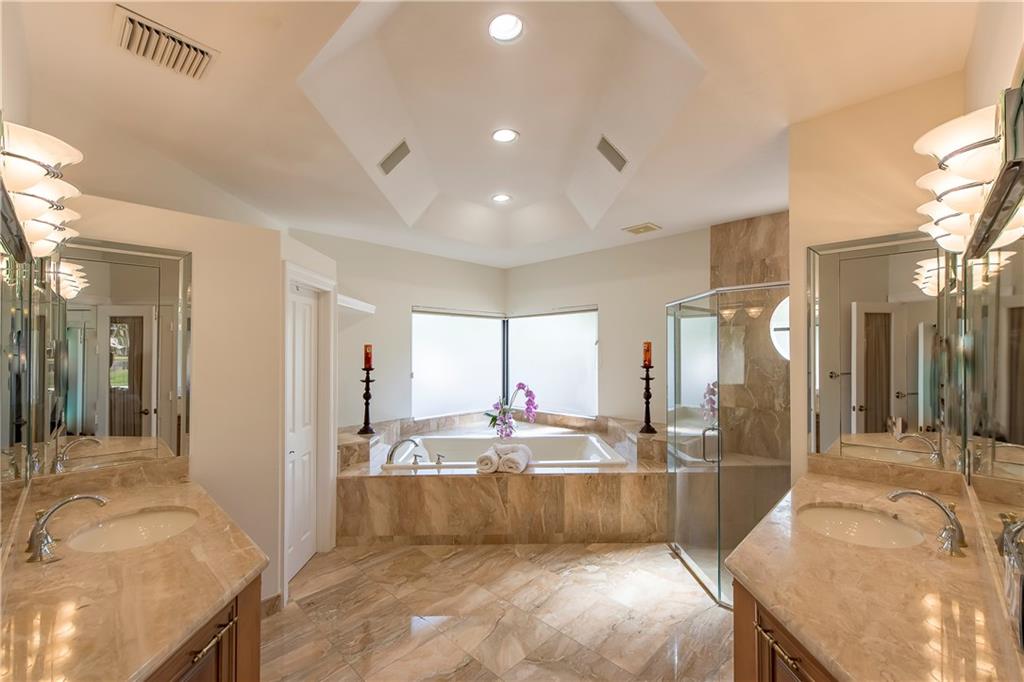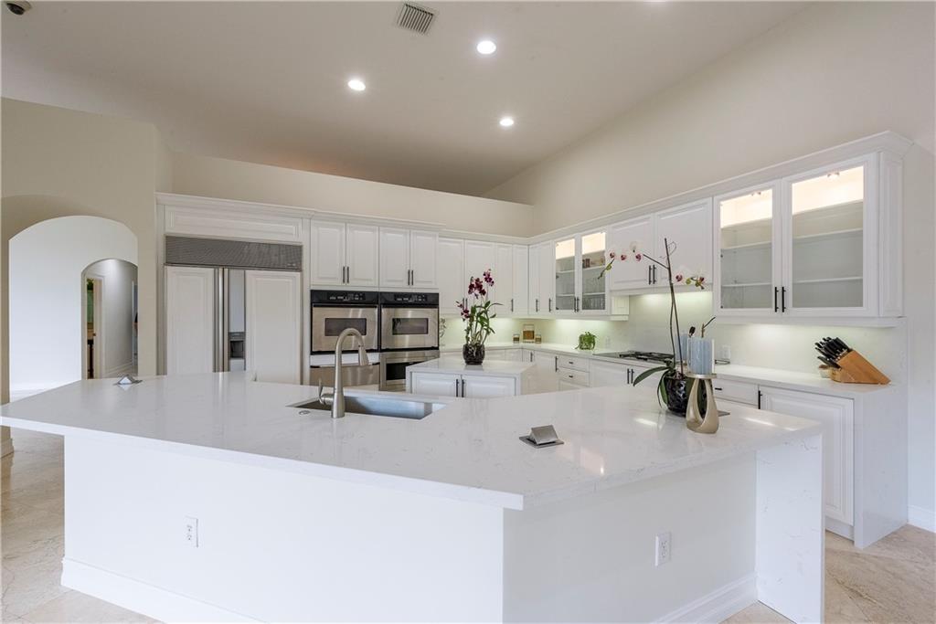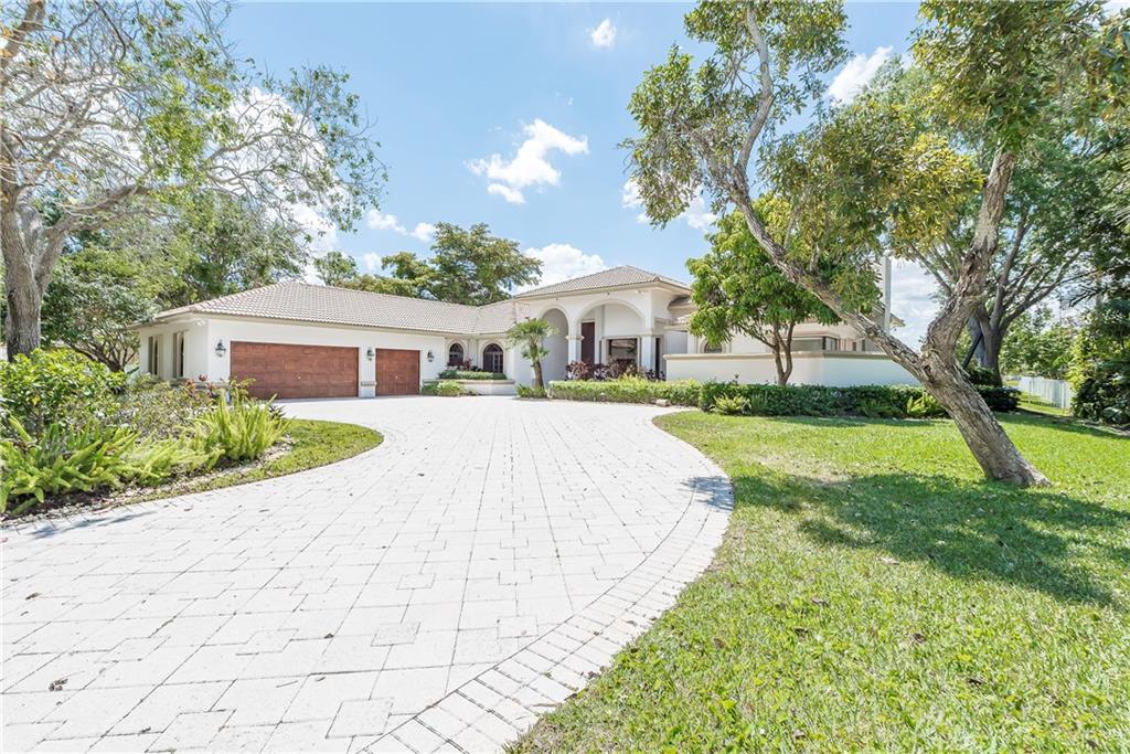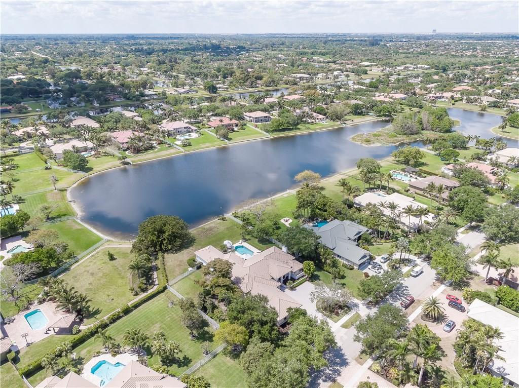 Estate living at its finest! One story waterfront residence in a private gated community! Enjoy seamless glass windows creating sun filled rooms to capture beautiful large pool & water views. Great for entertaining featuring a NEW gourmet chef's kitchen--Carrera Quartz, SubZero and Decor appliances, formal living room/dining room, large master suite with fireplace, grand media room IDEAL FOR PROFESSIONAL HOME THEATER, family room with fireplace, custom office with natural hard wood floors, safe room, temperature controlled three car garage, expansive covered lanai.