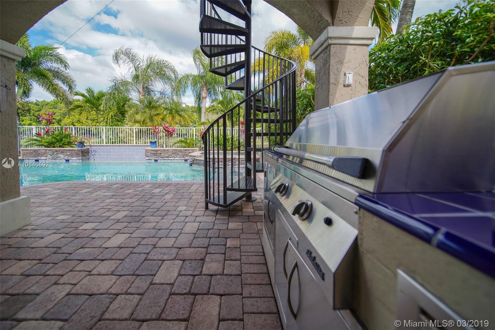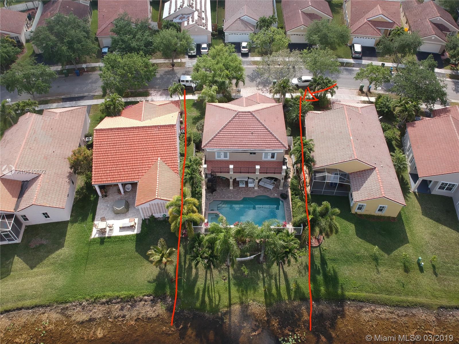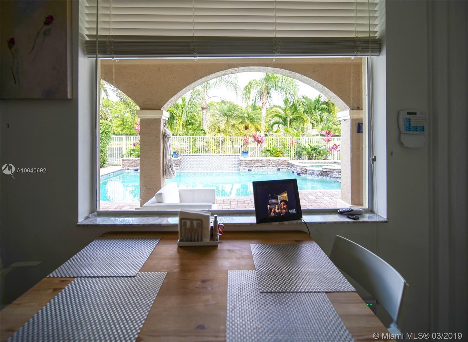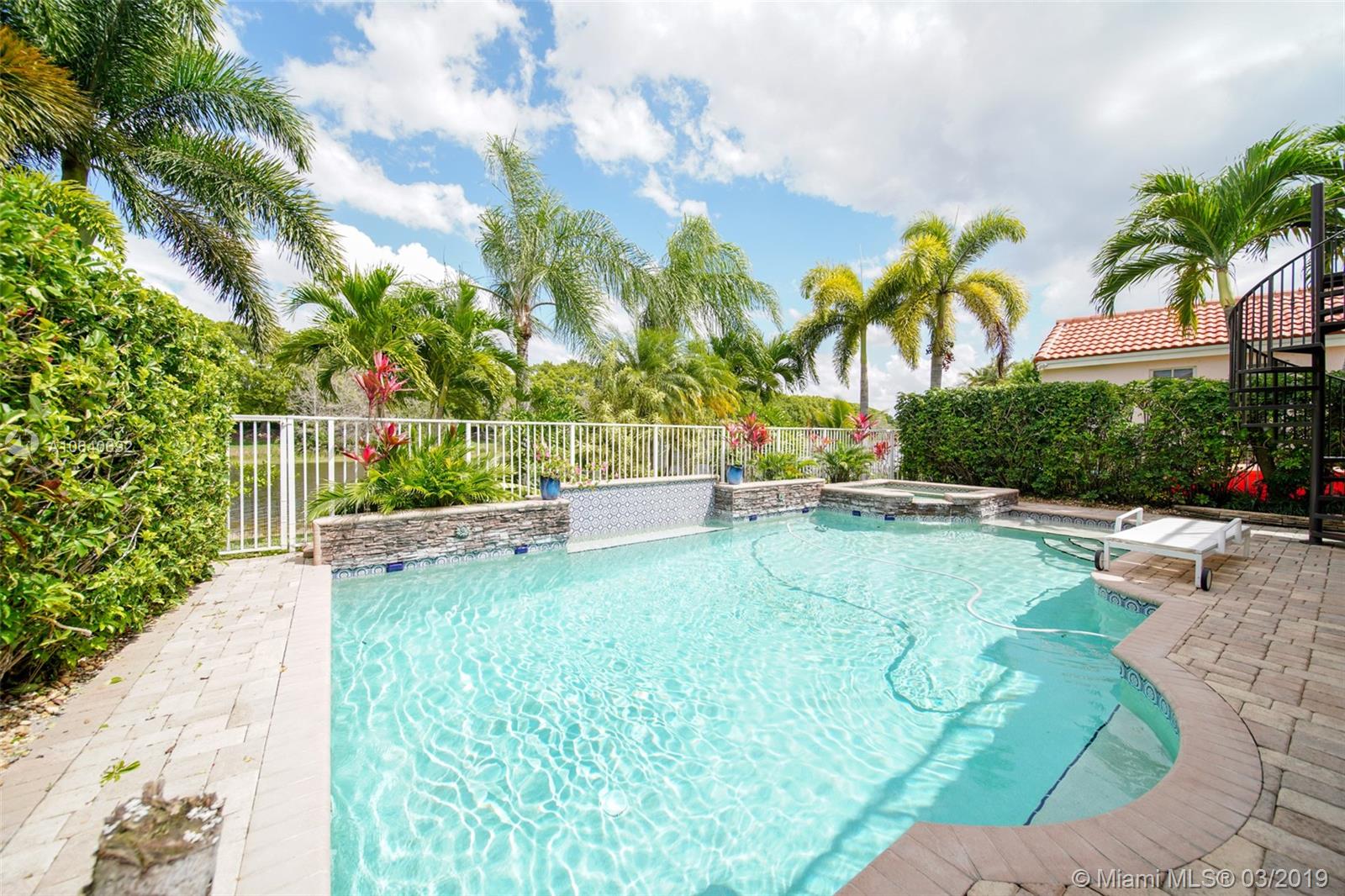 Beautiful 4 bedrooms and 2.5 bath single home, breathtaking landscape with lighting. Large heated salt water pool with water falls lights. Outdoor speakers and surround sound, built in BBQ grill, custom made wine cellar, tank-less water heater, new A/C, security system, sprinkler system, hurricane shutters & some impact windows, paved driveway, large balcony with lake views.