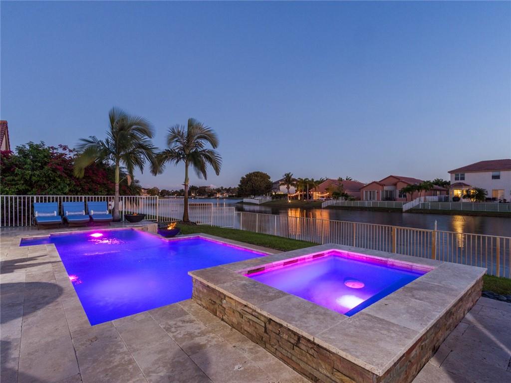 Pride Of Ownership prevails throughout this 4 Bedroom 3 Bath Pool Home with Lakefront Location. Finest of Appointments include: Hurricane Impact Windows & Doors. Marble flooring in foyer, hallways, Bathrooms, Kitchen & Family rooms. Bamboo flooring & Engineered Wood in Bedrooms. Custom Closets throughout with Electric Shades in Master Bedroom & Master Bath. Updated Eat-in Kitchen with Center Island plus Granite Countertops & Backsplash. Family Room with access to Outdoor Entertainment Area complete with Summer Kitchen, Heated Infinity Pool & Spa with beautiful Malibu lighting and Travertine Marbled Patio. Completely Fenced backyard. Beautifully Maintained