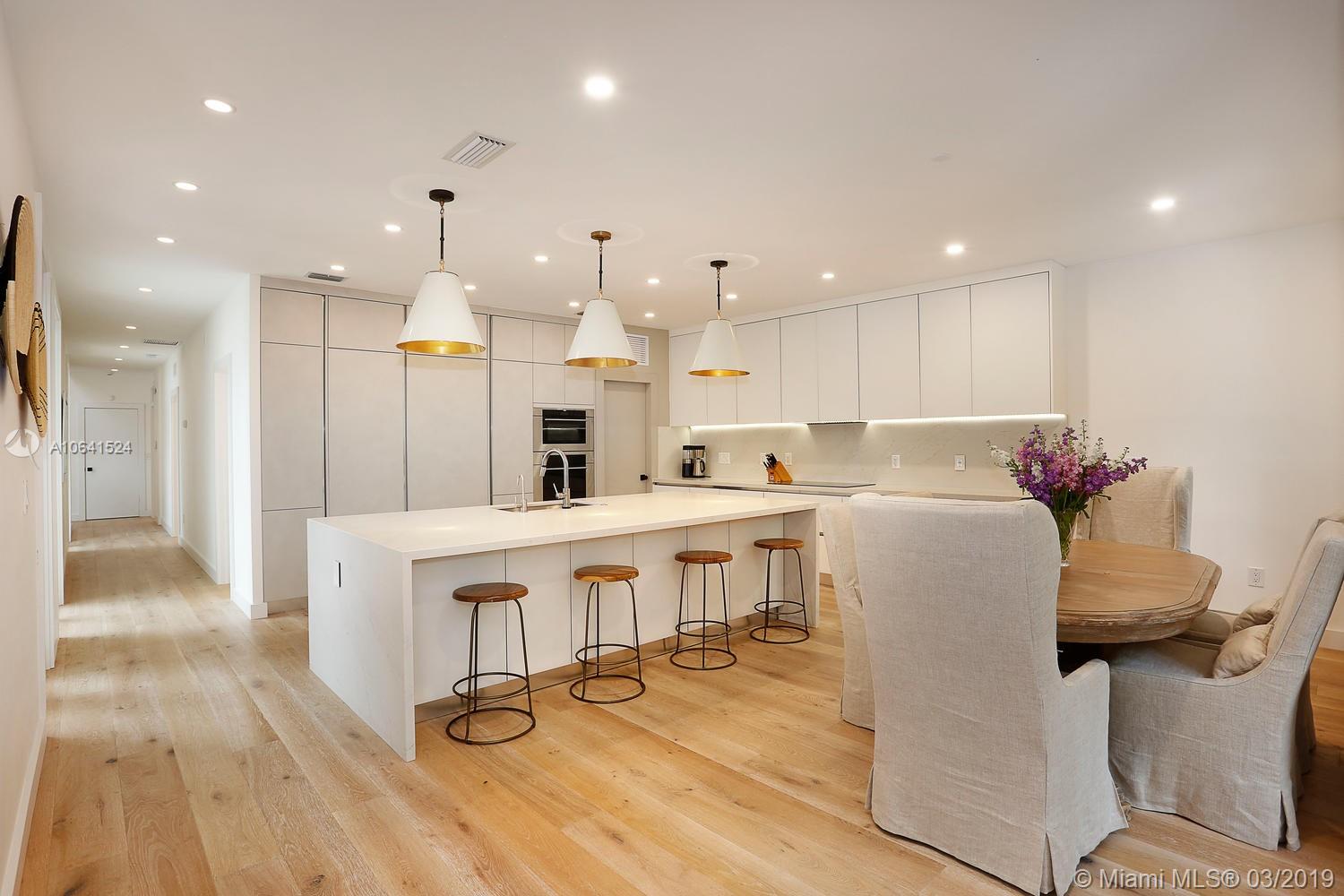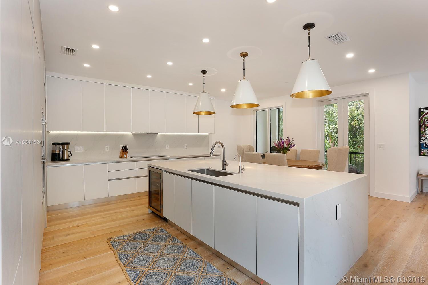 Stunning, magazine quality home on a quiet street in a prime S. Grove neighborhood. Major renovation just completed including wide-plank wood flooring & all impact glass. Light-filled living spaces w/ vaulted wood-beamed ceilings, a neutral color palette (ideal for art collections) and French doors throughout- overlooking the interior courtyard pool. Spectacular, open kitchen features Euro-style cabinetry, quartz countertops, high-end appliances & an oversized island w/ seating. 1st level guest suite and 2nd level: 3 BR’s w/ ensuite baths, including an expansive master suite w/ sitting area & spa-like master bath w/ glass enclosed rain shower. Walk to the Grove village’s galleries, boutiques, cafes & bayfront parks & marinas.