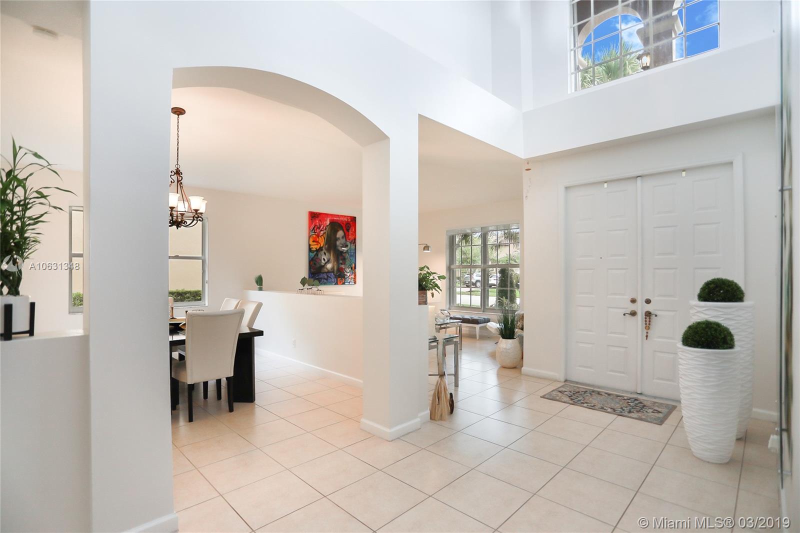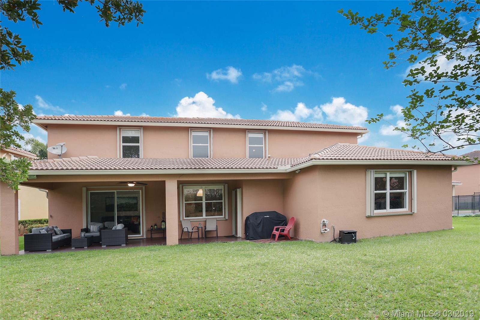 IMPECCABLE HOME LOCATED IN THE PRESTIGIOUS COMMUNITY OF ISLES AT WESTON. TWO-STORY, SPACIOUS 5 BEDROOM 3 AND A HALF BATHROOM, LARGE MASTER BEDROOM AND BATHROOM DOWNSTAIRS WITH CUSTOM DESIGNED WALK-IN CLOSETS. HIGH VAULTED CEILINGS, NEUTRAL 18" CERAMIC TILE FLOORS DOWNSTAIRS AND HIGH QUALITY LAMINATE WOOD FLOORS UPSTAIRS. LARGE OPEN KITCHEN WITH STAINLESS STEEL APPLIANCES. LAUNDRY ROOM WITH UTILITY SINK, LARGE BACKYARD WITH SPACIOUS COVERED PATIO PERFECT FOR ENTERTAINING, ACCORDION SHUTTERS, 2 NEW DUAL ZONE AC UNITS, 3- CAR GARAGE. COMMUNITY OFFERS GUARD GATED, 24/7 SECURITY , BASIC CABLE, INTERNET & ALARM MONITORING. CLUBHOUSE WITH GYM AND 2 POOLS, VOLLEYBALL AND BASKETBALL COURT, PLAYGROUND AND MORE. A+ RATED SCHOOLS, ABSOLUTELY YOUR DREAM HOME. $10,000 CREDIT FOR KITCHEN REMODELING.