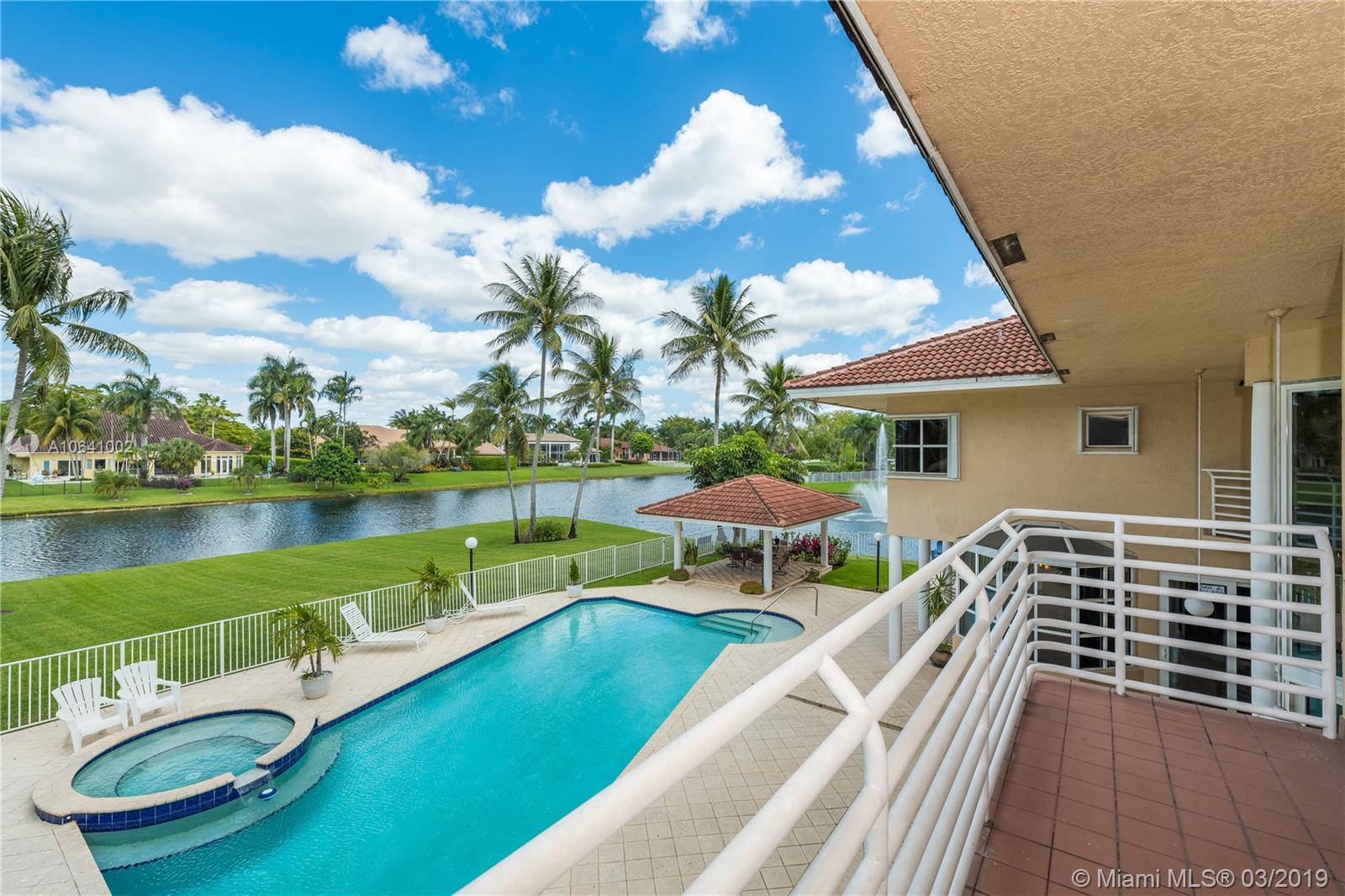 The Hamlet is a private gated boutique community of 35 custom homes. This one is on a point lot with panoramic water and fountain views from 2 sides. 6 bedrooms plus 2 bonus rooms (currently office and game room) 2 rooms with full baths on first floor plus guest bath. Two large master suites upstairs. Beautiful new kitchen with all the extras. Marble and bamboo flooring. Soaring ceilings and abundant IMPACT (brand new) windows for natural lighting, safety and spectacular views. Enjoy the Florida lifestyle with sparkling pool/spa, covered patio and Gazebo. This home is an entertainers DREAM. Roof 3.5 years, Accordion shutters or impact for all windows and sliders. 3 car garage with unique dual entries with circular drive. Terrific Davie schools. $20,000 floor credit with accepted offer.