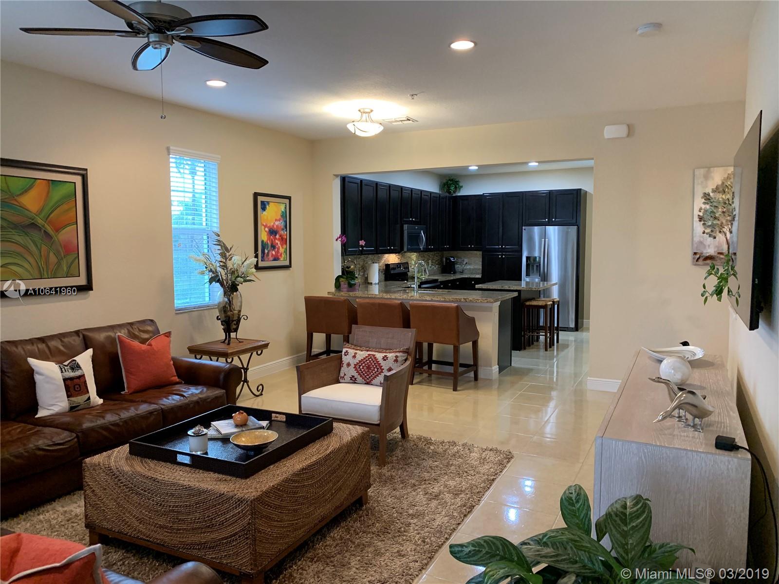 Don't miss out this beautiful tri level townhouse with a 2 car garage, granite countertops, stainless steel appliances, dark wood cabinets, tile on first and second level and carpet on 3rd level. At least 1 bedroom and full bath inside on the first floor. Master Bedroom and 2 Bedroom at 3rd level spacious and very bright. Great Location, just next to New Miramar Towncenter.