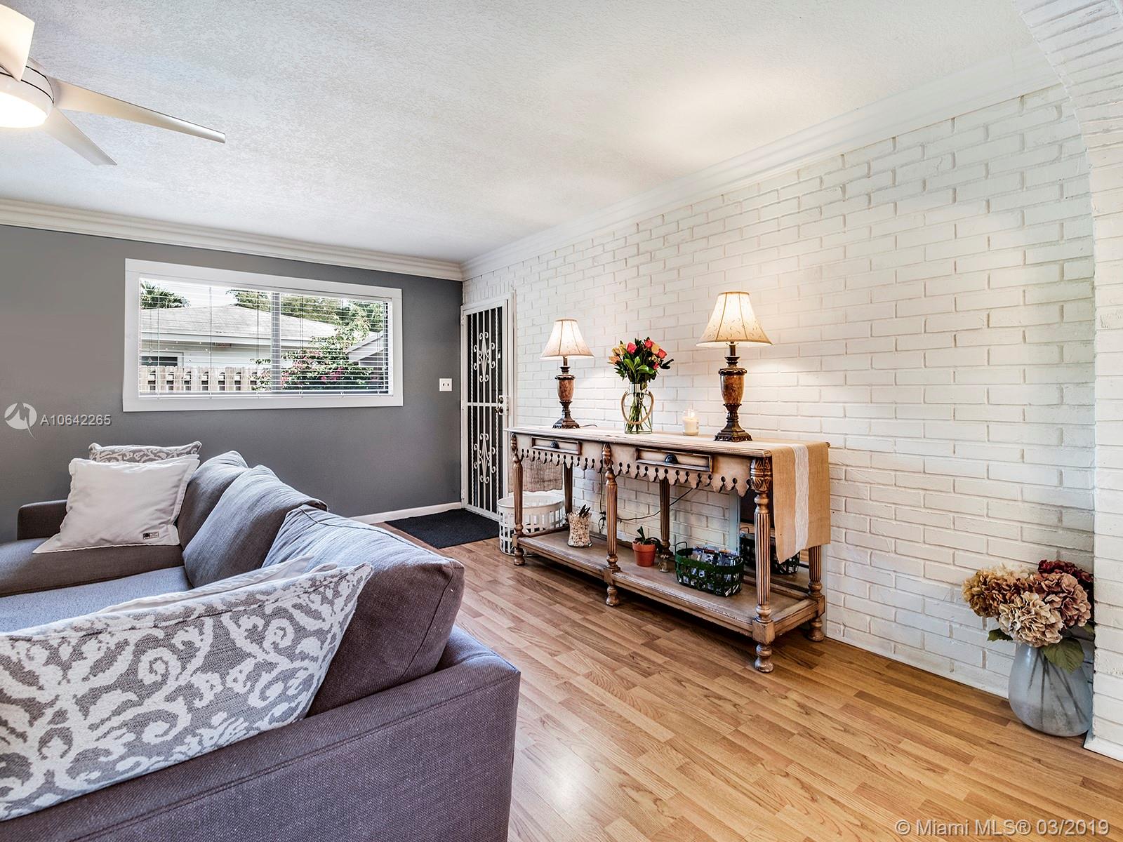 Best Buy in "Lawn Acres"! Quiet 2/2 on a tree lined street. Home features, new roof in 2018, new front door 2018, brick wood burning fireplace in living room, upgraded kitchen with new GE refrigerator in 2018. Home features white brick archway separating family room from dining room, termite contract transferrable and maintained regularly, new energy efficient windows with hurricane shutters and newer water heater. Easy access to a separate laundry room just off kitchen with plenty of storage. Upgraded master bathroom, new cabinetry, toilet and Carrara marble. Back yard fully fenced and equipped with sprinkler system. Paved driveway this home is full of character and charm... a Must See! Seller is paying at closing for a new ductless split AC system for the home too!!