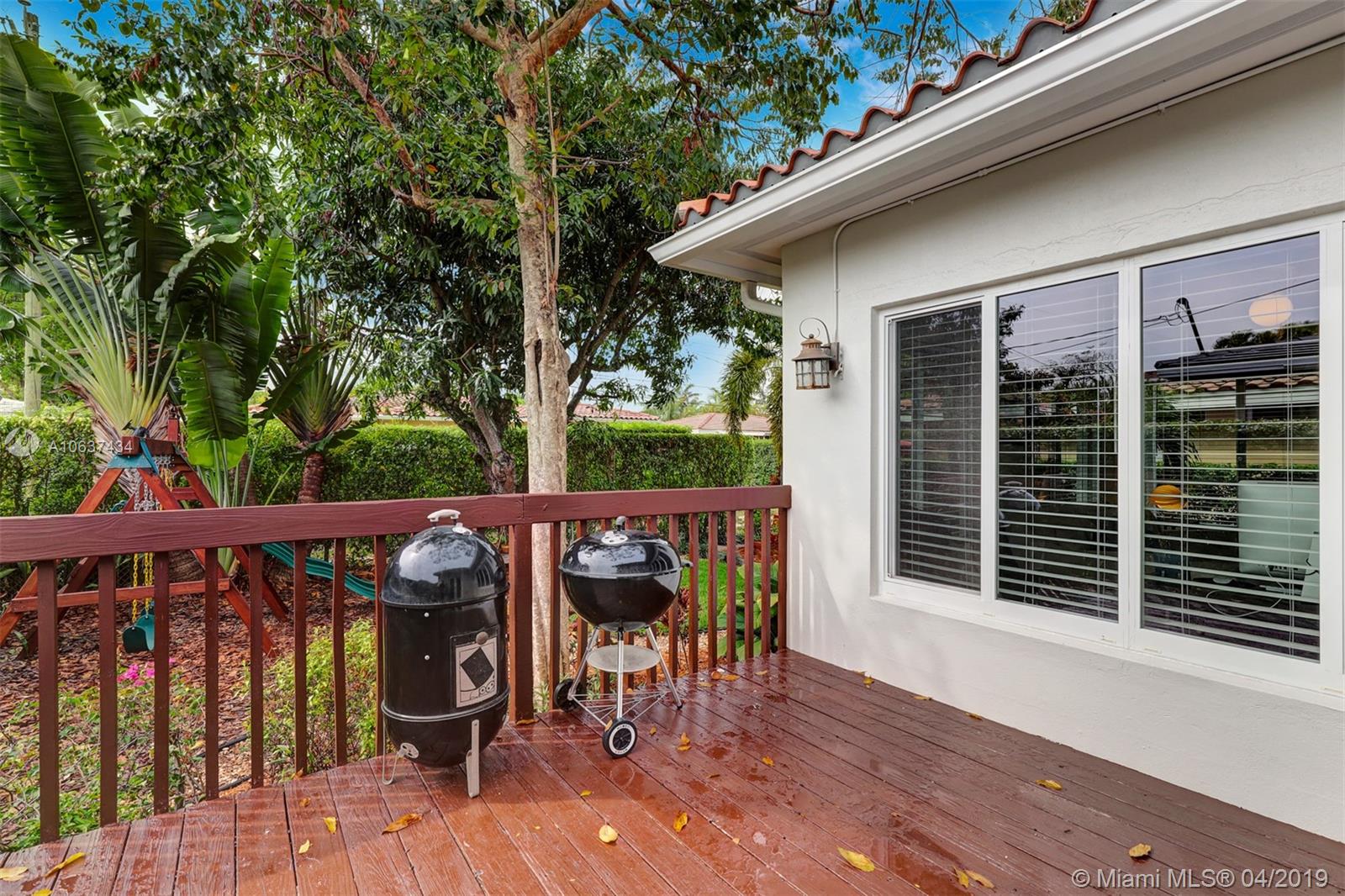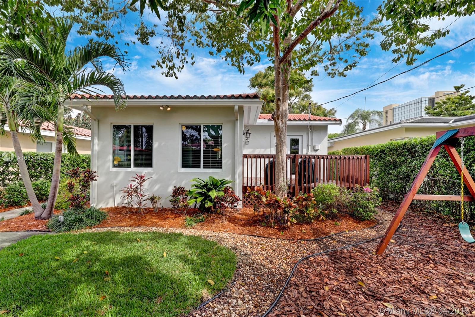 Come home to this beautiful, remodeled Coral Gables home 4 blocks from Miracle Mile's trendy dining, shopping and entertainment. Urban oasis with a lush, private backyard for entertaining. Mature trees provide shade throughout the year. Stunning original wood flooring, remodeled kitchen and bathroom, and top of the line PGT impact windows with low-e glass to block heat. Bright and airy Florida Room. Connected to municipal sewer( no Septic tank). Mapped to excellent public schools. Please look at conceptual plans under attachments which could be further developed to get a permit.