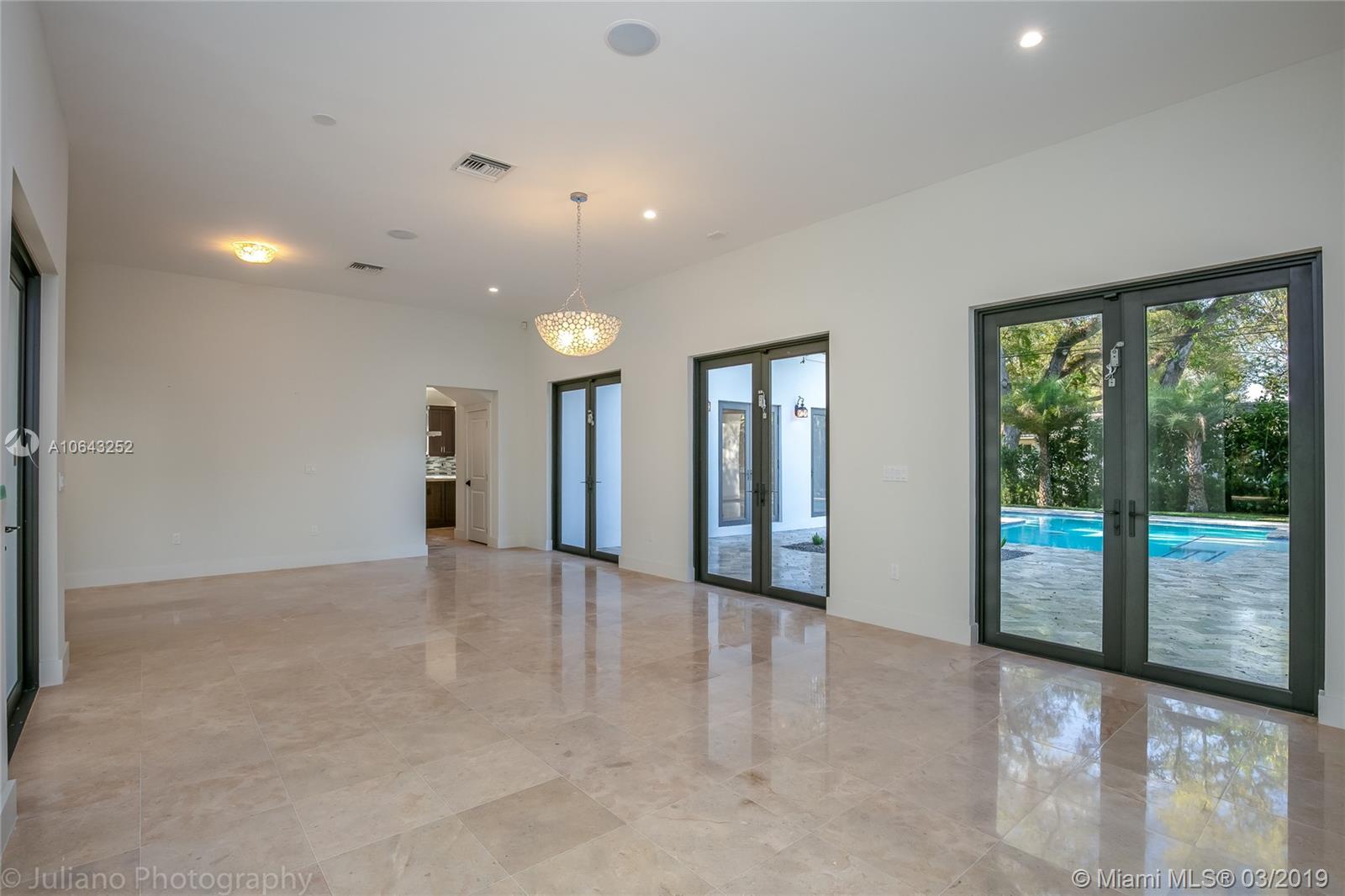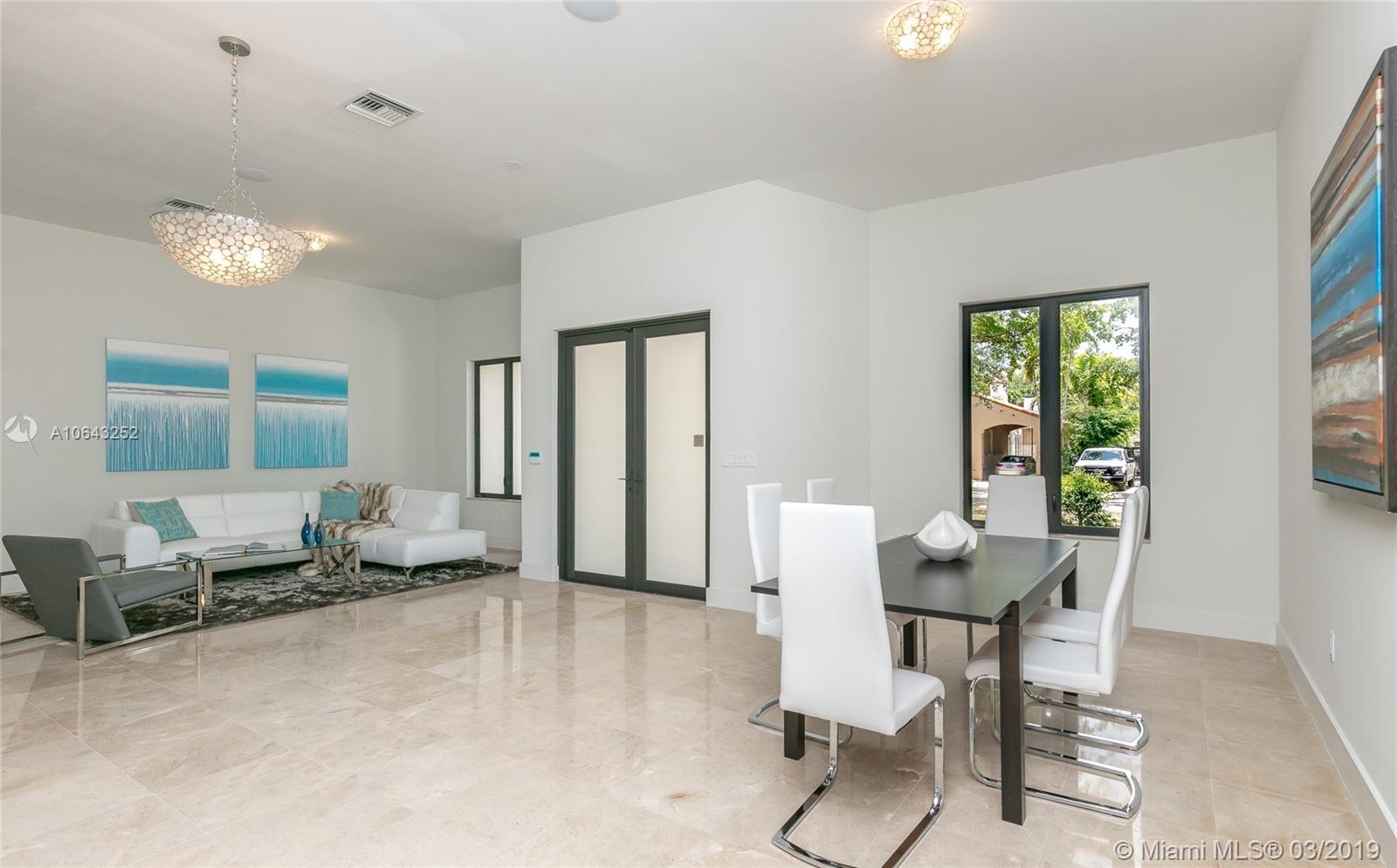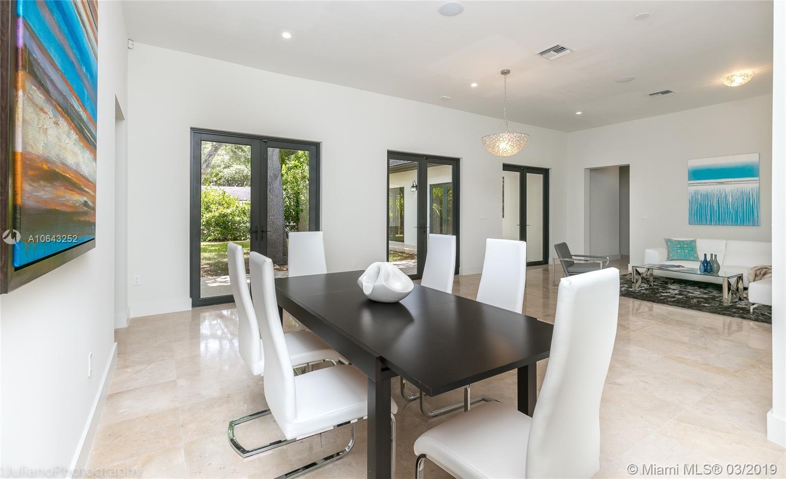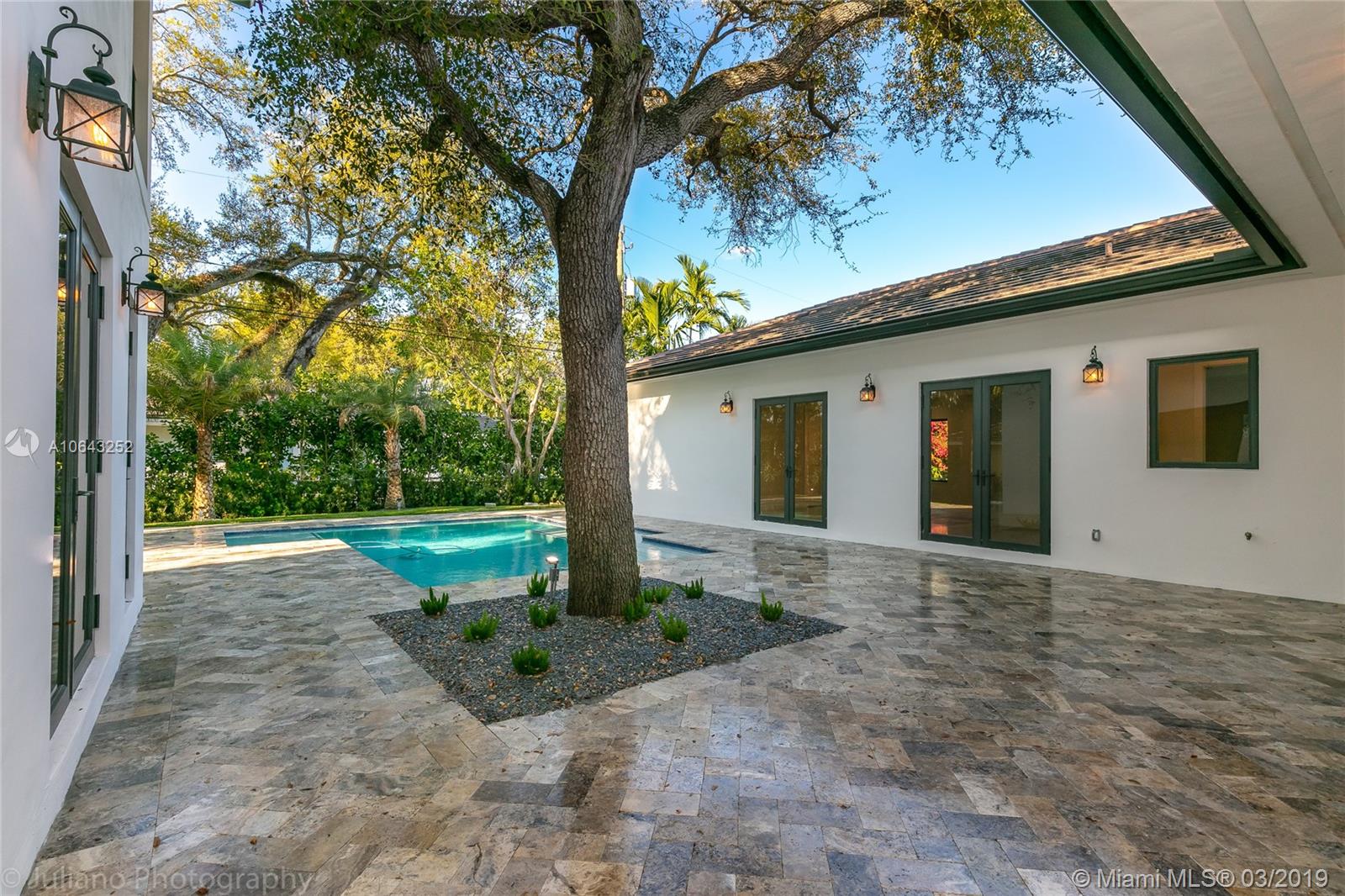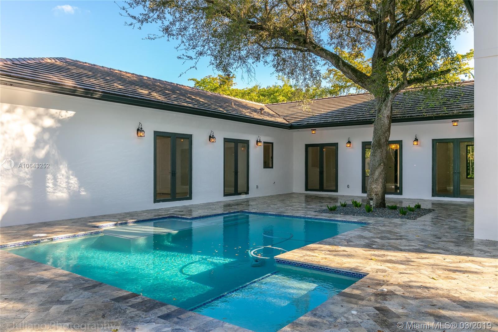 Must see gem in beautiful Coral Gables, this stunning recently built home near the Biltmore has 5 bedrooms and 5 baths with kitchen opening up to family room and wine cellar. Kitchen features all Thermador appliances with cook-top on granite island that accommodate family seating with 11-foot ceiling in common areas and impact windows & doors throughout. Entertainer's dream with its own recreation room on second floor with balcony and full bath. Master suite includes a beautiful tub, shower, and large walk-in closet. Brand new pool with large embedded sun deck and great terrace for entertaining and family gatherings. Wired for smart house capabilities, 2-car garage and outdoor storage closet. Located off Alhambra circle on beautiful dead-end street.