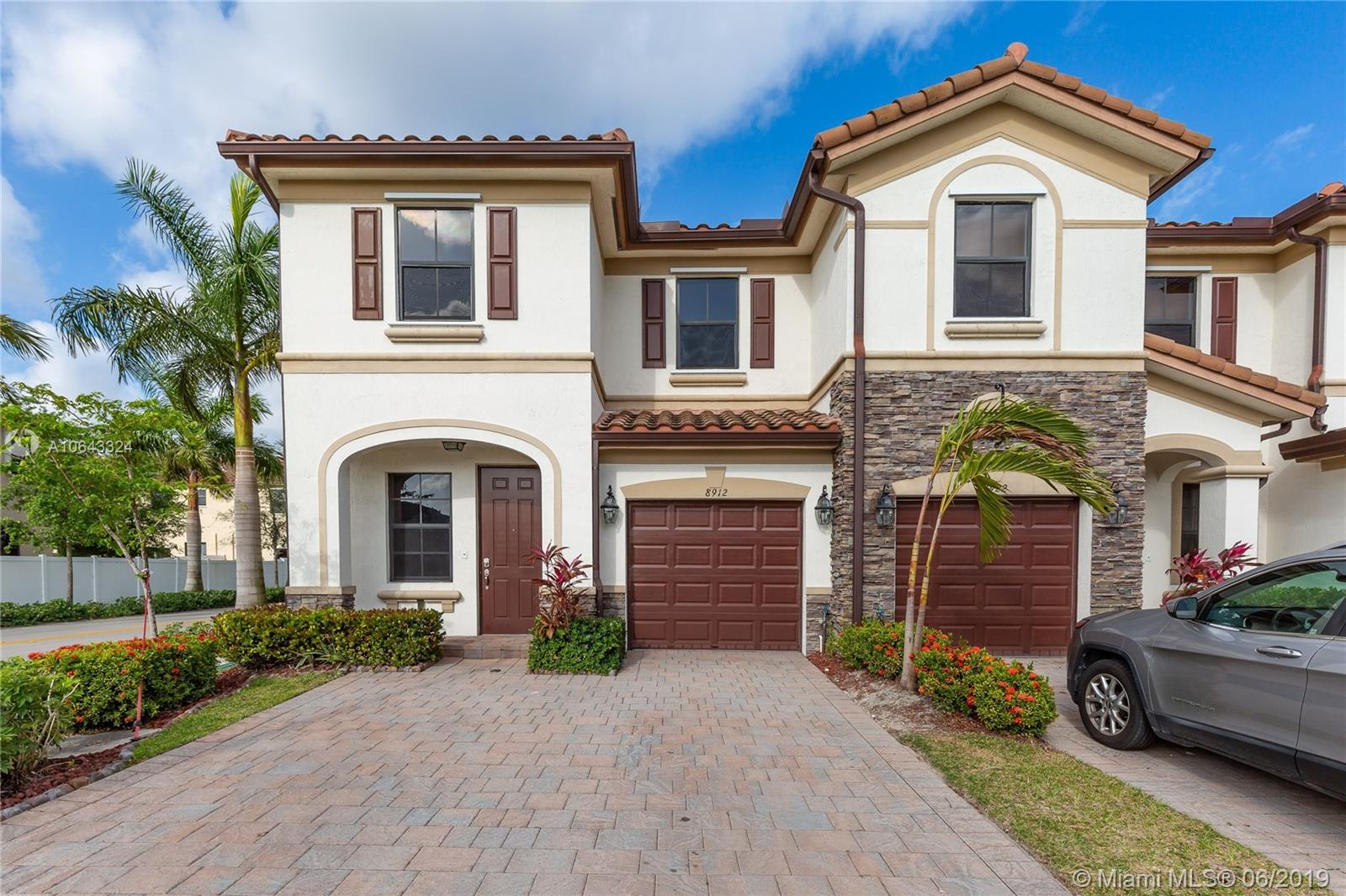 PRICE REDUCED FOR QUICK SALE. Spacious Townhome on a corner lot located in the gated community of Aragon. Purchased new in 2014 this home has a great floor plan with large living area, 4 bedroom, 3 full bathrooms model with plenty of closet space. Upgraded kitchen features solid wood cabinets, granite countertops, and SS appliances. Very desirable corner lot with large backyard. Perfect for children, entertaining and BBQ. 1 car garage plus 2 designated parking spaces with plenty of visitor parking. Low HOA fee includes clubhouse amenities, pool and spa, kid’s playground, 24/7 gated security and more. Centrally located within a few miles of Doral, Miramar, & Miami Lakes. Owner occupied, very well maintained, and easy to show.