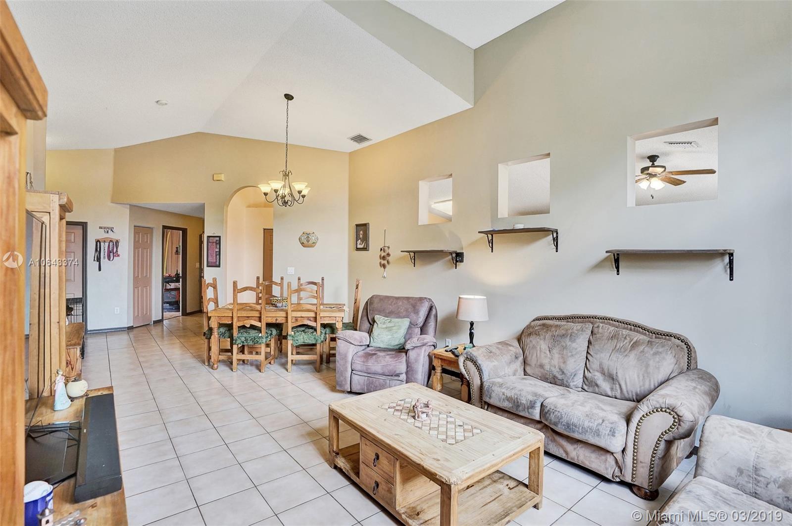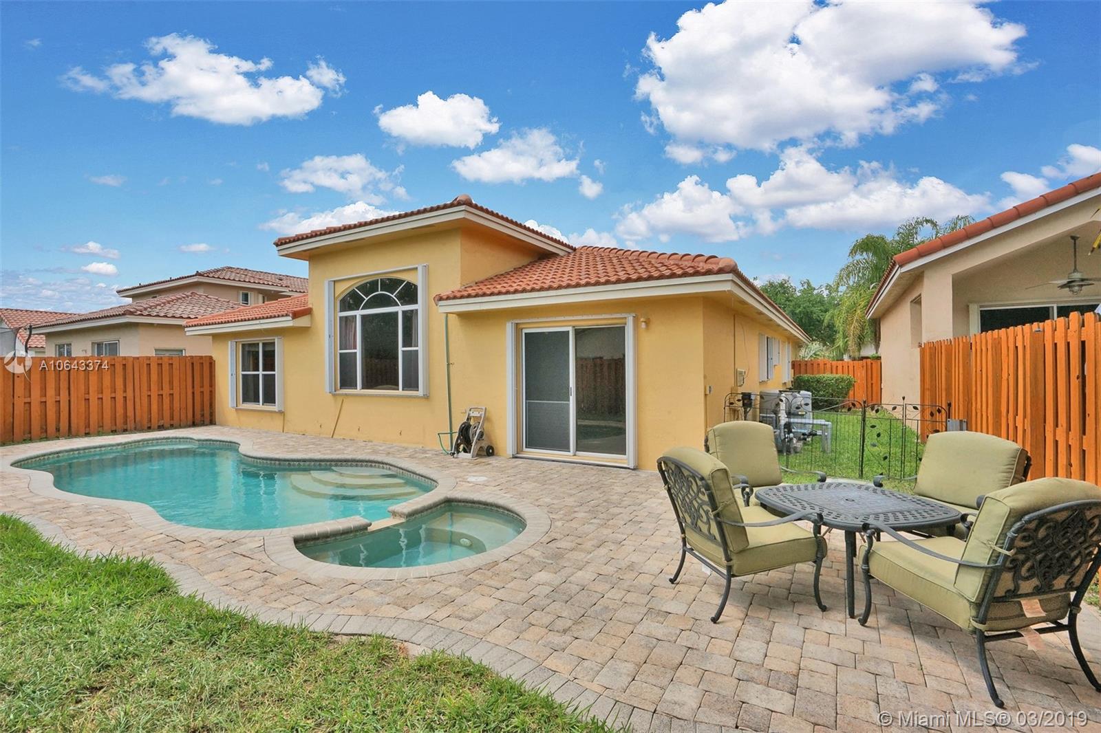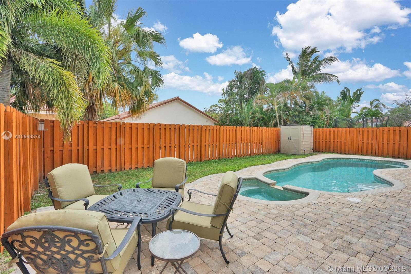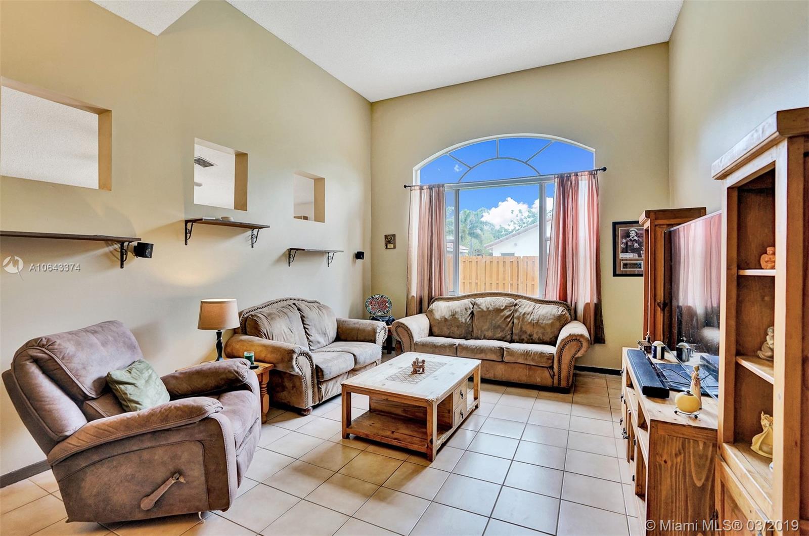 Hard to find, one story home with free-form saltwater pool in the West Davie area. New roof and Accordion Shutters throughout the entire house. High vaulted ceiling, separate living areas. The kitchen and bathrooms have wood cabinets and granite countertops. Oversized master bedroom with en-suite bathroom featuring a roman tub and separate stand-up shower, walk-in closets and dual vanities. The ample second bedroom also boasts a walk-in closet. The sparkling heated pool with an inviting spa. The nice size patio is completely fenced. Recently painted outside. Easy access to shopping centers and highways. Savings with Copperflect insulation and solar panel water heater. Pavers for the back patio and a shed that will remain with the house. Very Low HOA.