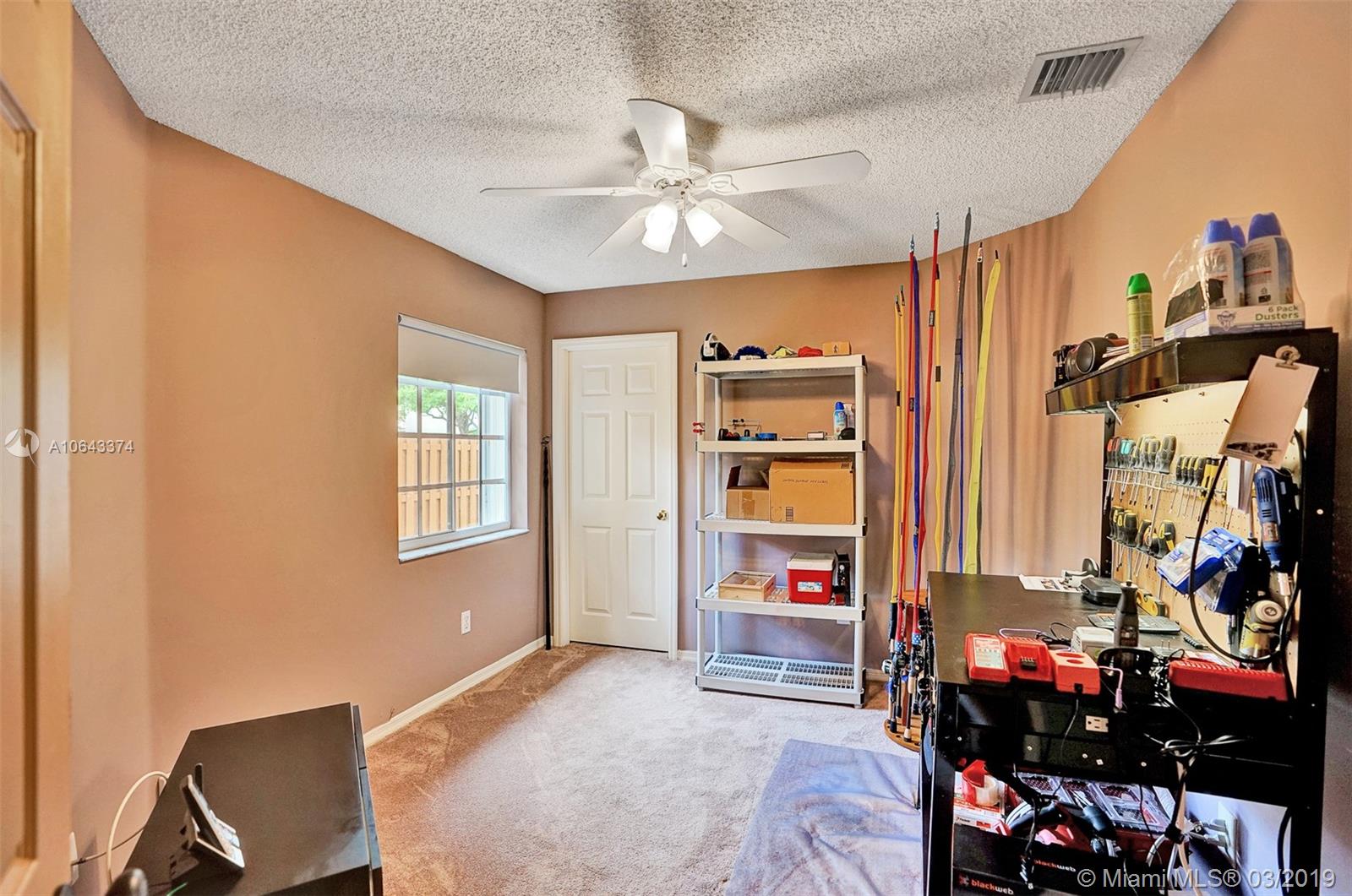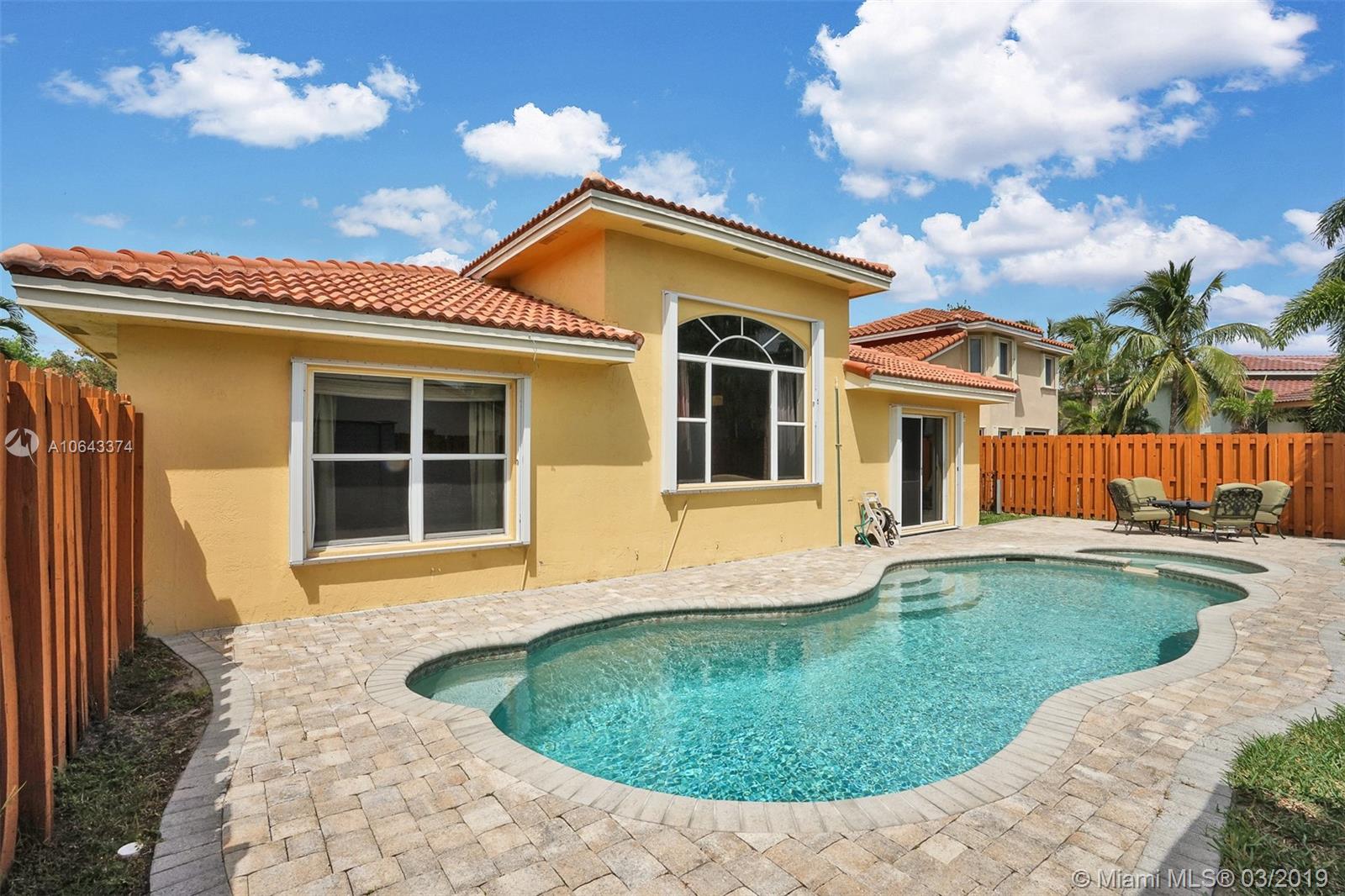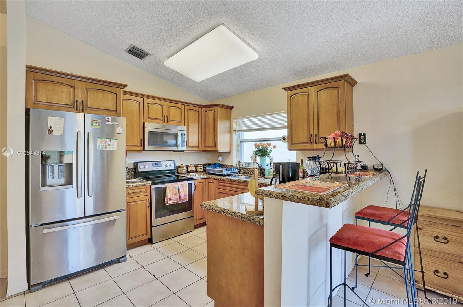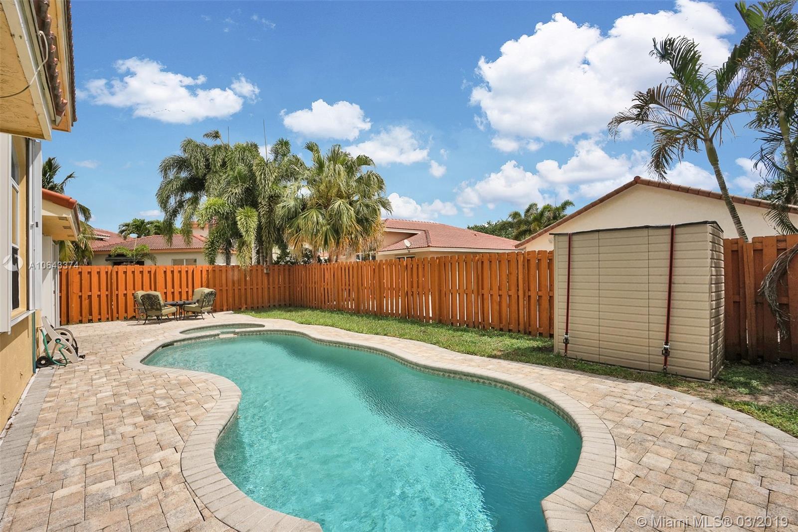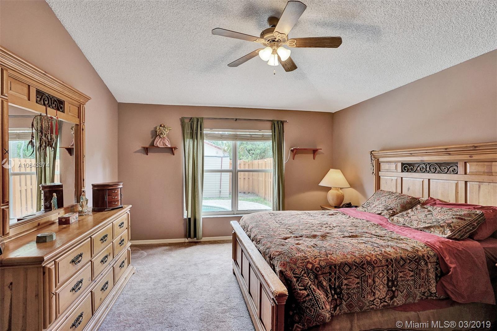 Hard to find, one story home with free-form saltwater pool in the West Davie area. New roof and Accordion Shutters throughout the entire house. High vaulted ceiling, separate living areas. The kitchen and bathrooms have wood cabinets and granite countertops. Oversized master bedroom with en-suite bathroom featuring a roman tub and separate stand-up shower, walk-in closets and dual vanities. The ample second bedroom also boasts a walk-in closet. The sparkling heated pool with an inviting spa. The nice size patio is completely fenced. Recently painted outside. Easy access to shopping centers and highways. Savings with Copperflect insulation and solar panel water heater. Pavers for the back patio and a shed that will remain with the house. Very Low HOA.