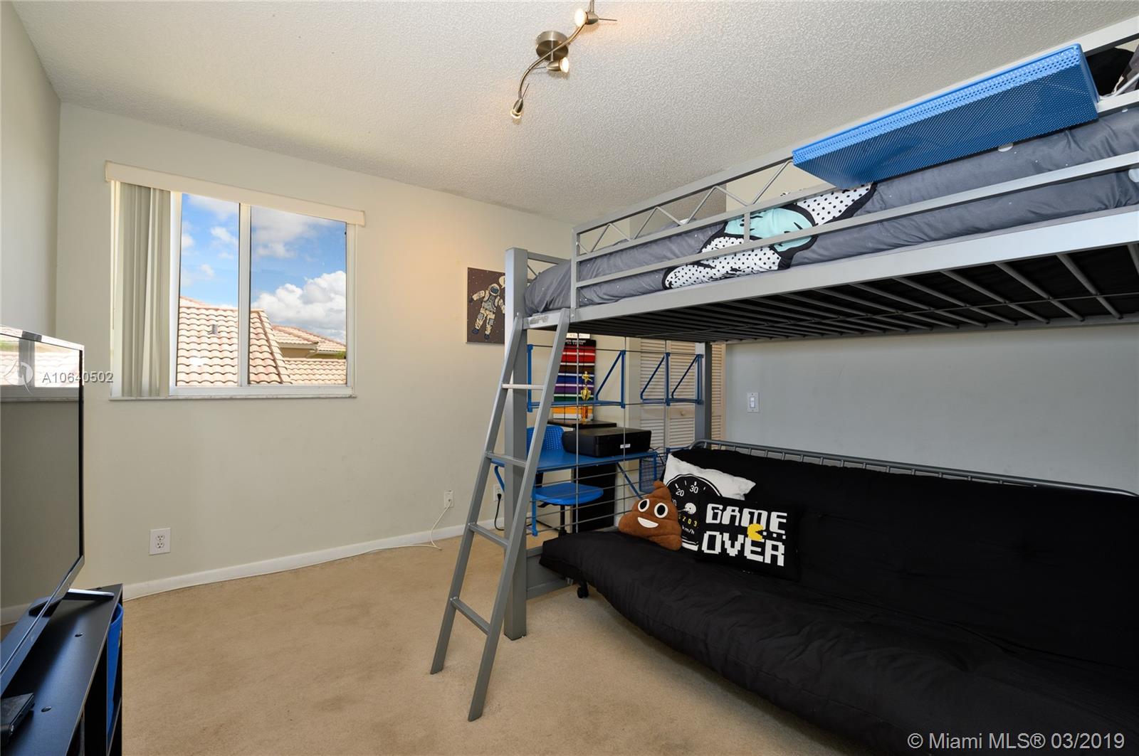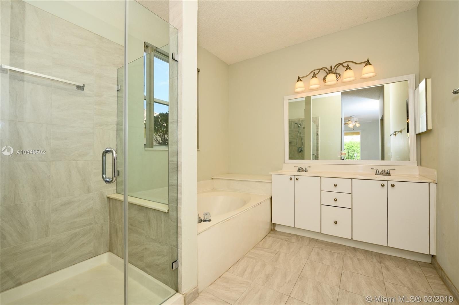 The lowest priced true 5 bedroom 3.5 bath in the park like gorgeous City of Weston Fl. Children friendly 24-hour guard gated The Falls subdivision. Bright and airy. Updated kitchen with SS Appliances and granite counter tops. Two car garage. All ceramic and laminate floors downstairs. Lots of natural light. Master bedroom on main floor with sliding glass doors to a beautiful relaxing screened patio, large en suite with dual sinks, roman tub, frameless door separate shower, huge walking closet. A+ Schools. Cypress Bay Bus pick up two small blocks away. Bike or walk to Tequesta Middle School and elementary Eagle Point . Walk two minutes to community pool, basketball, volleyball courts and Playground. Low maintenance fee. Easy access to shops banks restaurants, USR84, I595 and I75.