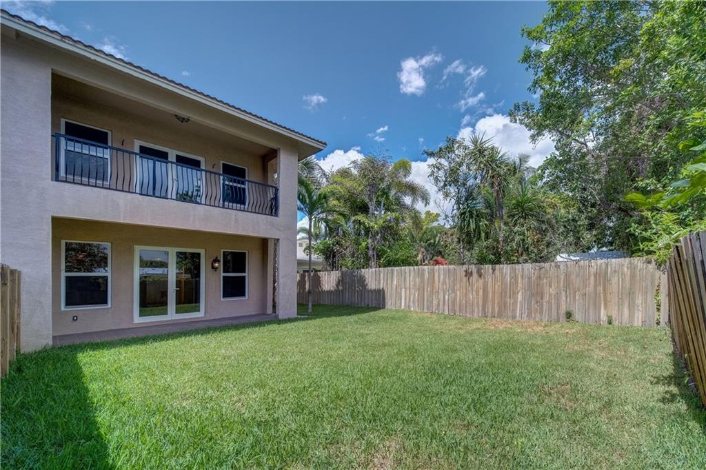 Impeccable two story townhome located 1 mile from the beach and 1 mile from downtown Fort Lauderdale! This spacious unit features hurricane impact windows and a private fenced in yard. The open living/dining concept on the 1st floor has porcelain tiles throughout and the kitchen features brand new stainless steel appliances with custom crafted cabinets and granite countertops. On the second floor, you will find two master suites plus den area. The back master suite has a large balcony overlooking yard and jacuzzi tub/separate shower in master bath. Second bathroom has a deep walk in shower with high ceilings. A MUST SEE!