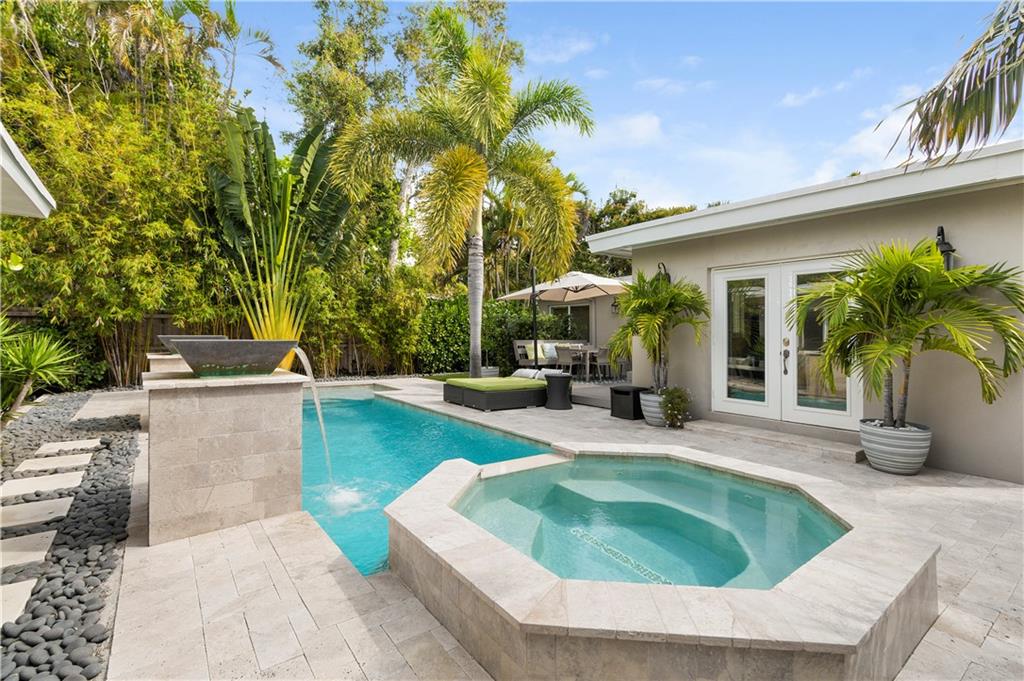 Welcome home to a tropical oasis of serenity, inspired by lush landscaping, cascading water features & a salt water pool & spa. This updated home is situated in E. Fort Lauderdale's desirable subdivision of Poinsettia Heights. The luminous open floor plan is conducive to today's lifestyle with hurricane impact windows & doors that seamlessly integrate indoor & outdoor living spaces. The gourmet kitchen offers tremendous counter space ideal for entertaining & opens onto the dining area & great room. The master suite & lavish bathroom provide the ultimate retreat. A separate air conditioned studio/office is only steps from the main house. A fenced & private front yard, sun deck overlooking the pool & spa & outside living area complete the private allure of this residence. Sq ft from IMAPP