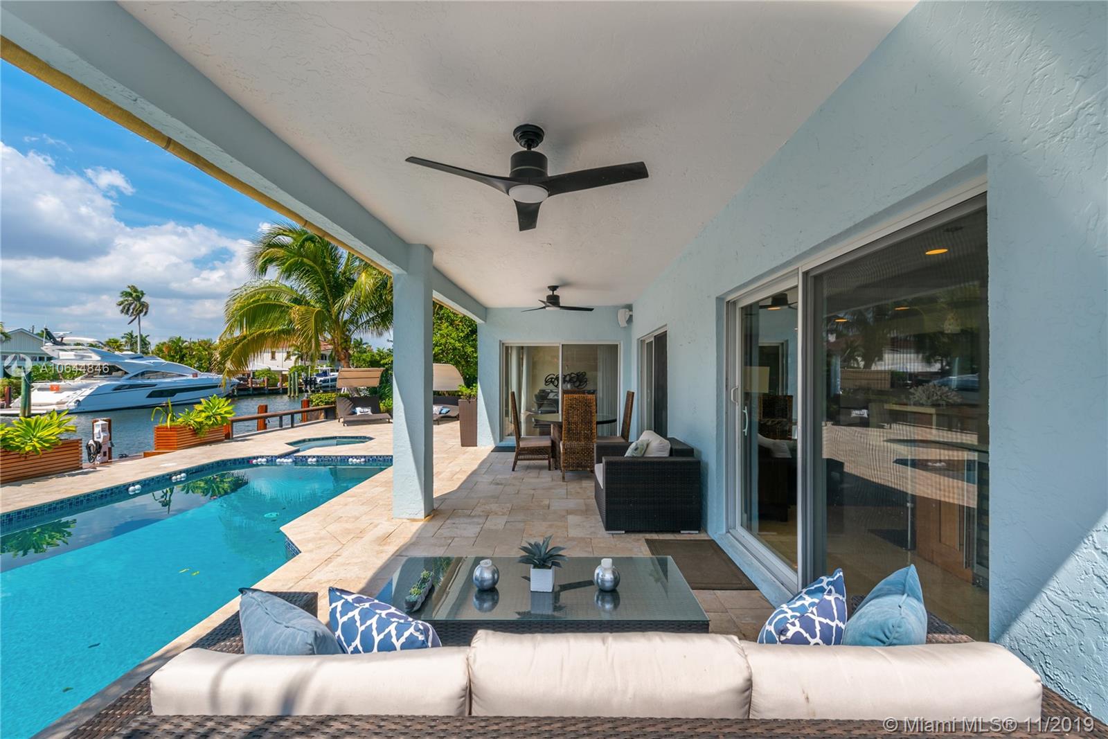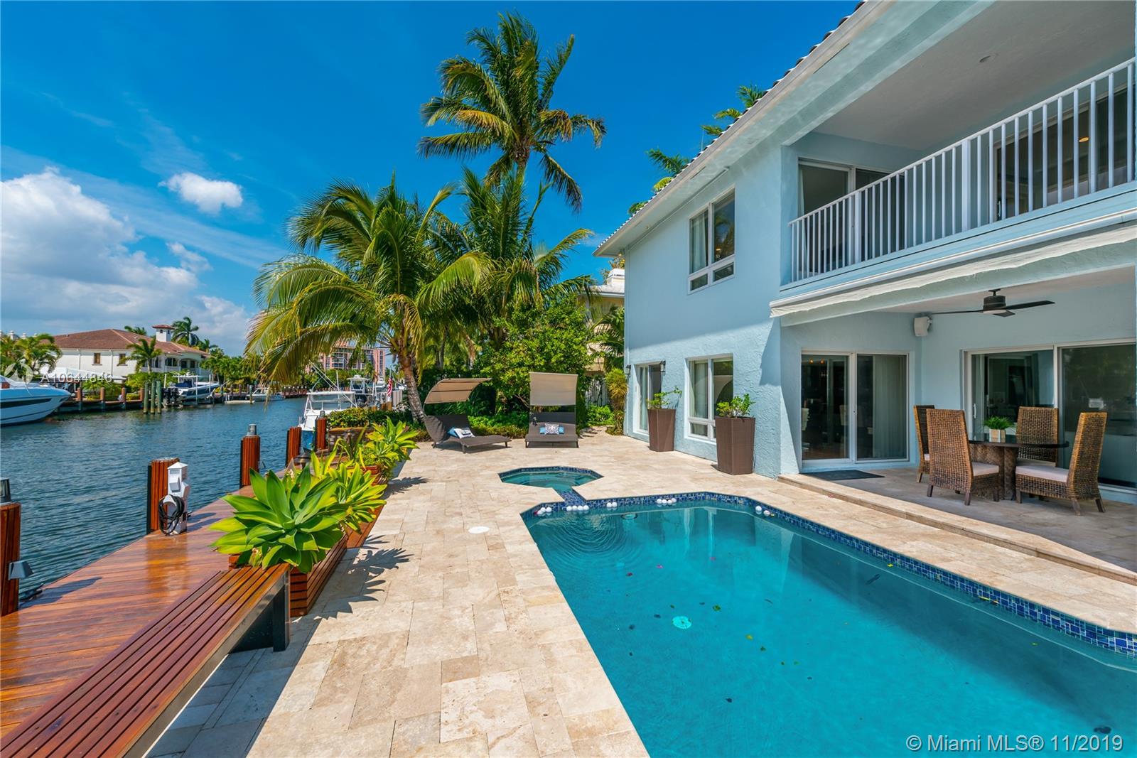 Las Olas Isles, Waterfront, 2Story, Contemporary, Elegant & True Family Home offers Seamlessly Indoor/Outdoor Living! 3 Bedrooms w/En-Suite Baths + Office boasting Fabulous Layout. 1st Floor incl. Open Living/Family/Dining areas w/Fire Place, Kitchen w/Top of the Line Appliances & 1 Guest BR. 2nd Floor Incl. 2BR w/Split Floorplan & Office. Amazing Master Suite w/Large Balcony, Spa-like Master Bath & Built-in Closet. Enjoy Breathtaking Sparkling Water & Tranquil Tropical Oasis Views from every room! Control4 Smart Home System. 70Ft Waterfront w/New Brazilian Wood Dock to accommodate 60 Ft Boat on Protected/Wide Canal. New Travertine Pool Deck, Salt Water/Heated Pool/Spa. Expansive Outdoor Patio, Zen Garden. Impact Windows/Doors, No Fixed Bridges/Easy Ocean Assess! Walking distance to beach.