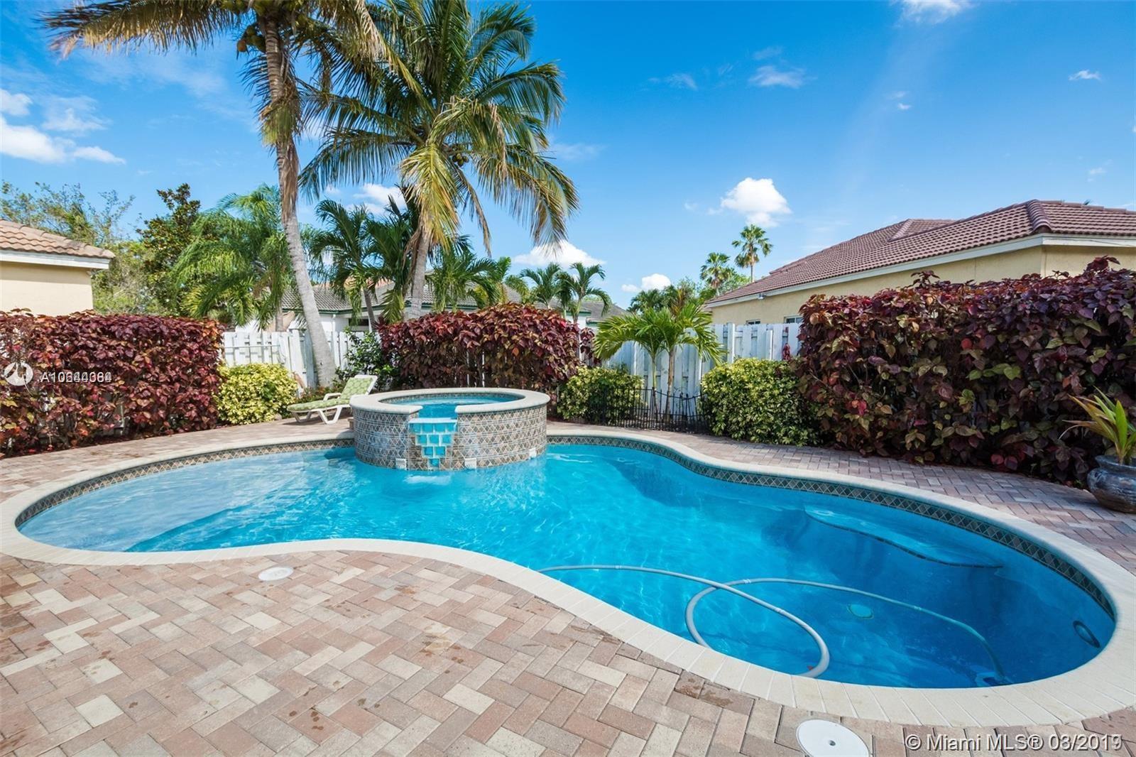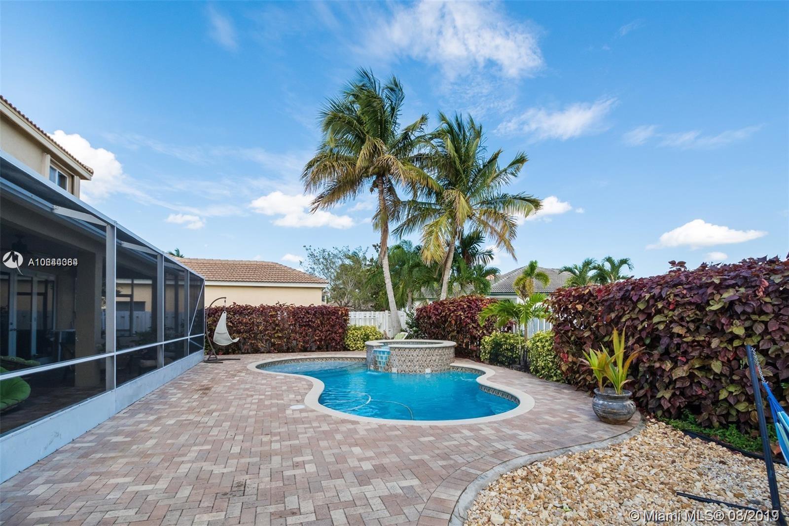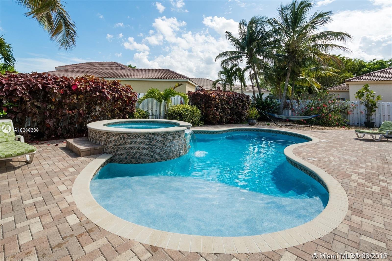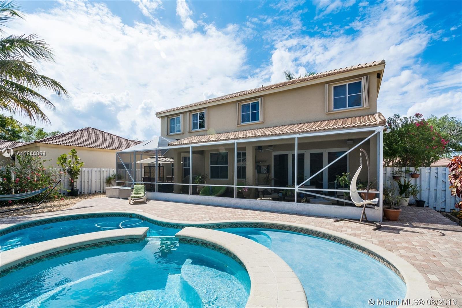 Beautiful large spacious home with high volume ceilings, open kitchen with breakfast area leading to the family room with impact doors to a screened patio and beautiful pool/spa area with new chlorination system and new pump, with fenced yard, surround sound system, Large master bedroom with sitting area, walk in closet and remodeled bath with separate shower. New stainless steel Refrigerator and dishwasher, Hurricane accordian shutters for the second level, Two new A/C's(Oct 2014), new garage door opener and Home Warranty. Community pool, park, basketball,gated and security patrol. A+rated Schools. Hurry great home for a great price!!!