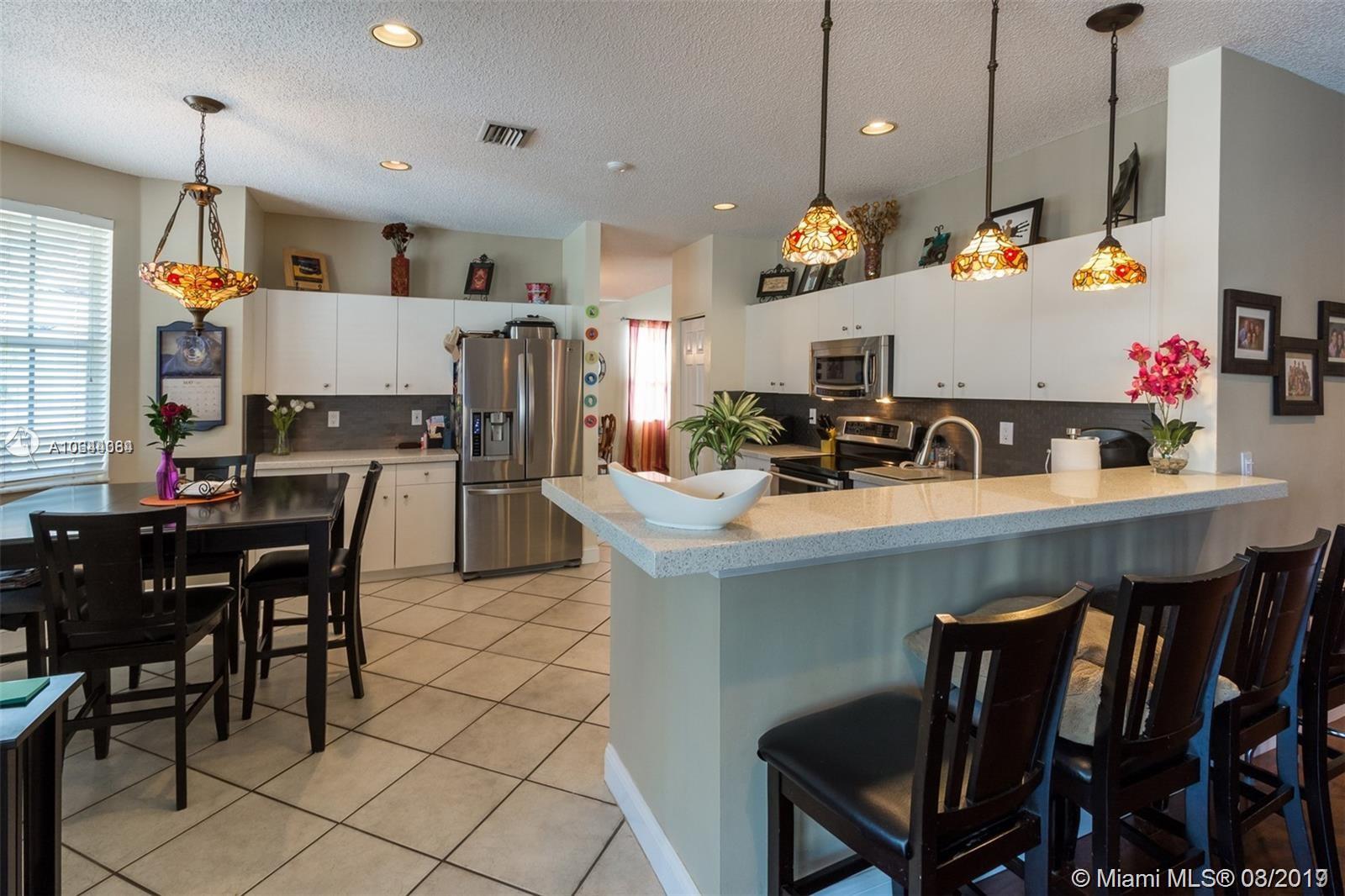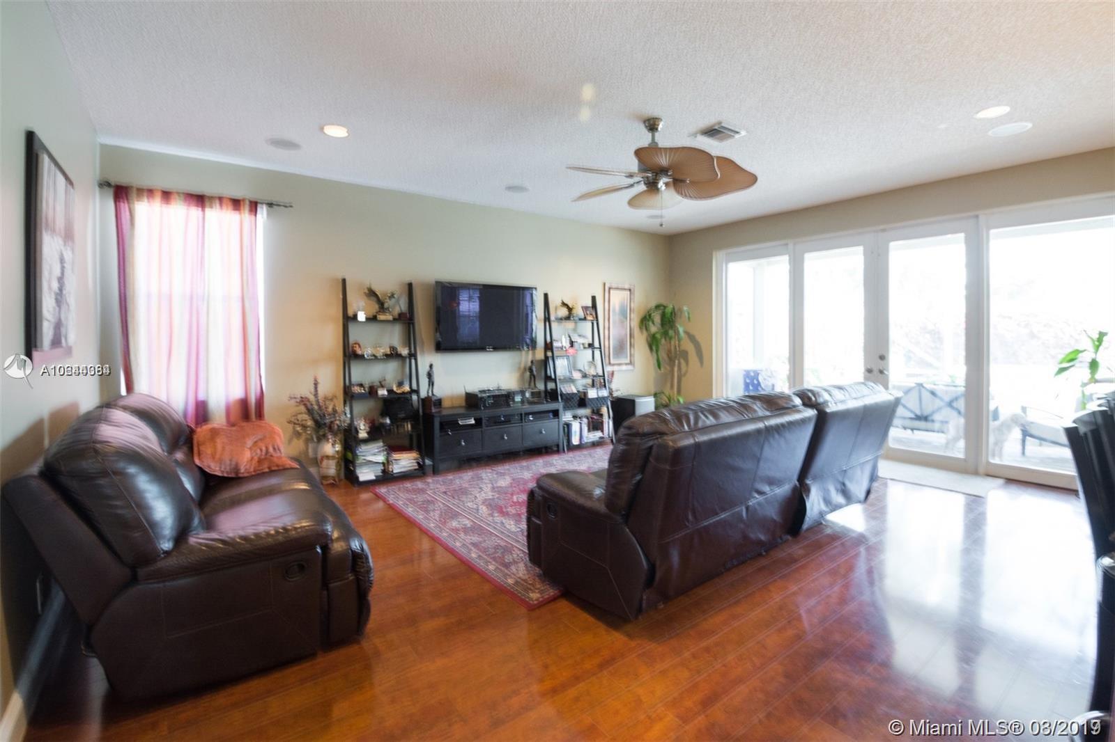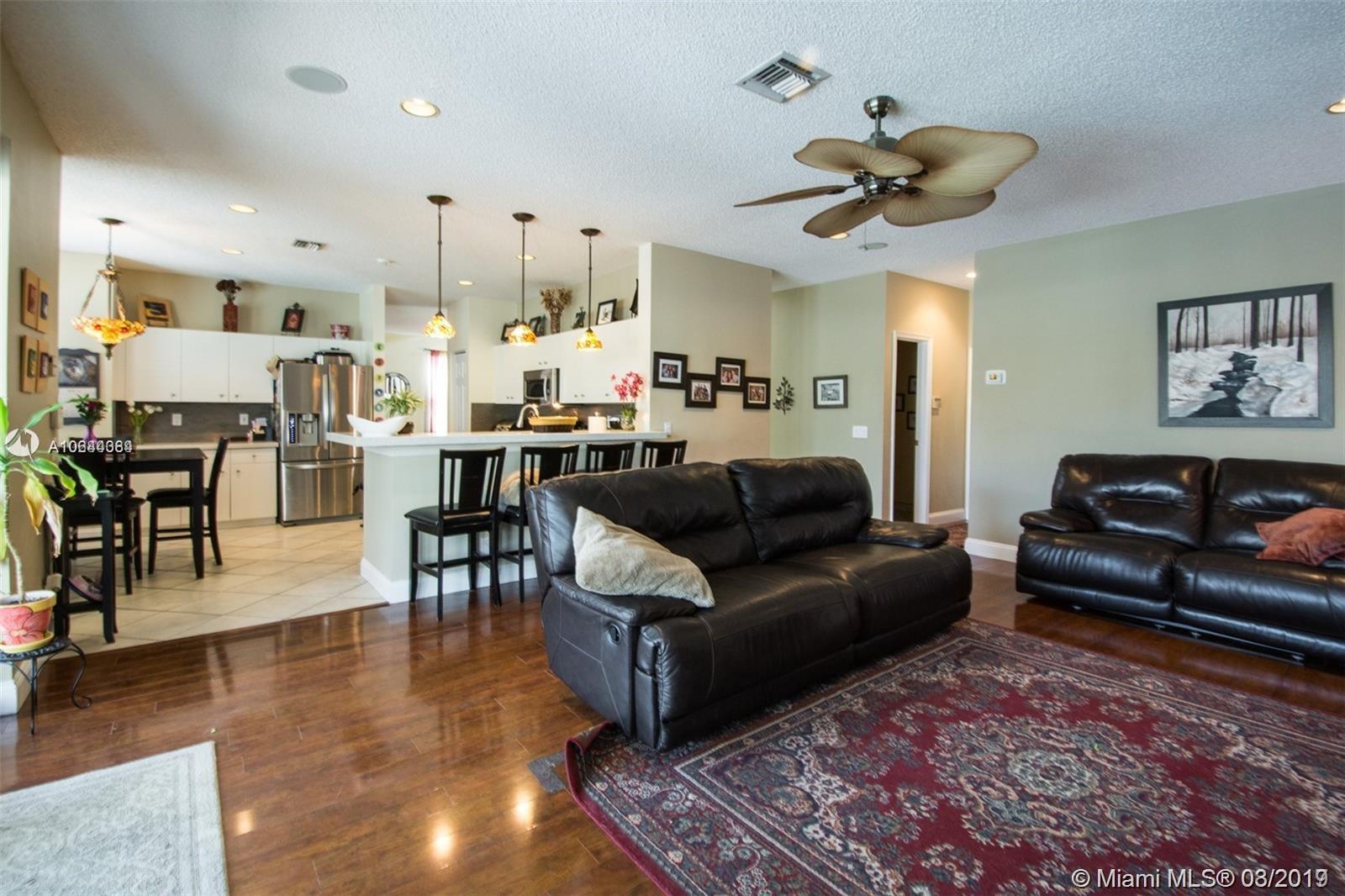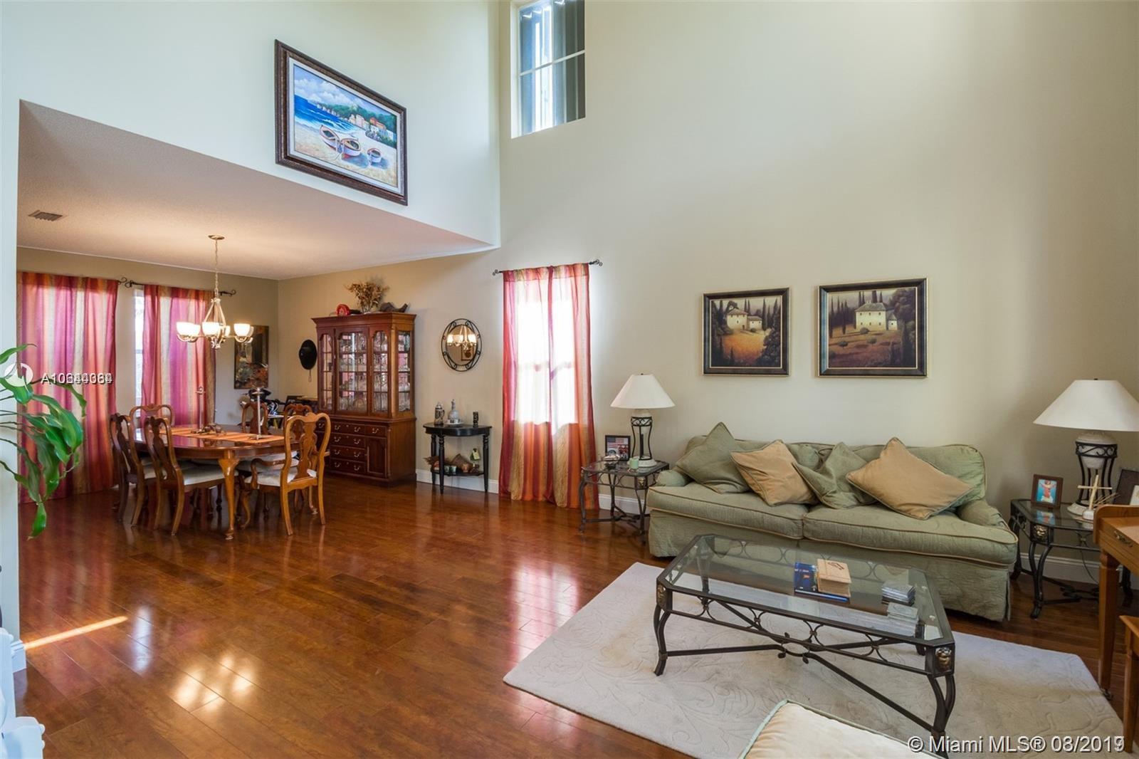 Beautiful large spacious home with high volume ceilings, open kitchen with breakfast area leading to the family room with impact doors to a screened patio and beautiful pool/spa area with new chlorination system and new pump, with fenced yard, surround sound system, Large master bedroom with sitting area, walk in closet and remodeled bath with separate shower. New stainless steel Refrigerator and dishwasher, Hurricane accordian shutters for the second level, Two new A/C's(Oct 2014), new garage door opener and Home Warranty. Community pool, park, basketball,gated and security patrol. A+rated Schools. Hurry great home for a great price!!!