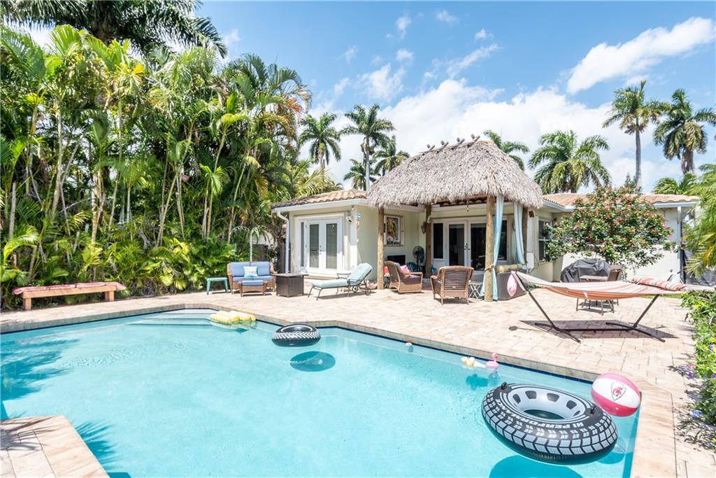 THIS GREAT POOL HOME IS SITUATED ON ONE OF OUR FAVORITE STREETS IN HOLLYWOOD LAKES STEPS AWAY FROM GOLF COURSE AND MINUTES TO THE BEACH. BRIGHT OPEN FLOOR PLAN BOASTS A BEAUTIFUL KITCHEN WITH A LARGE FUNCTIONAL ISLAND AND PLENTY OF STORAGE. FRENCH DOORS LEAD YOU TO YOUR VERY OWN FLORIDA RETREAT. LOUNGE BY THE POOL OR HANG OUT UNDER THE LARGE TIKI HUT IN THE SHADE AND WATCH SOME TV OR BAR-B-QUE. ALL OF THAT AND NICE SIZE BEDROOMS, REMODELED BATHROOMS AND HURRICANE PREPARED - WE WELCOME YOU TO THIS LITTLE PIECE OF PARADISE!