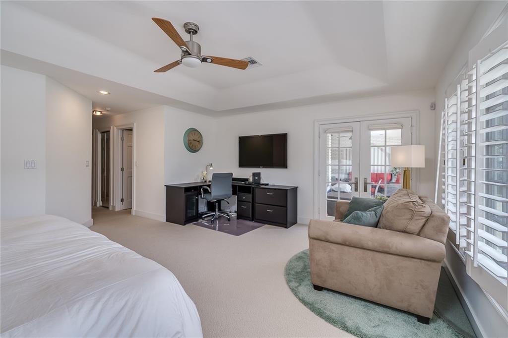 Modern touches dress this classically styled Landings' ranch as it sits just one residence off the point! This waterfront home features French doors throughout, bamboo flooring & perfectly split floorpan. The extra-large master has two walk-in closets & private entrance to the back patio while ensuite bathroom offers double sinks & separate shower/soaking tub. Fourth bedroom off master is best suited as office with plenty of light & private side entrance. Guest suite on opposite side of home also has ensuite bath & walk-in closet. Approximately 90 feet of waterfront provides a beautiful expansive view at the end of your waterway & you're one right turn off the intracoastal! Backyard hosts a newly painted dock with electric/water & spacious grass area for a children's swing set or dog run!