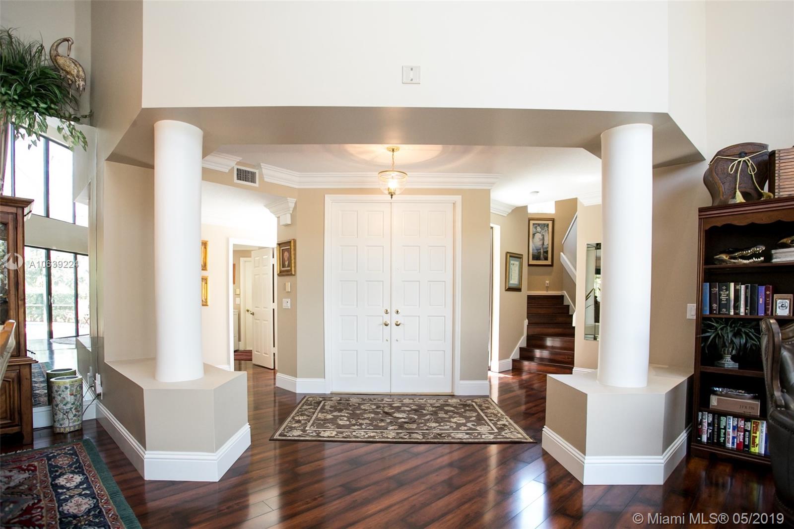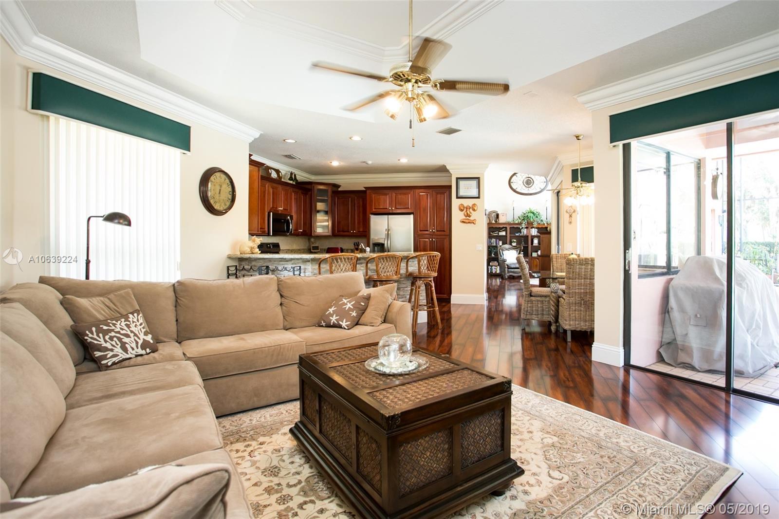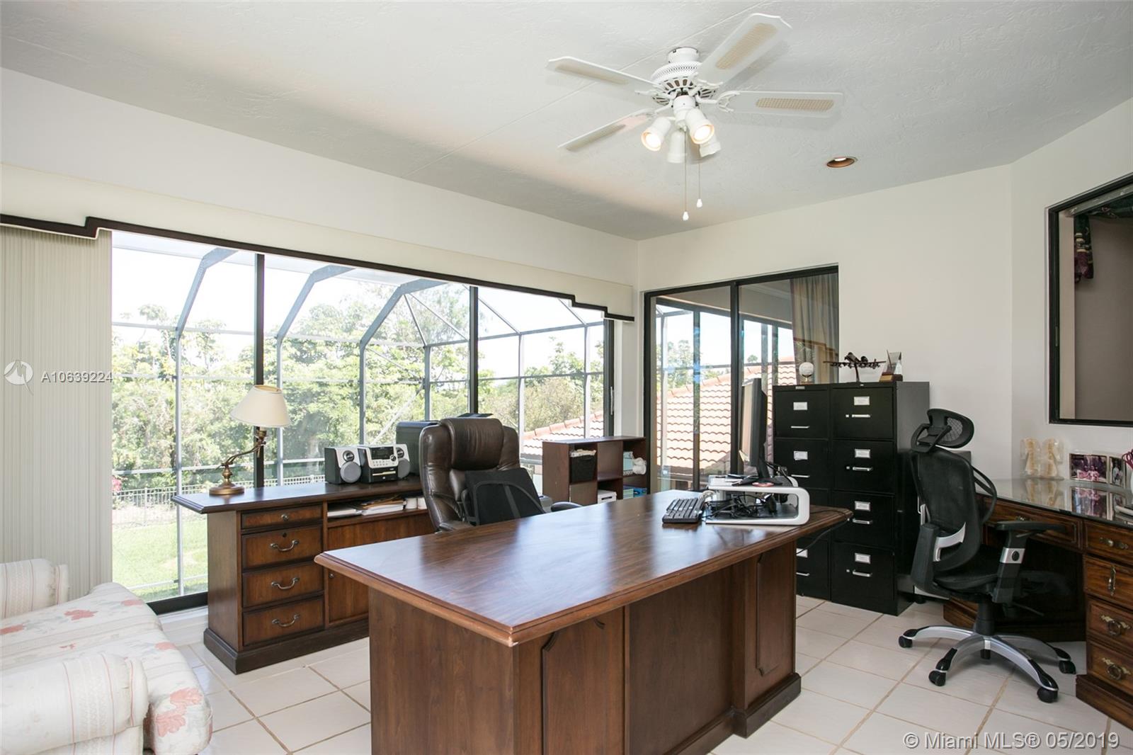 Don't miss this opportunity!!! Amazing Value and Priced to Sell! Stately yet casual, spacious 5 bedroom home offers privacy and true tranquility while backing to a lushly landscaped berm and adjacent to large green space. The 1150 sq ft screened patio and pool are perfect for outdoor enjoyment for entertaining or just relaxing! The entry foyer leads to living and formal dining room with soaring ceilings and floor to ceiling sliders and large windows with lots of natural light. Triple split floor plan with 4 bedrooms downstairs divided in 2 separate wings while the upstairs master bedroom has sitting area, spacious loft and "executive corner office" w/captivating views. Set in community of tree lined streets and steps to Peace Mound park with newer playground and scenic walking paths.